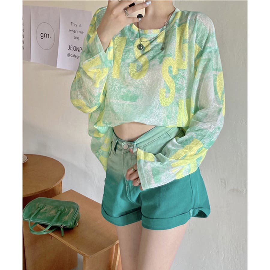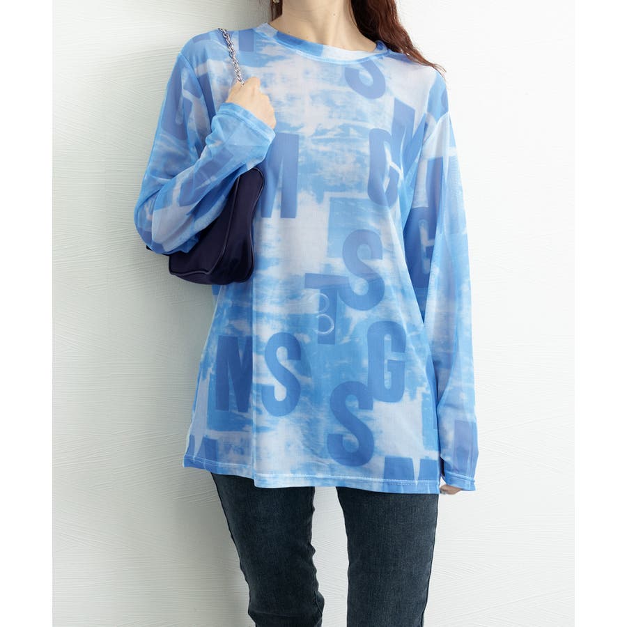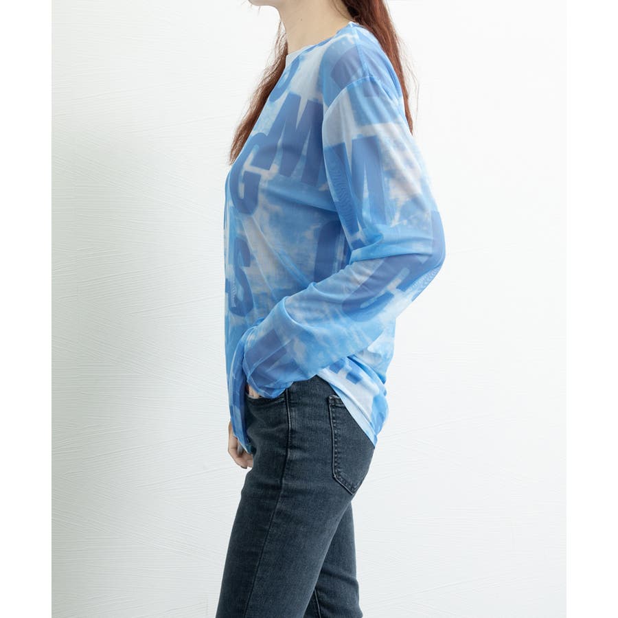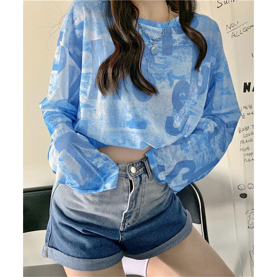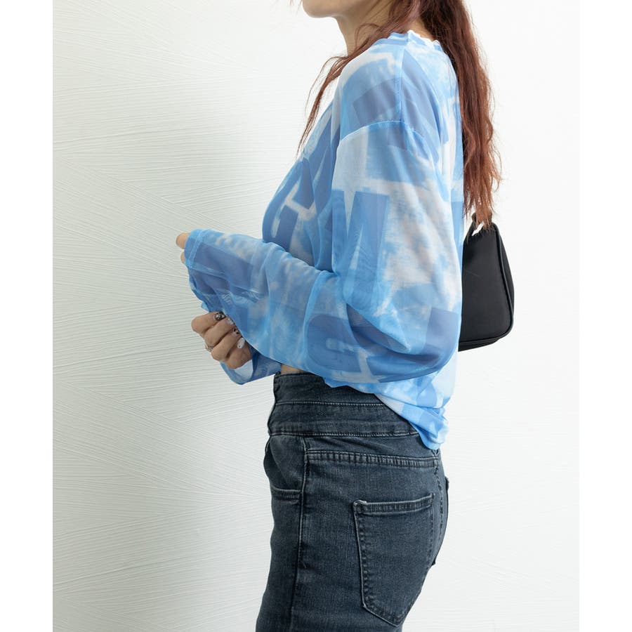 シアー素材で肌触りが良く、存在感のあるタイダイ柄の英文字入り長袖カットソー