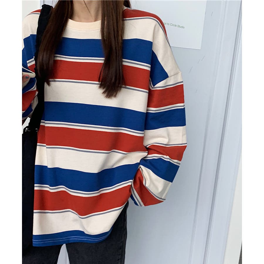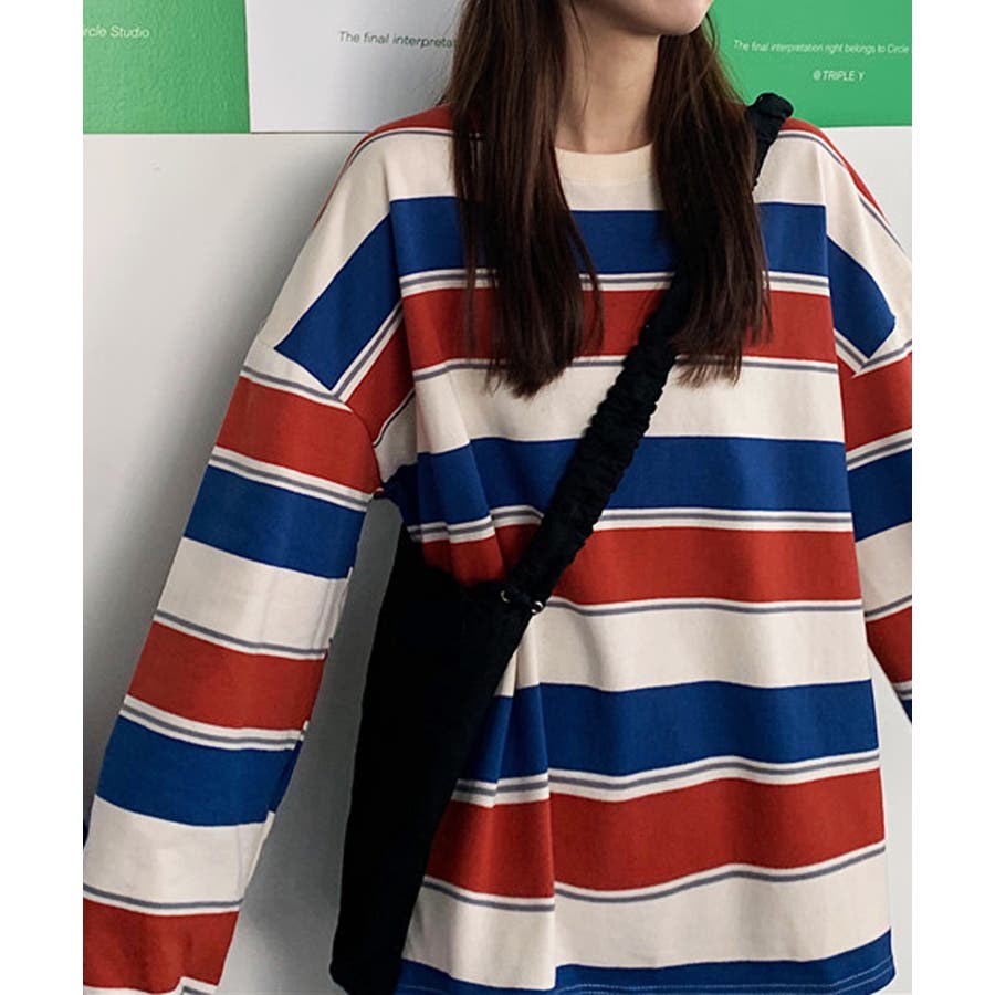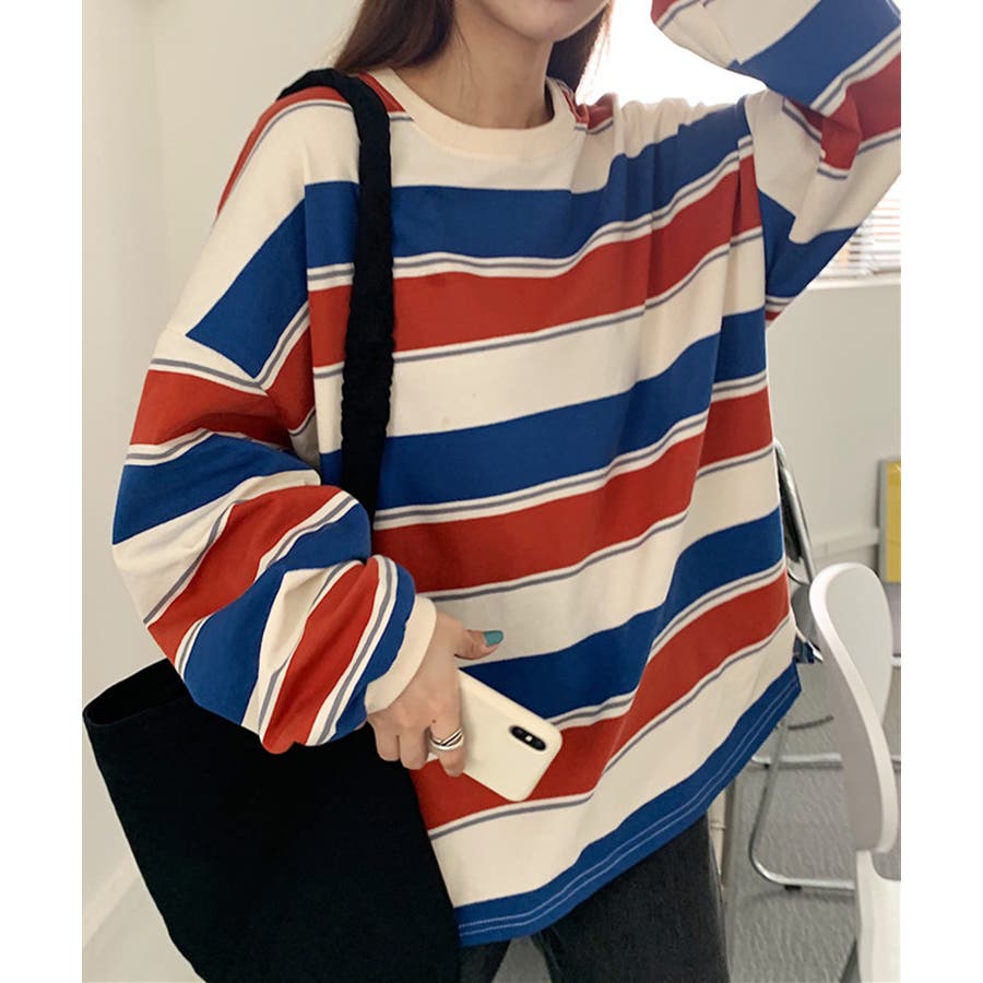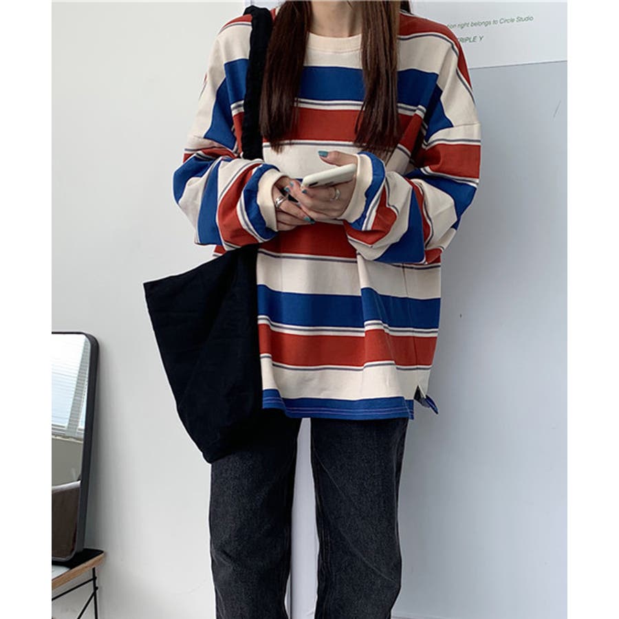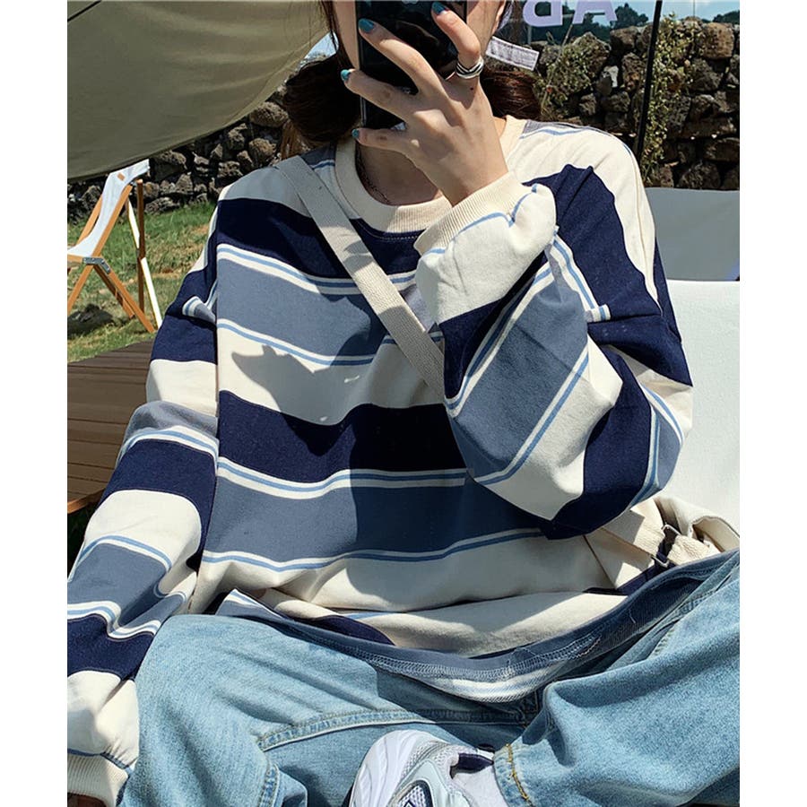ボーダー柄 スウェット 配色 トレーナー
