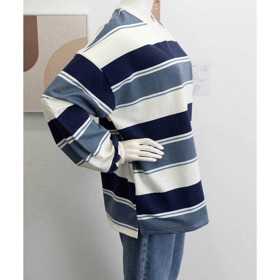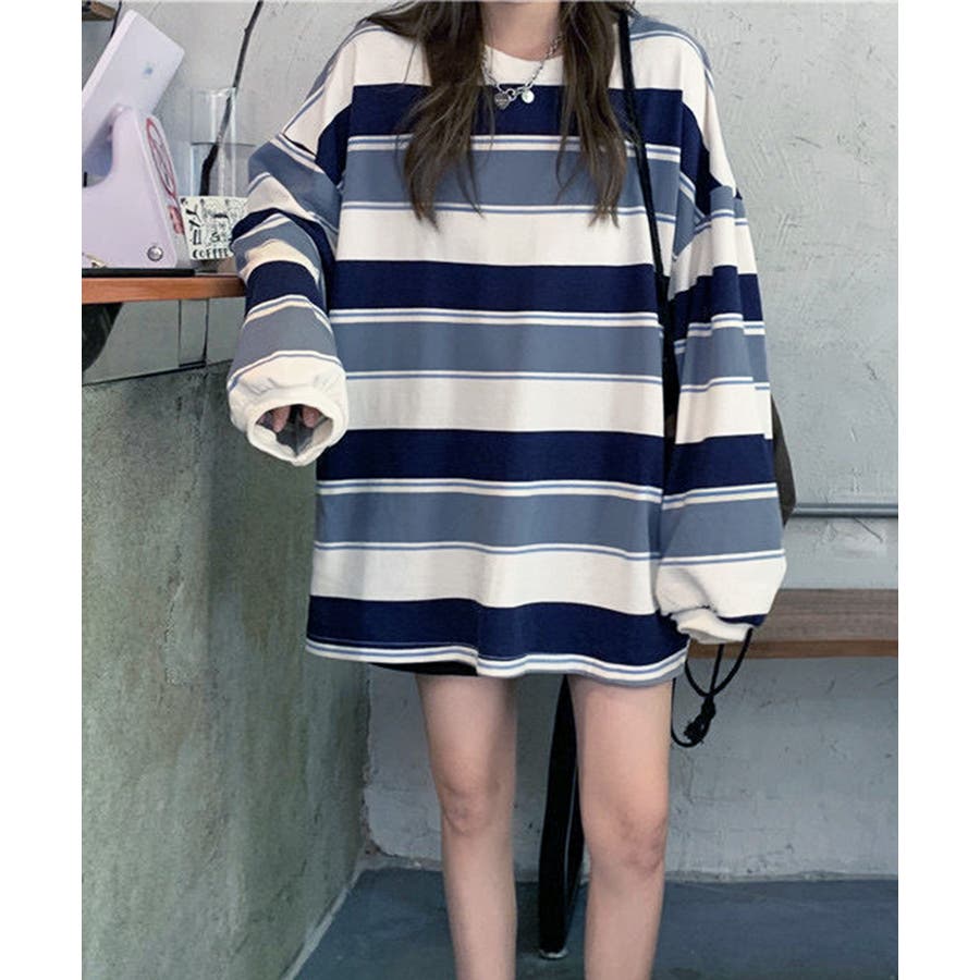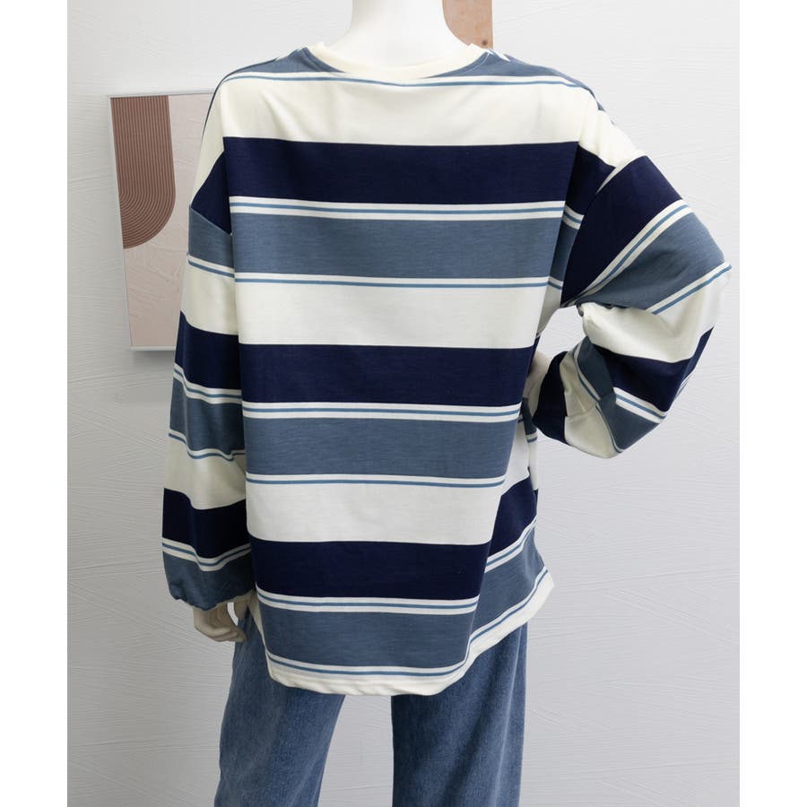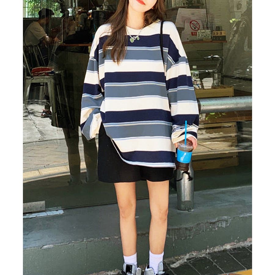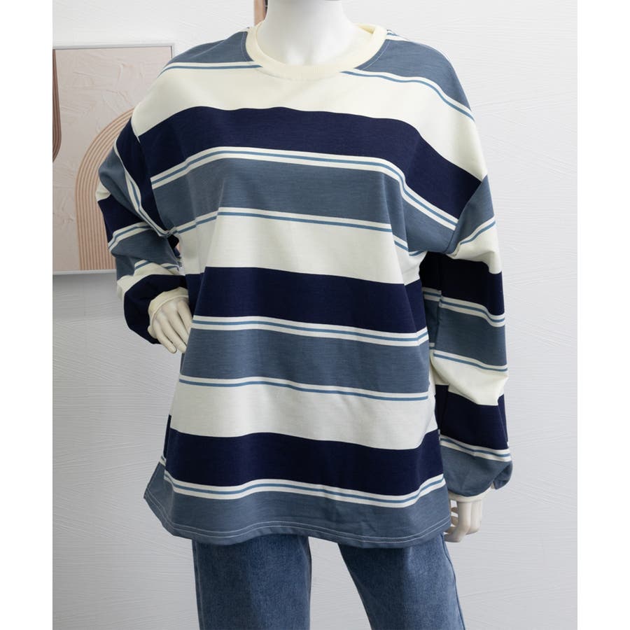 大人っぽいボーダーデザインとボリューム感のあるトレーナー