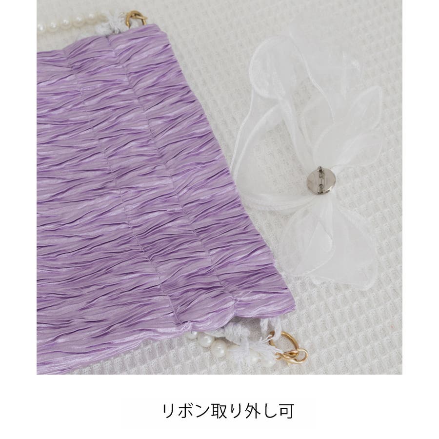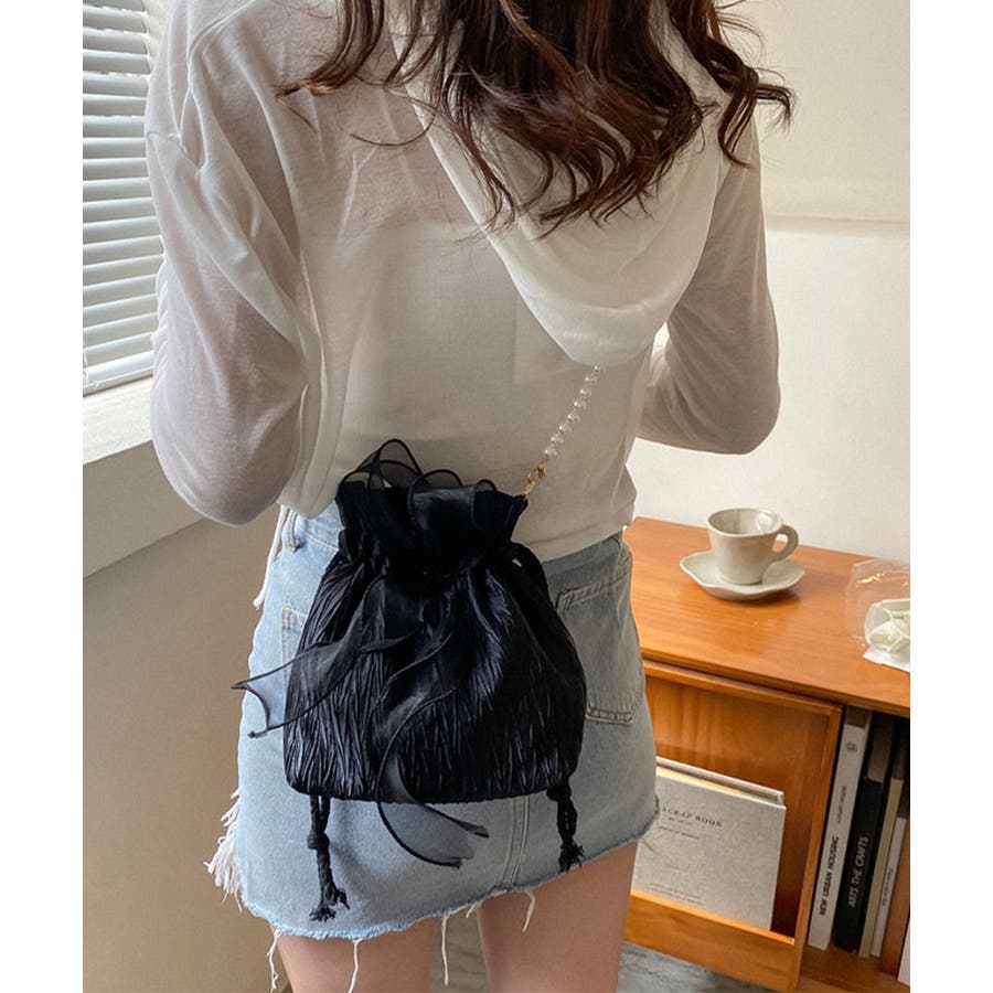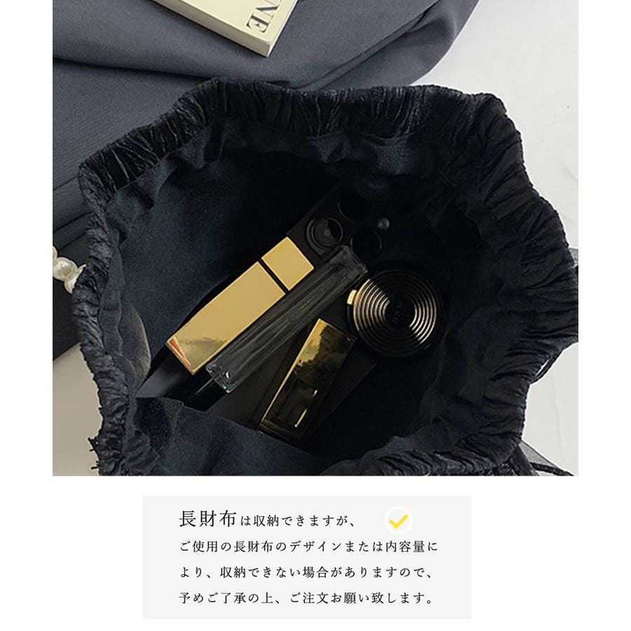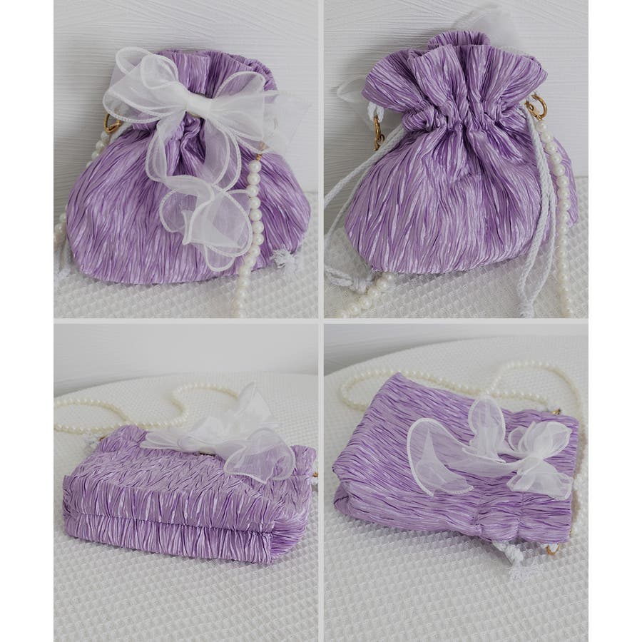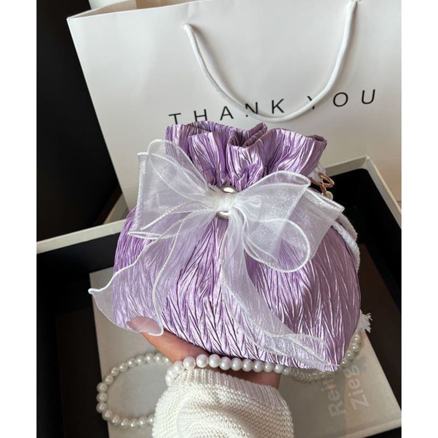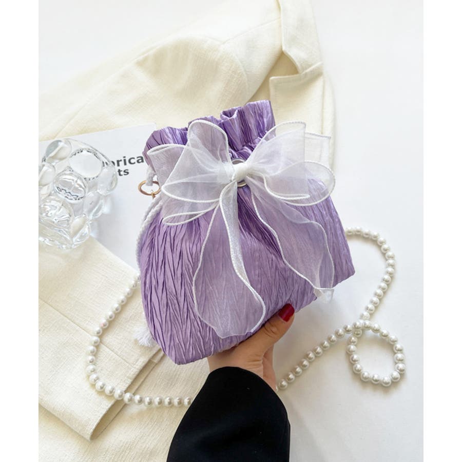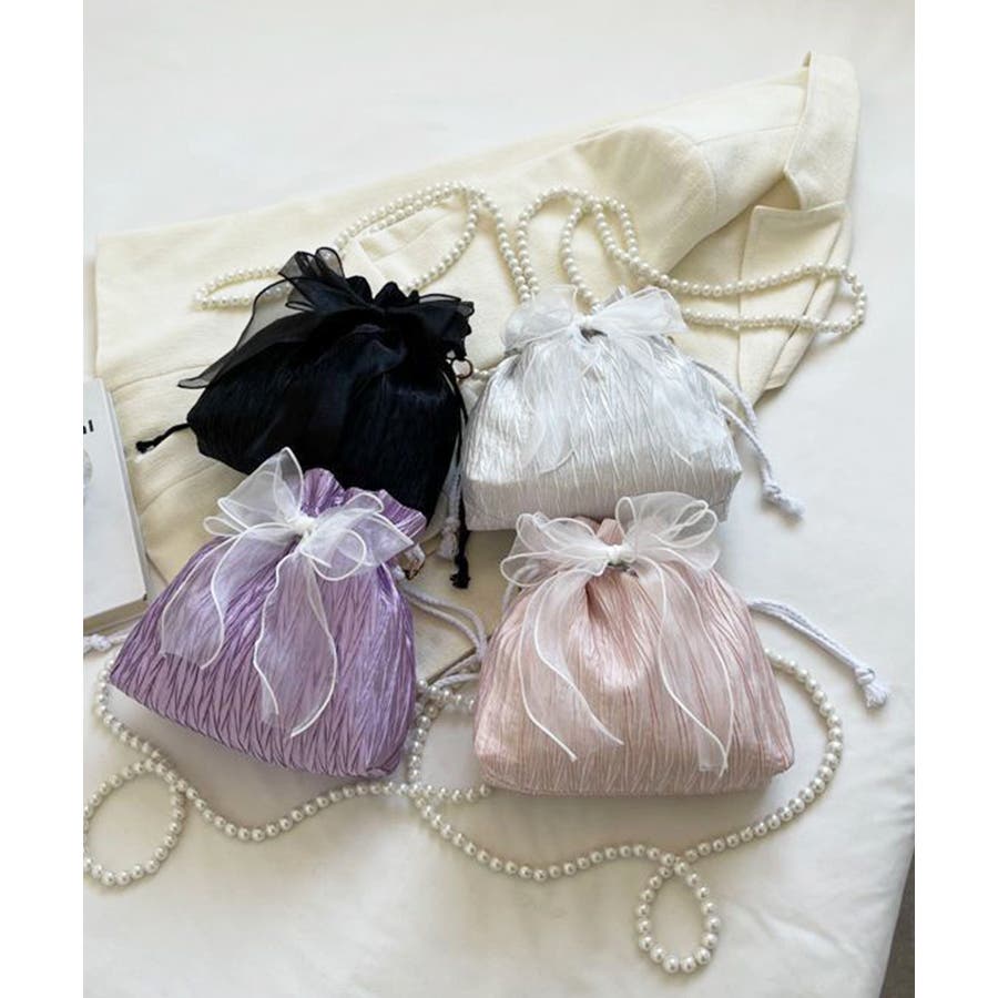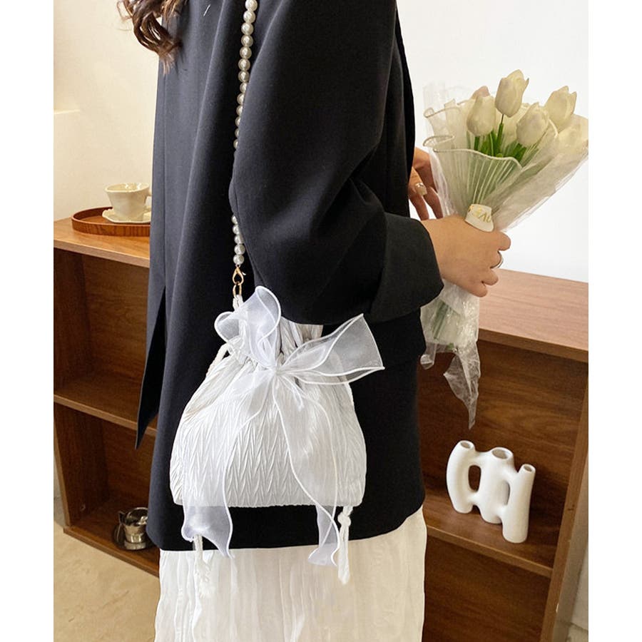 今季トレンドのパールショルダー&リボンモチーフの巾着ショルダーバッグ