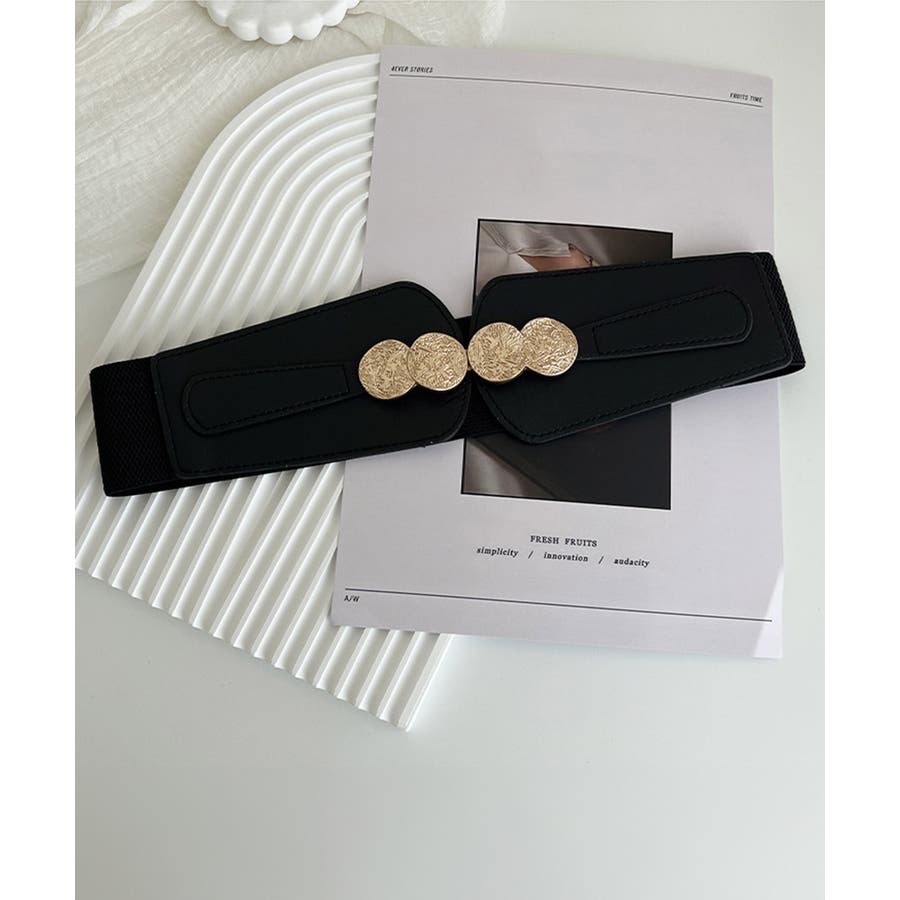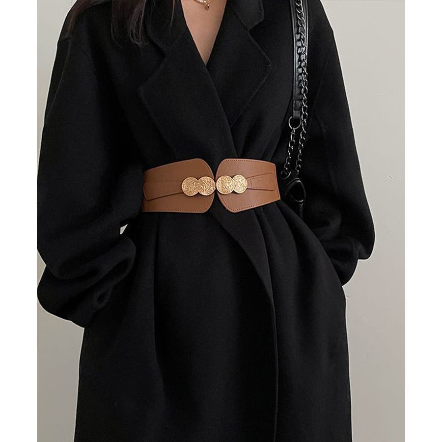 シンプルながら存在感があり、コーデのワンポイントになるPUレザーとゴムの異素材で仕上げたワイドベルト。