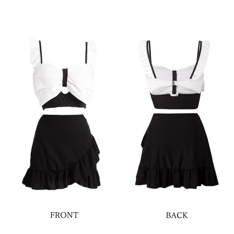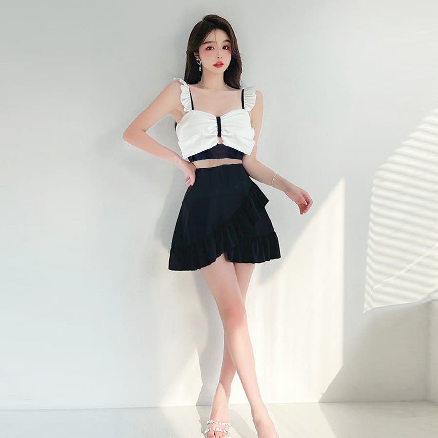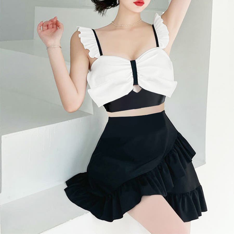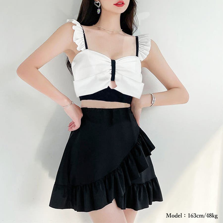 胸元にギャザーを施したビックリボンで大人可愛いの上下2点セット水着
