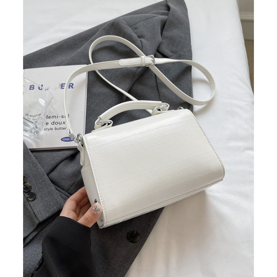ハンドバッグ小さめ お出掛けバッグ合皮 クロコ型押しバッグ