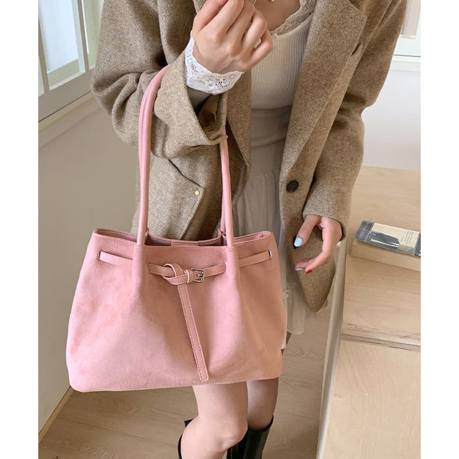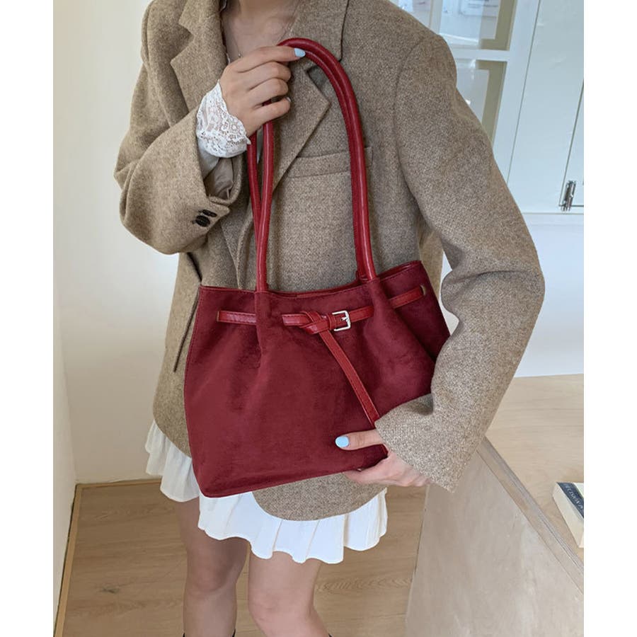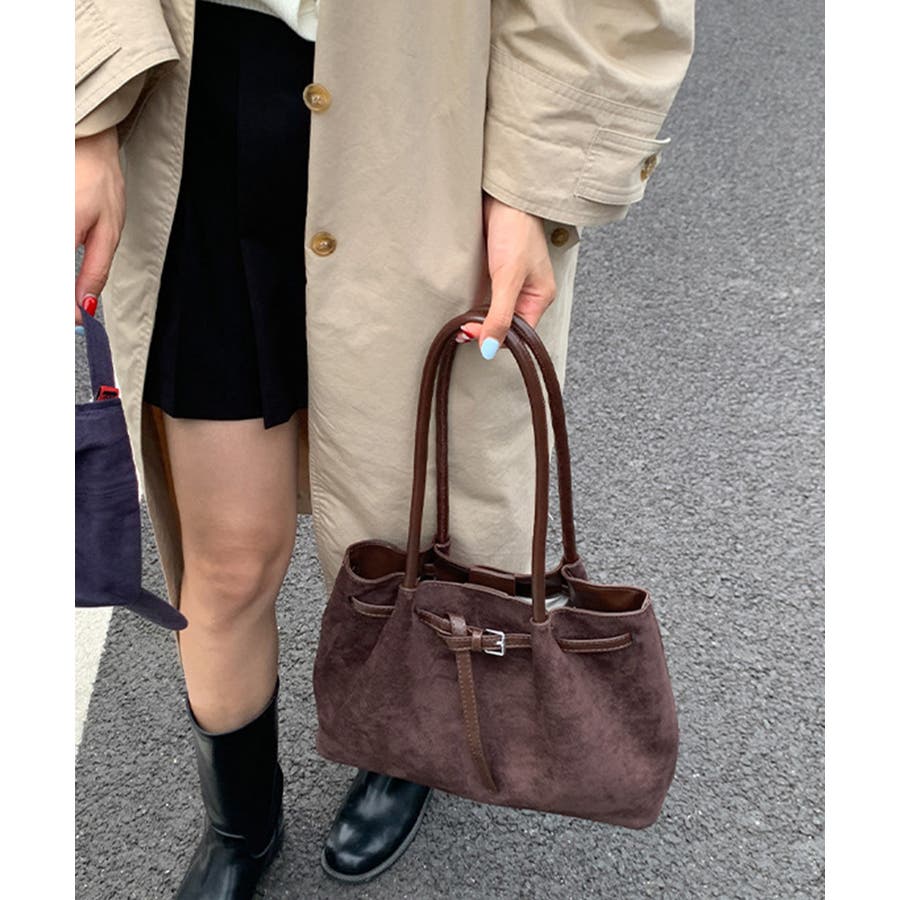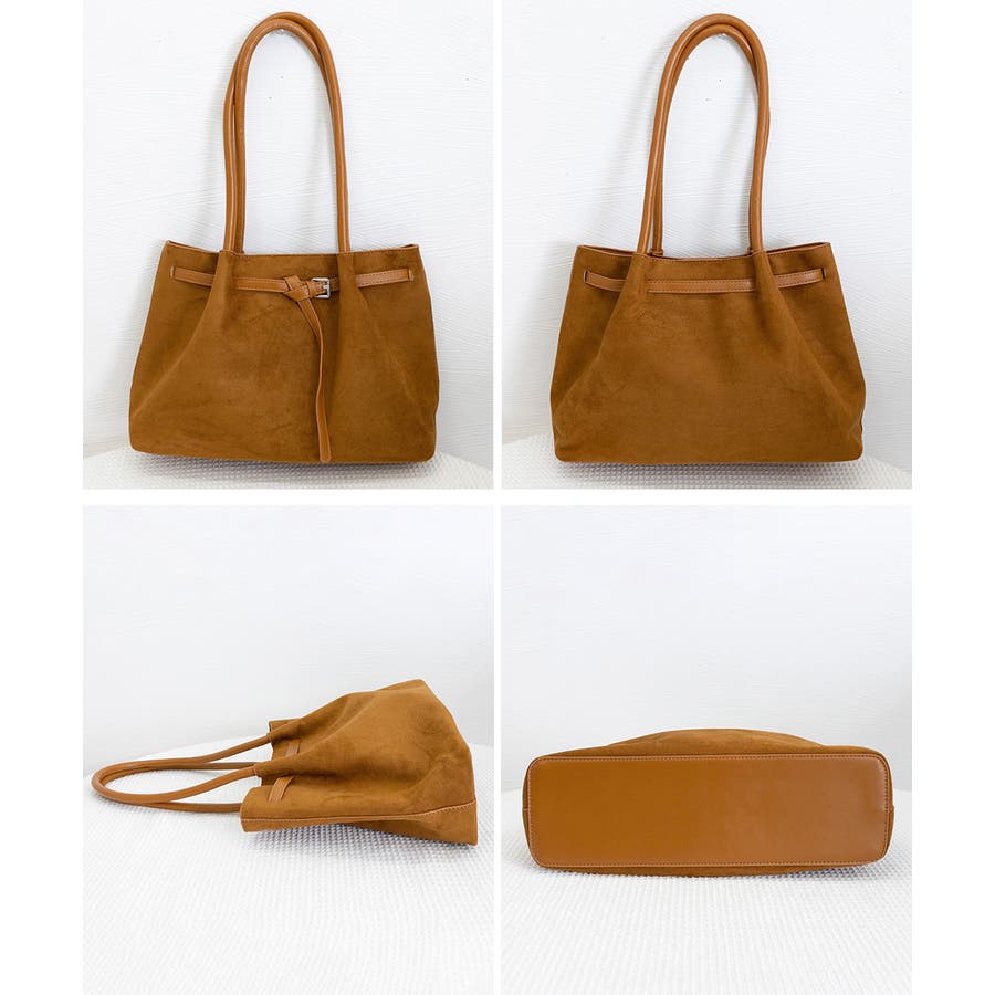 ベルト風デザインがアクセントになった、上品なスクエア型トートバッグ。