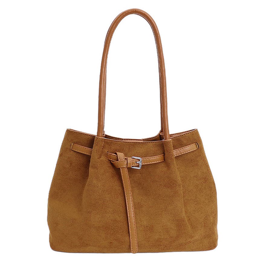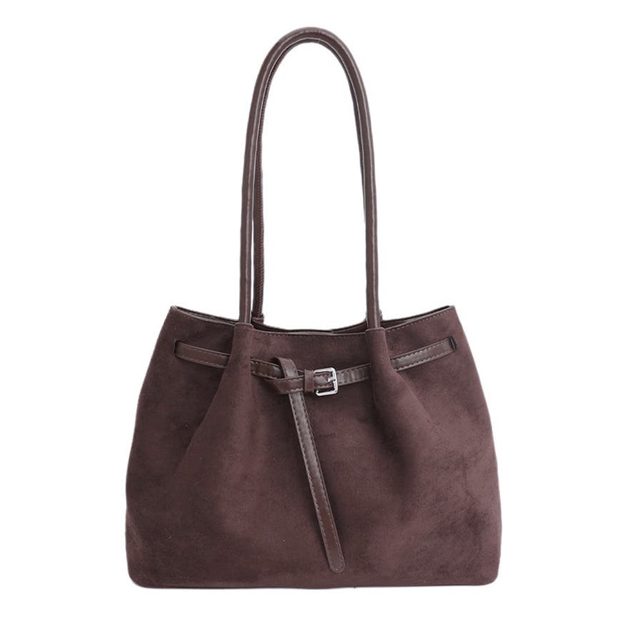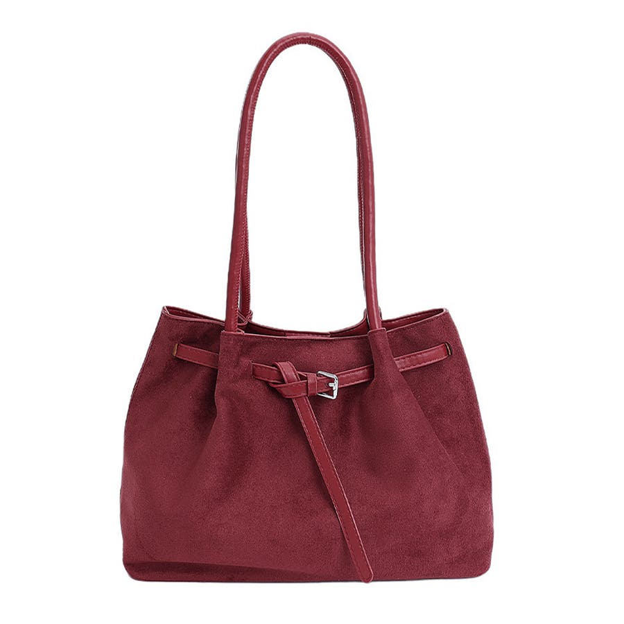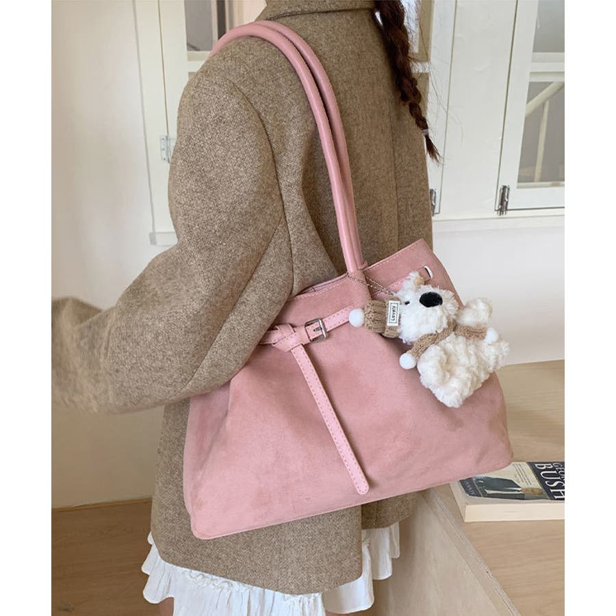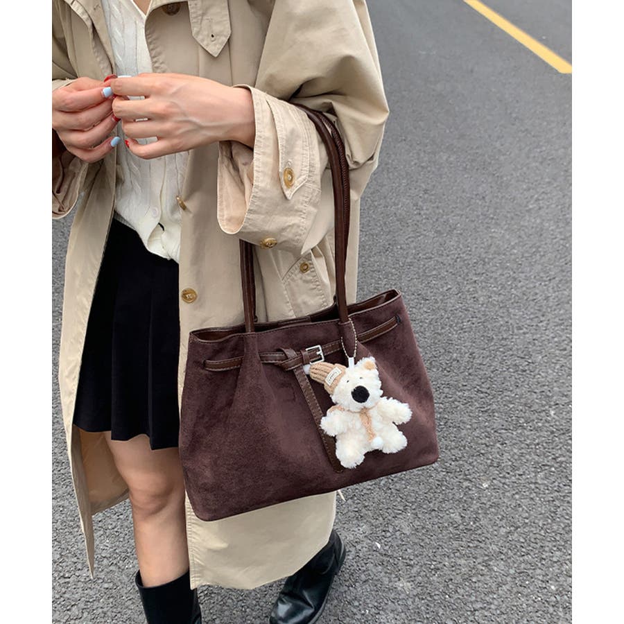 ベルト風デザインがアクセントになった、上品なスクエア型トートバッグ。