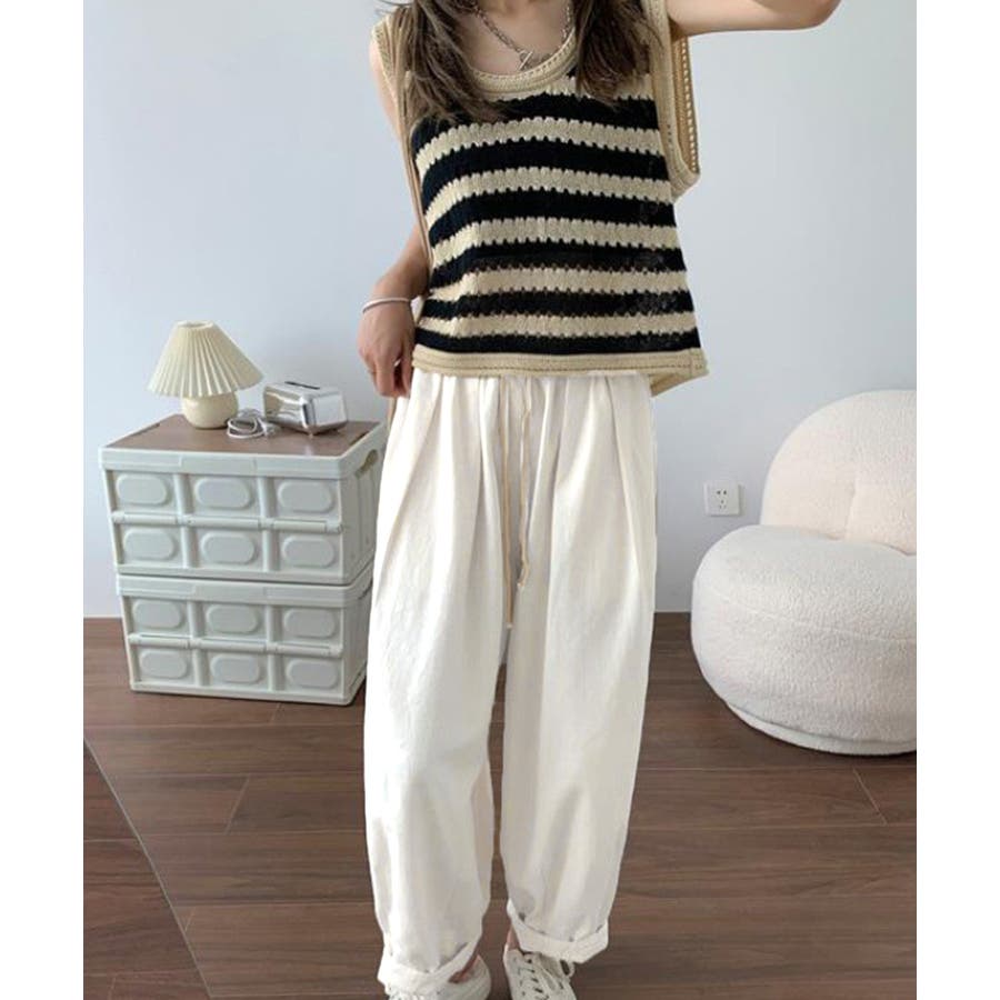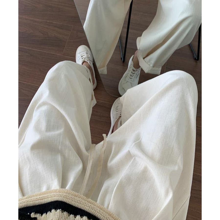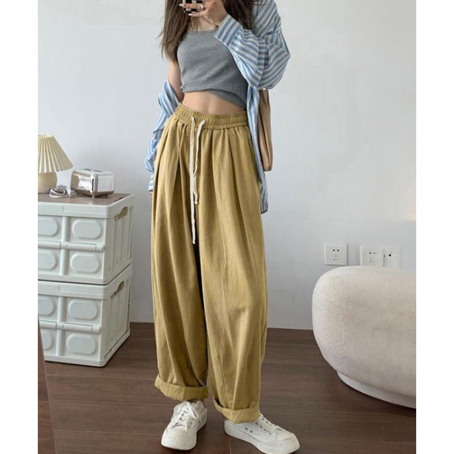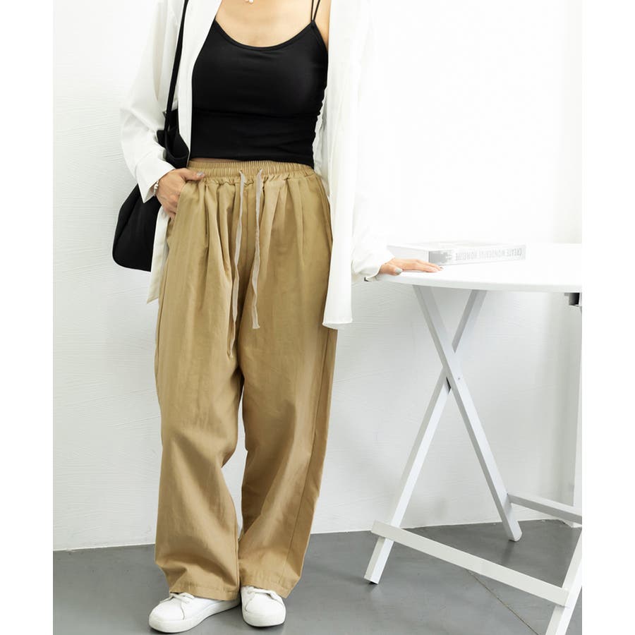 ウエストゴム&紐仕様で調節できるので、お好みに合わせてストレスフリーなはき心地