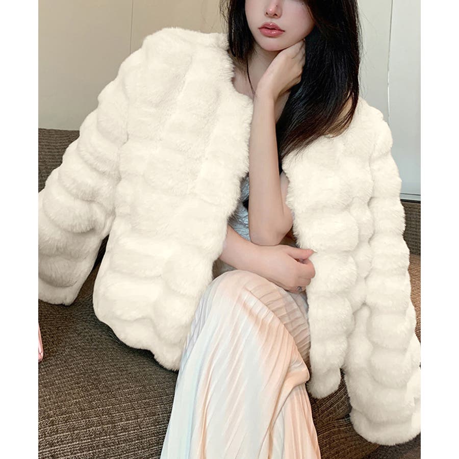 ふわふわとしたボリューム感のあるフェイクファーショートコートです。