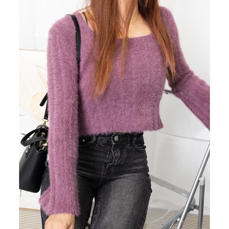 ショート丈 シャギーニットトップス韓国風