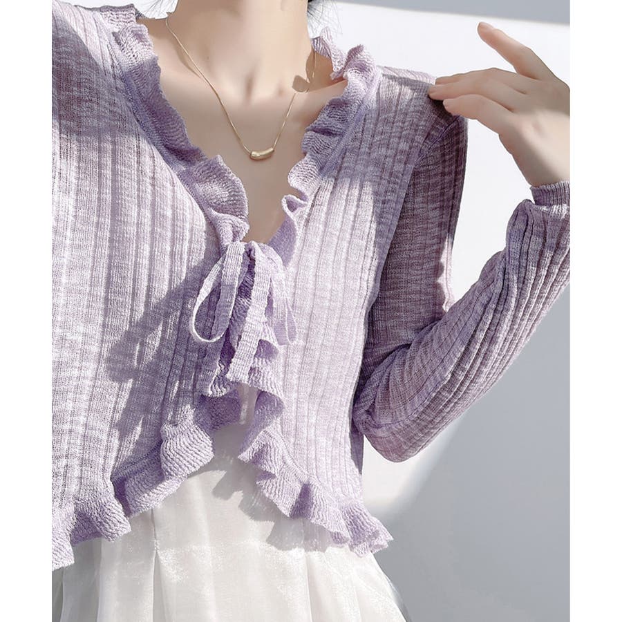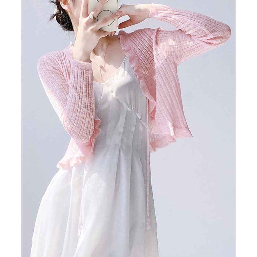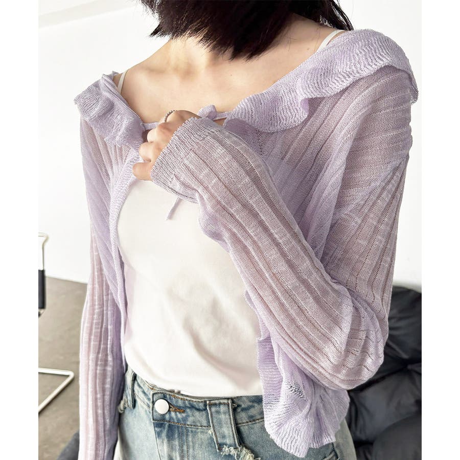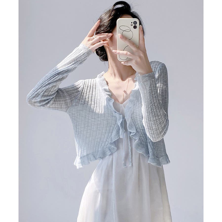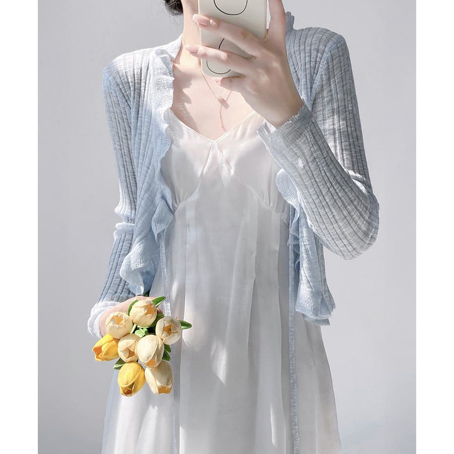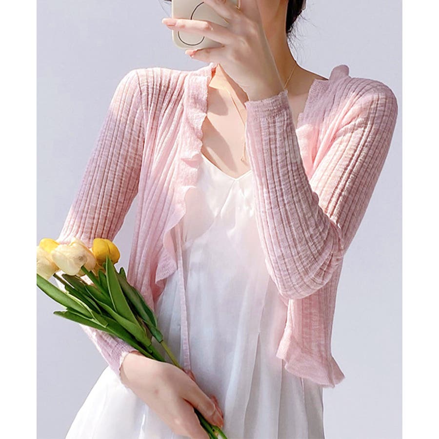 フリルカーディガン UVケア羽織り清楚 涼しい夏服 透け感