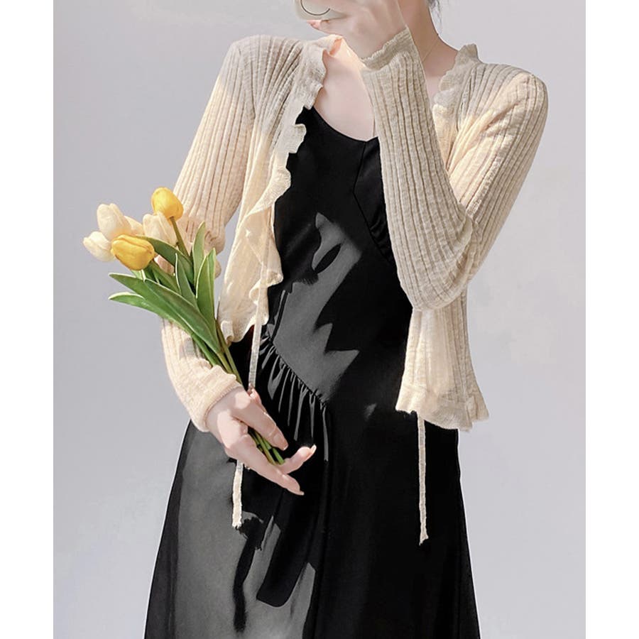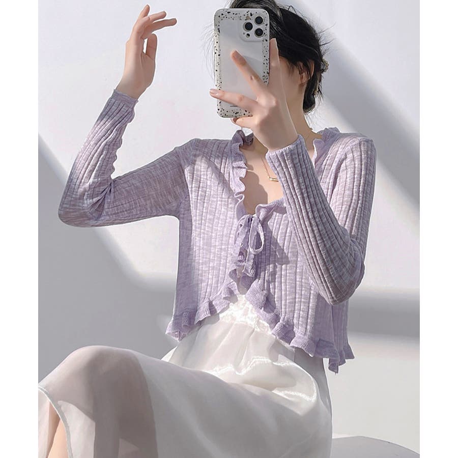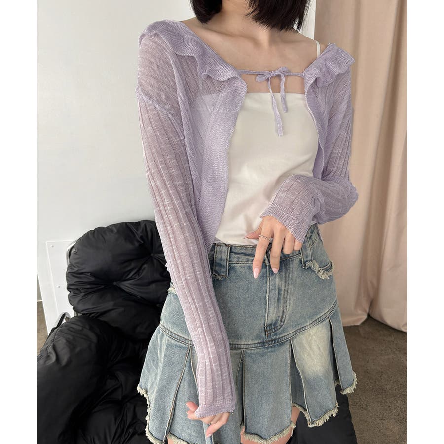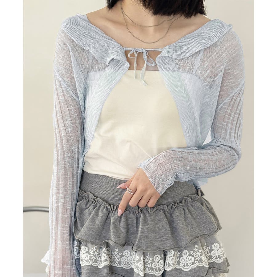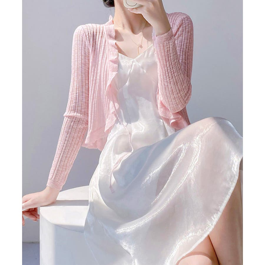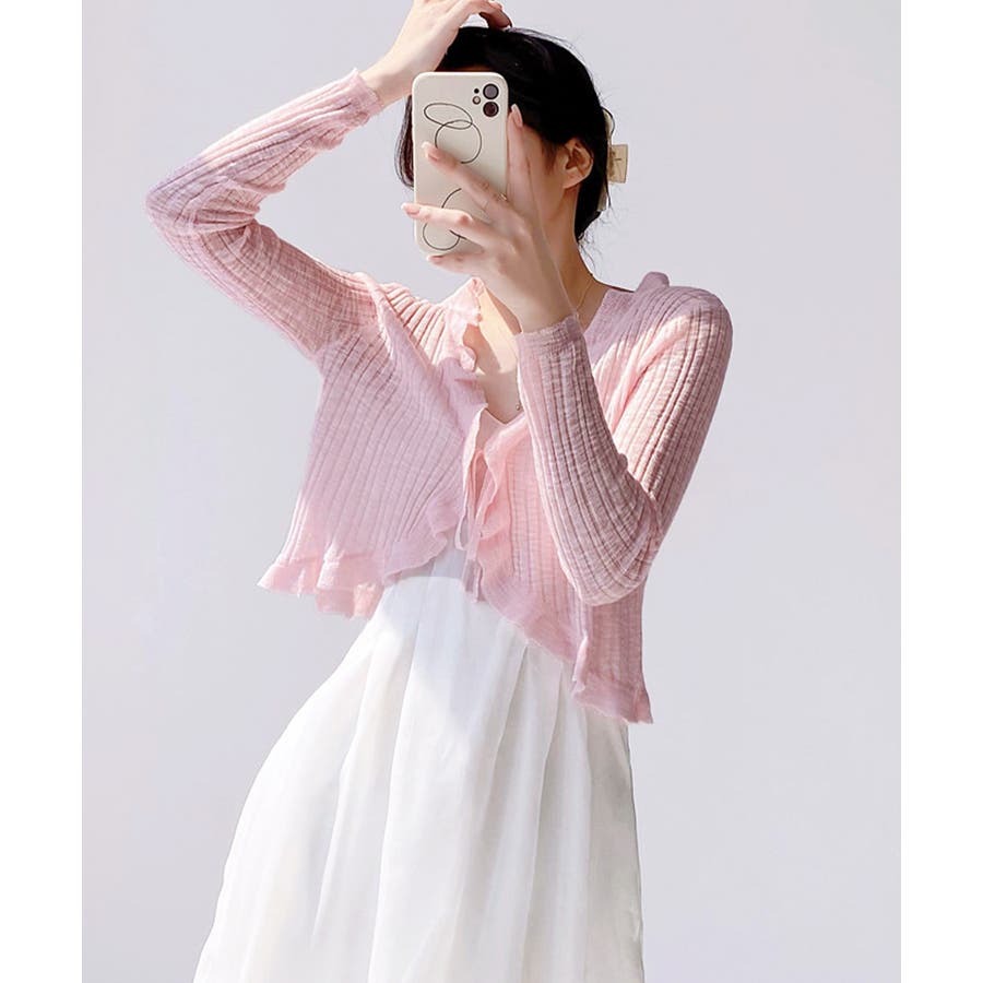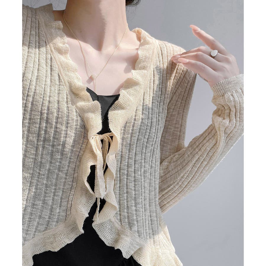 フリルカーディガン UVケア羽織り清楚 涼しい夏服 透け感