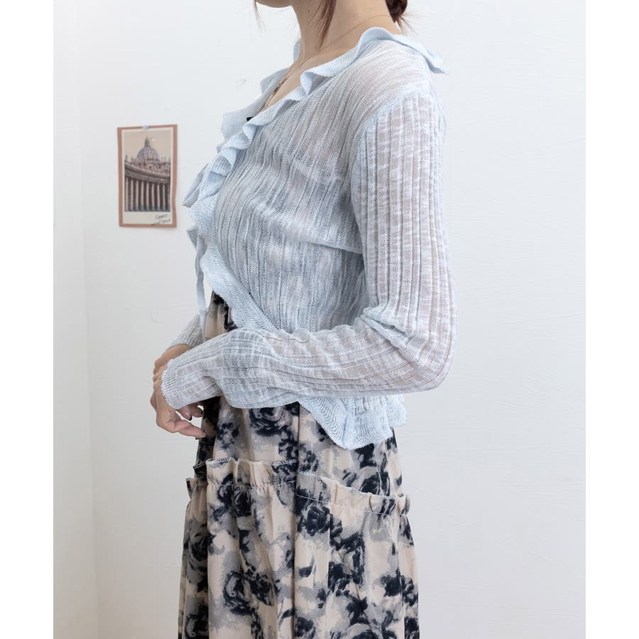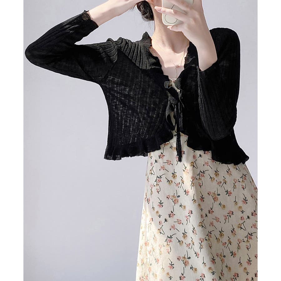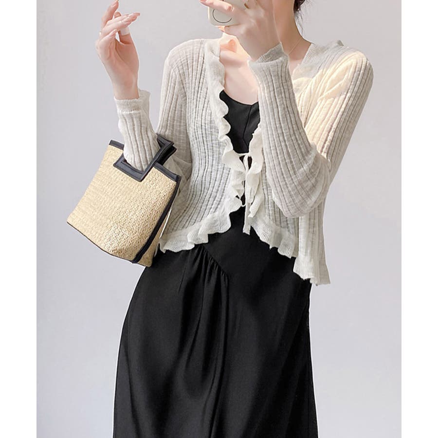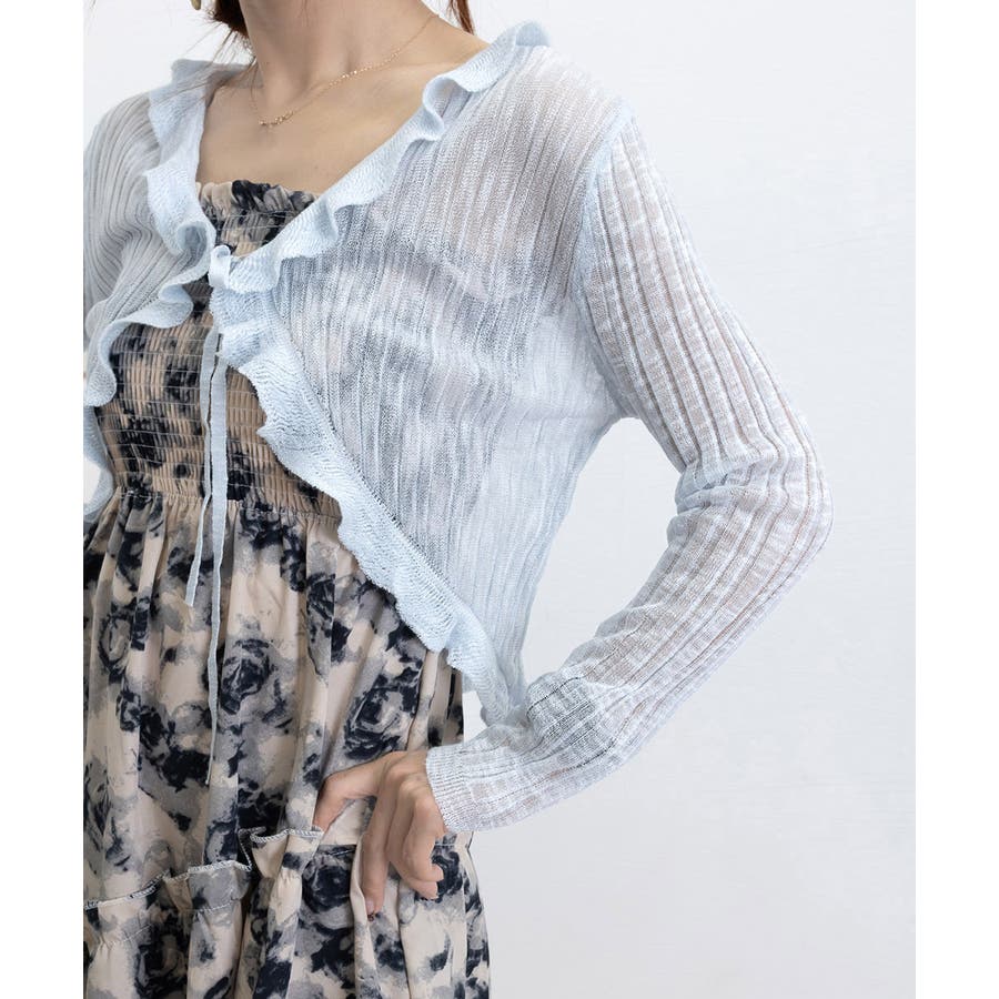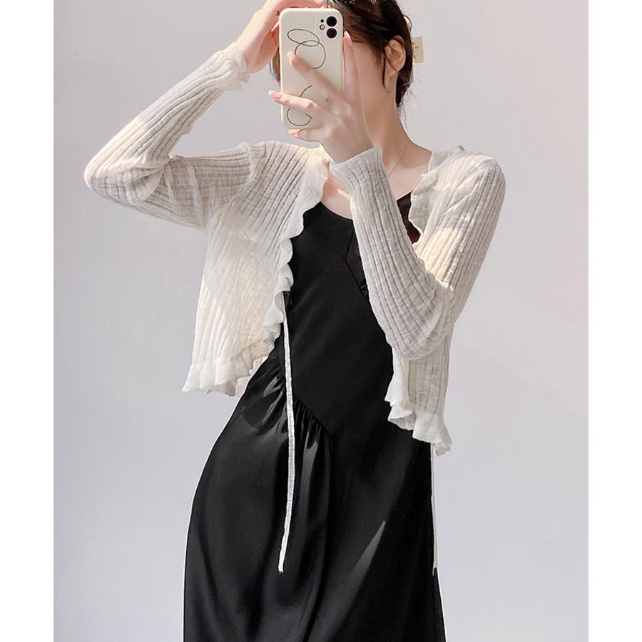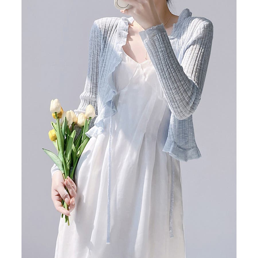 フリルカーディガン UVケア羽織り清楚 涼しい夏服 透け感