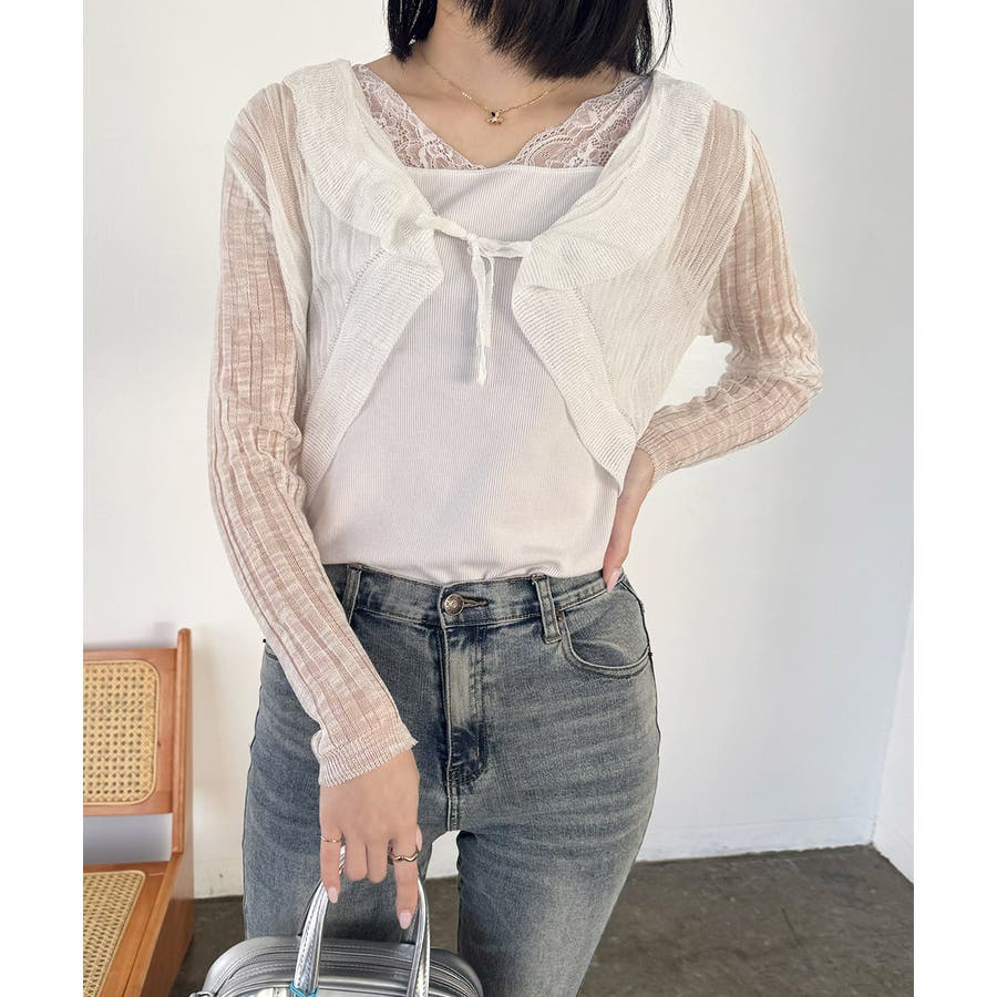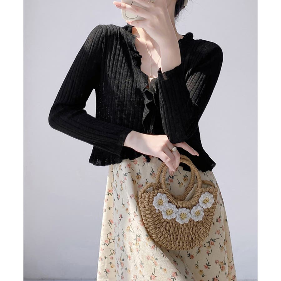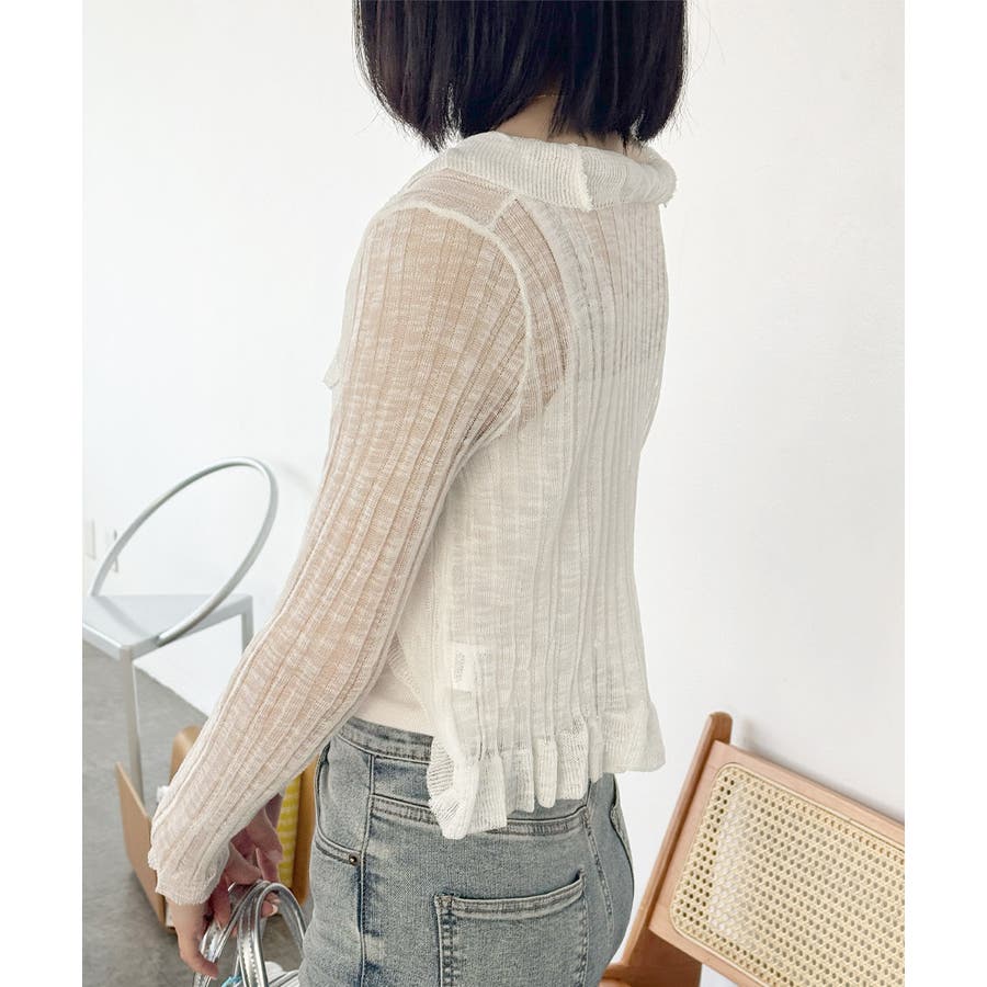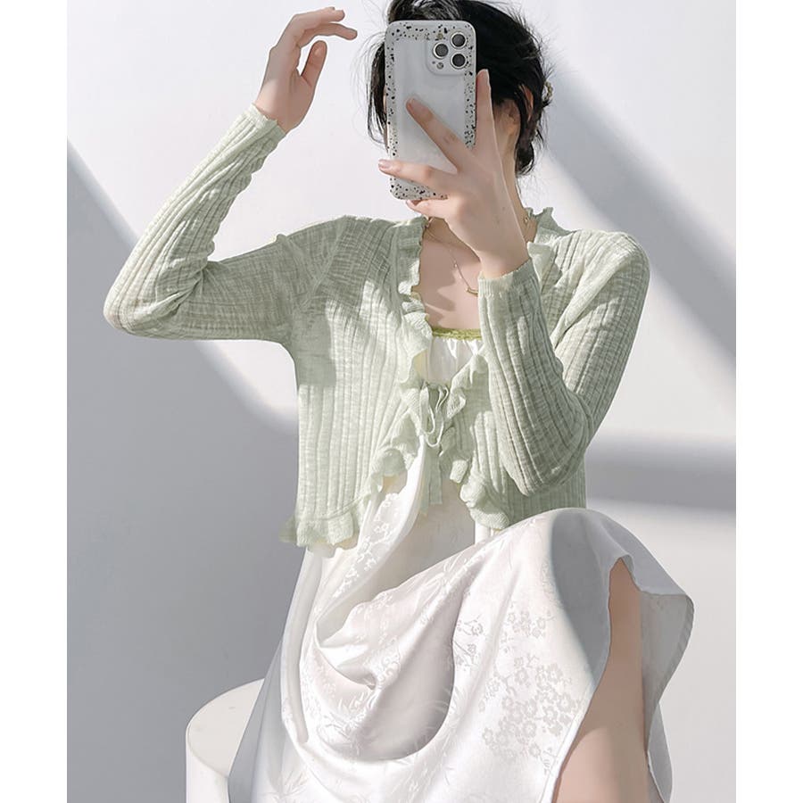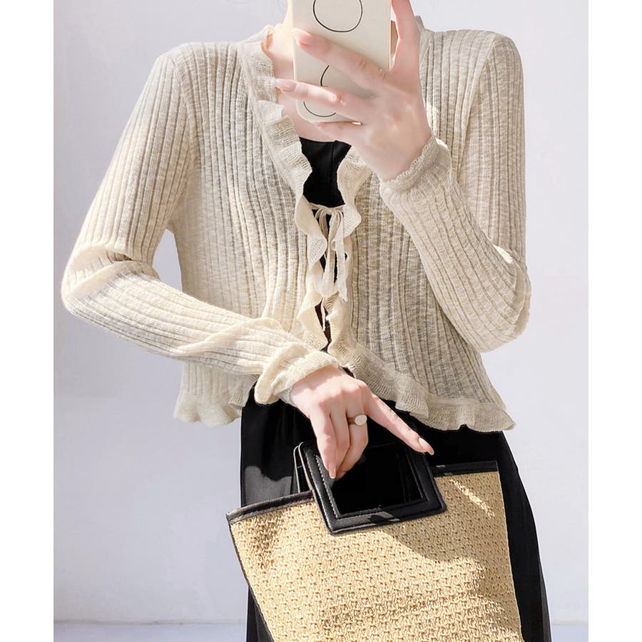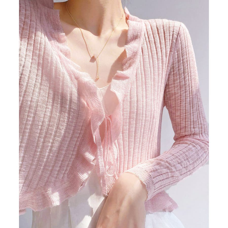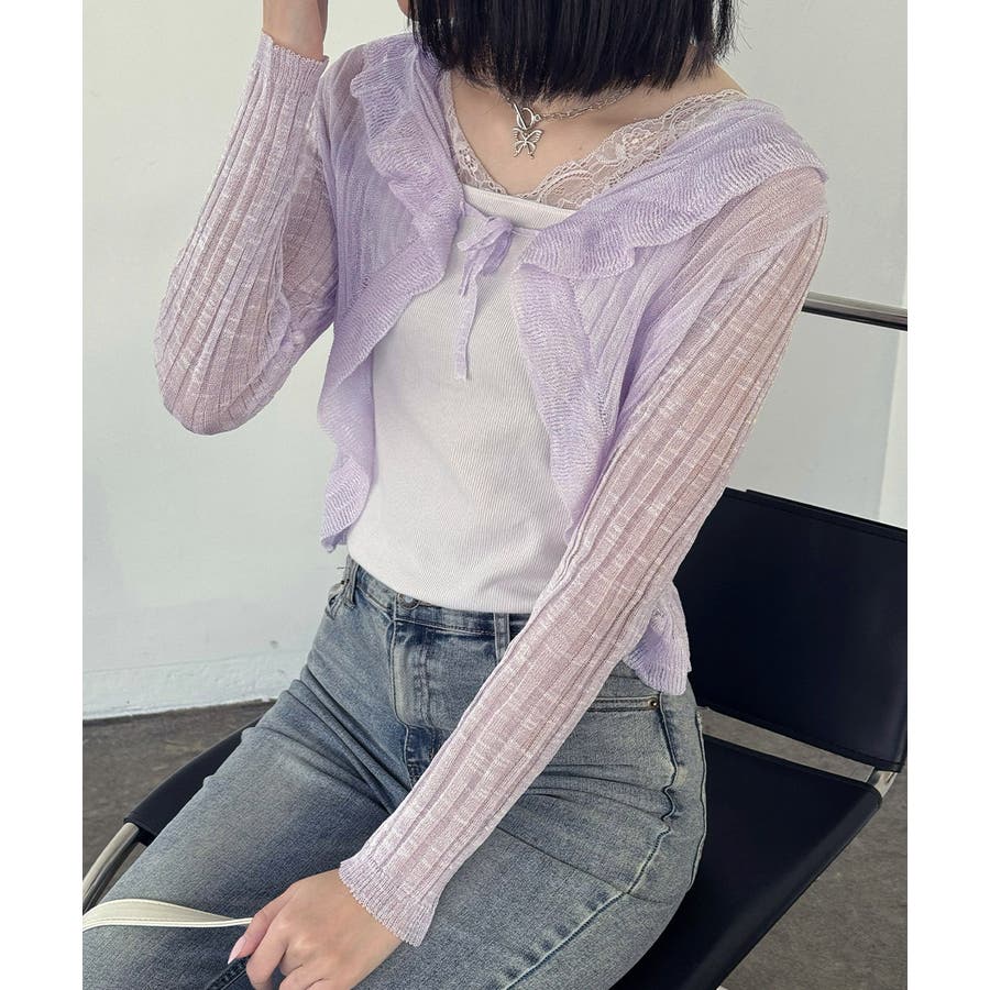 フリルカーディガン UVケア羽織り清楚 涼しい夏服 透け感