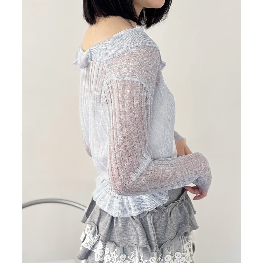 全7色展開のショート丈リブ編みフリルカーディガン。