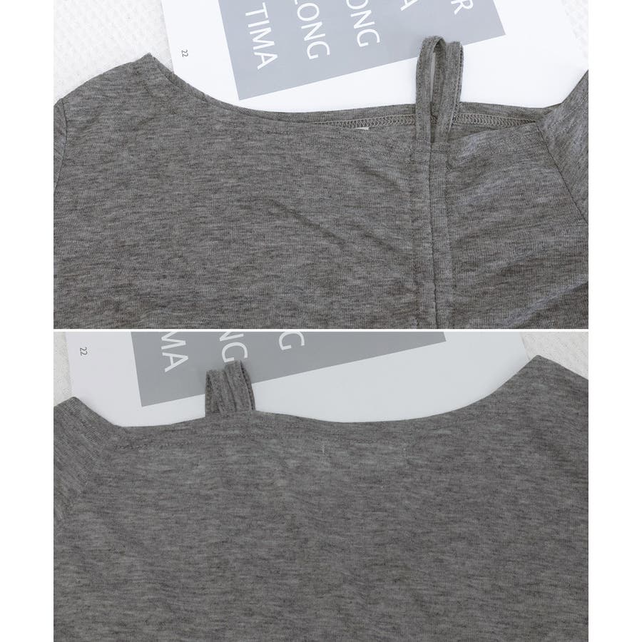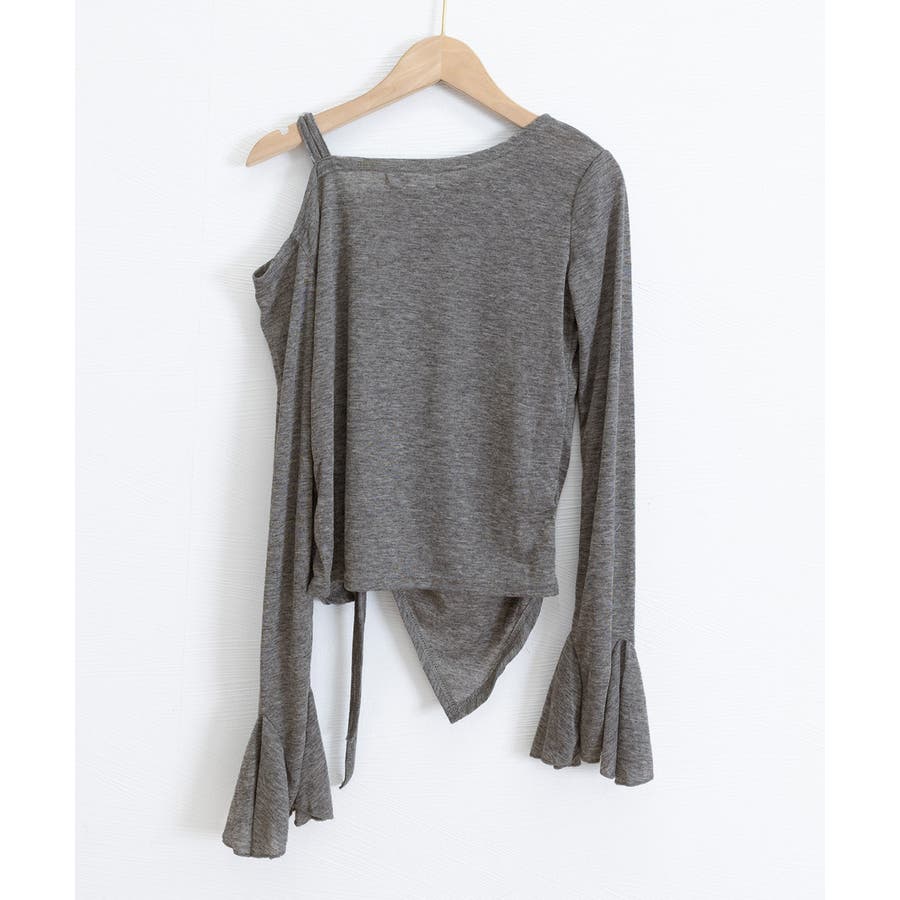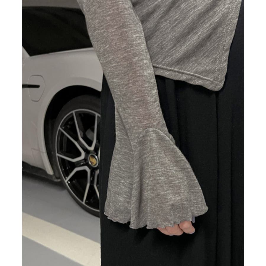 肩見せトップス無地 きれいめカットソー フレア袖Tシャツ秋
