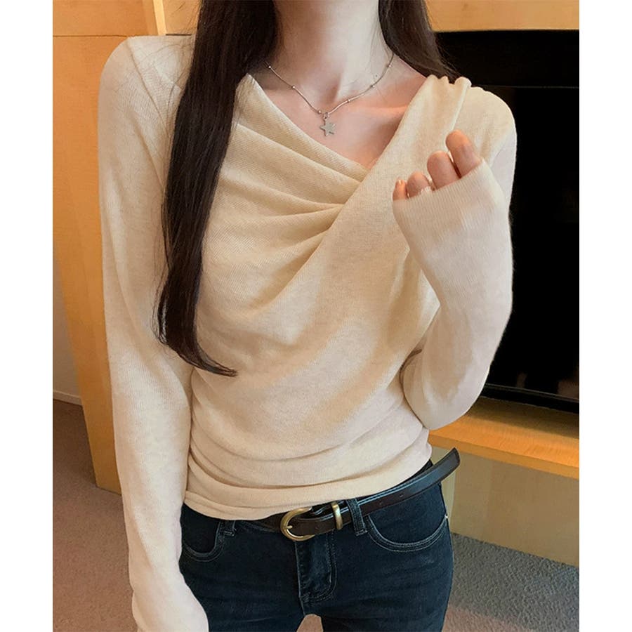 ドレープネック秋服 薄手セーター 上品 ニットカットソー春
