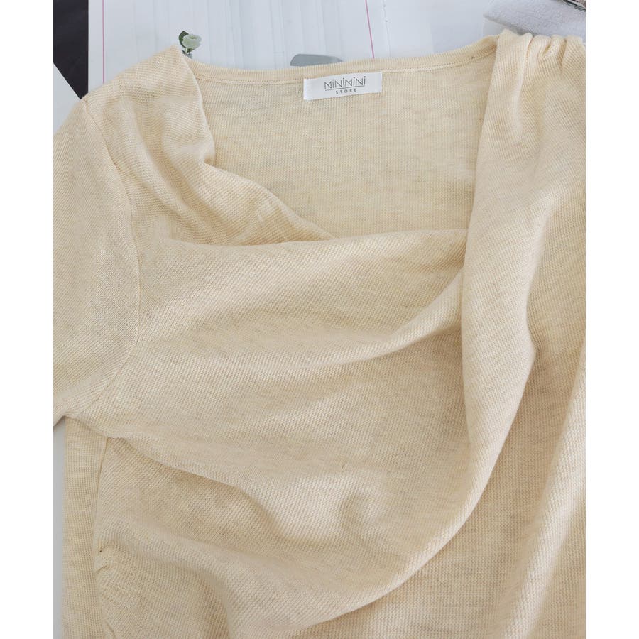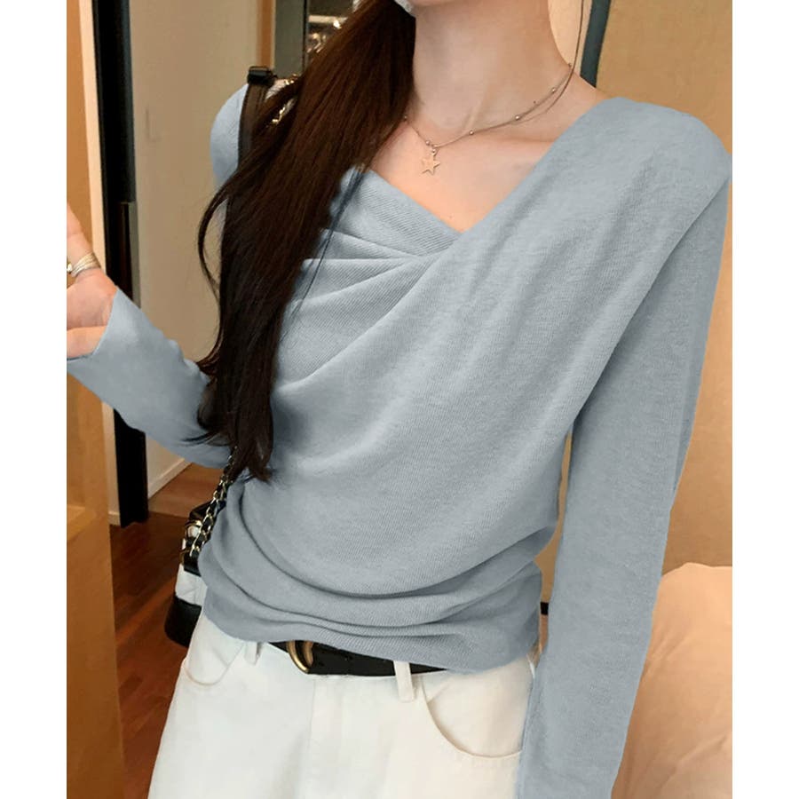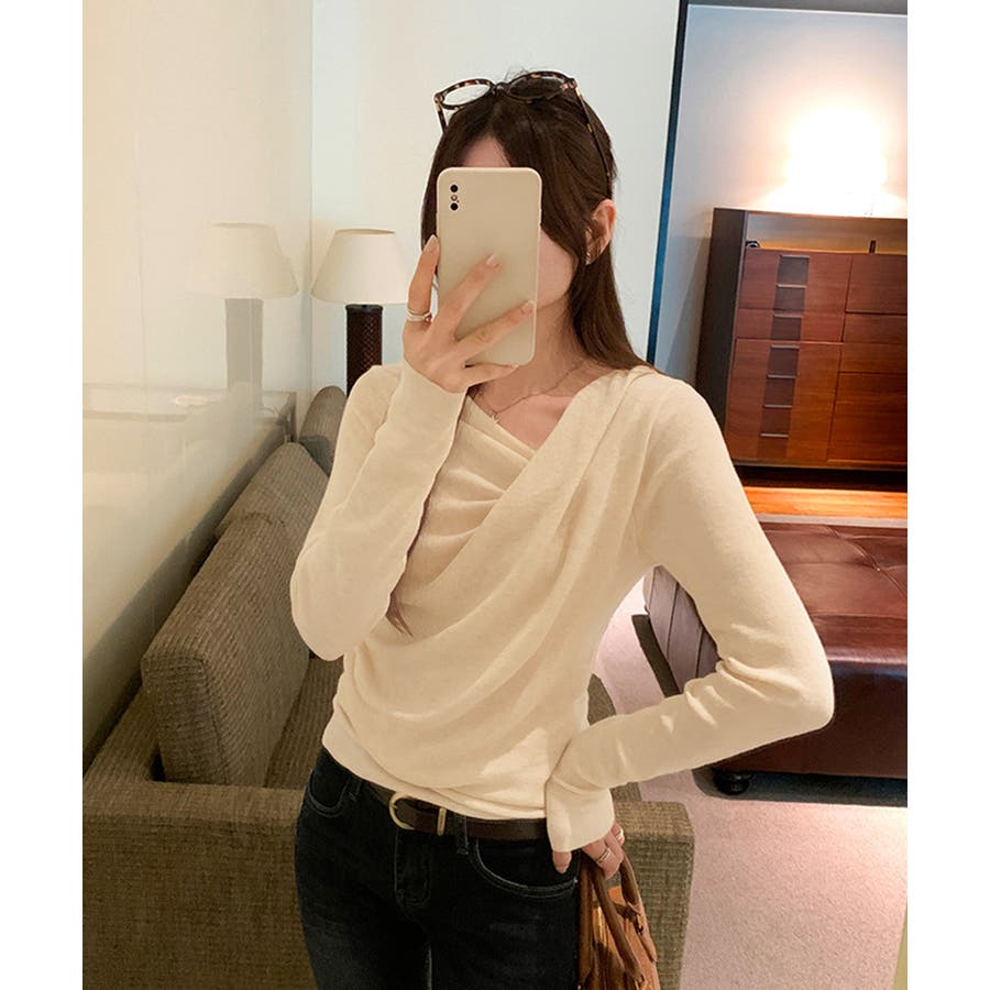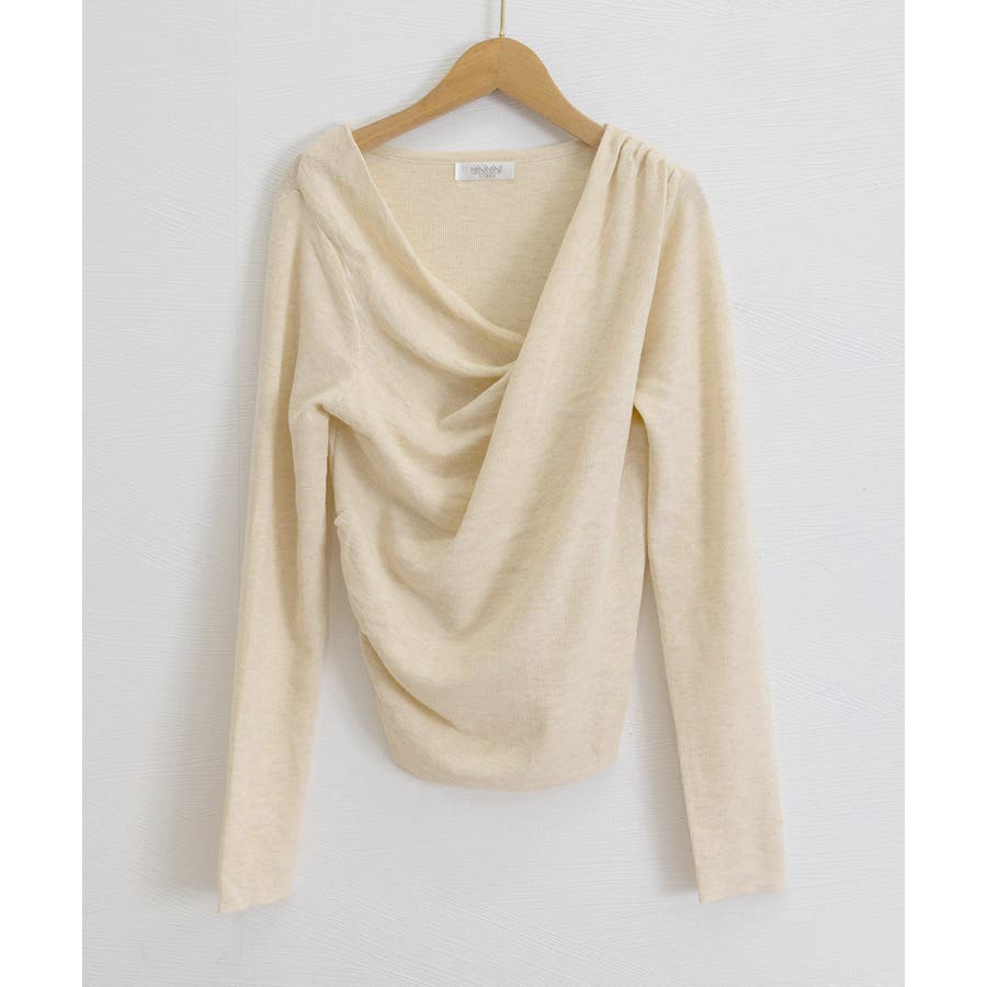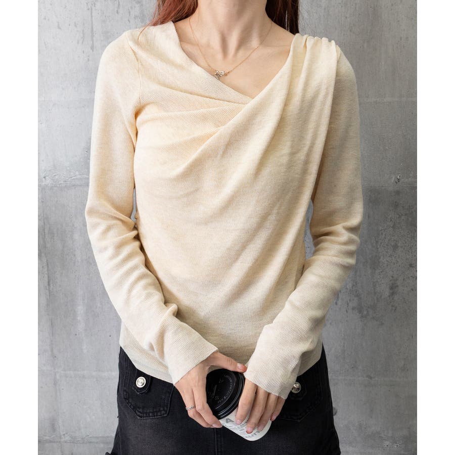 上品なドレープデザインが魅力の長袖ニットトップス。