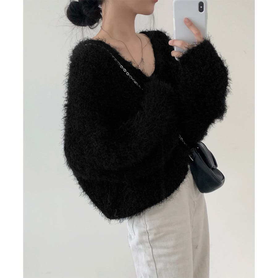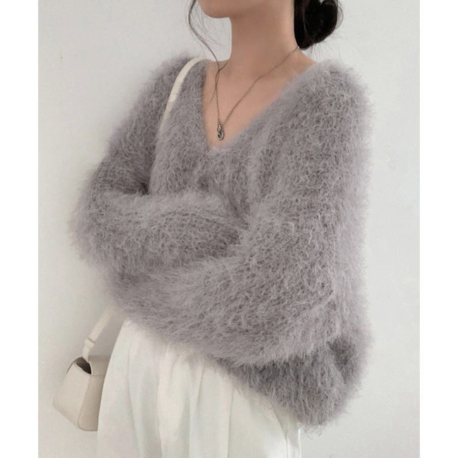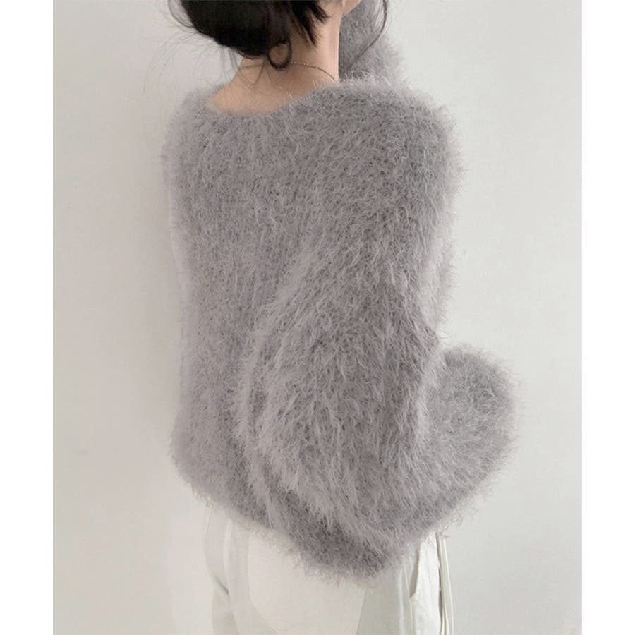 毛足の長いふわっとしたニット素材は肌触りが柔らかく、レトロでフェミニンな雰囲気を演出。