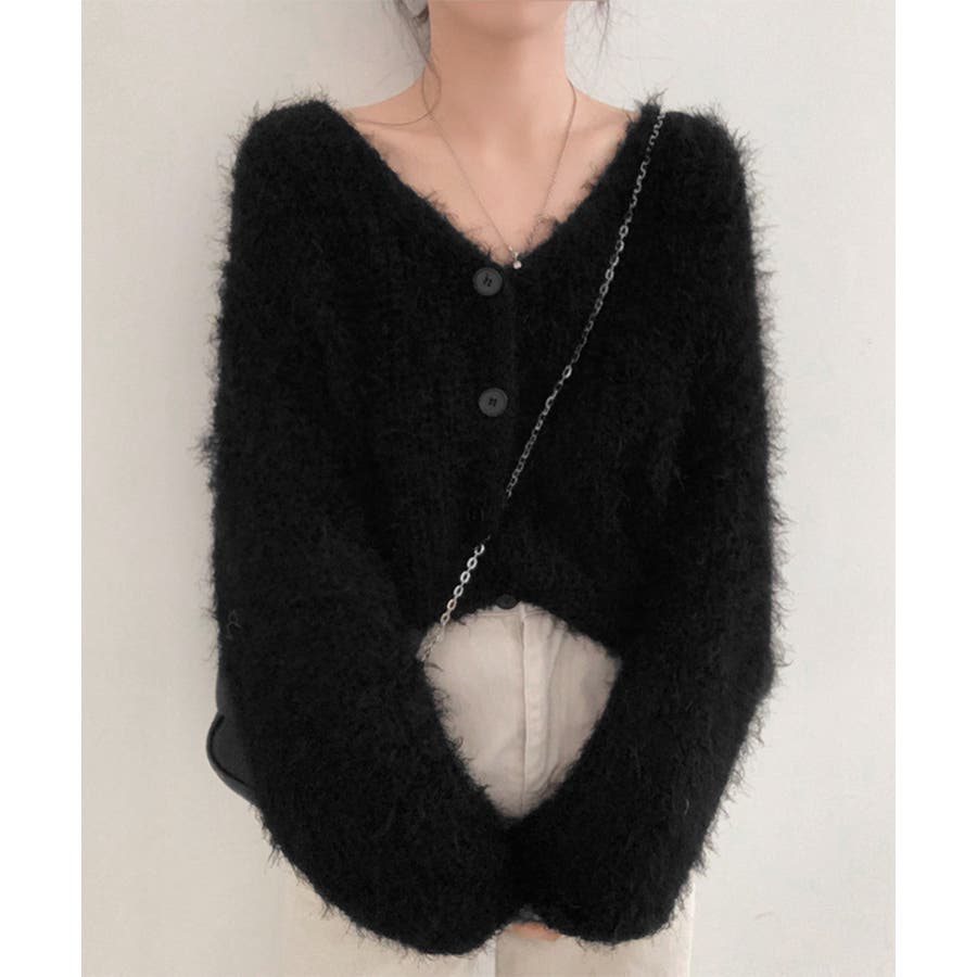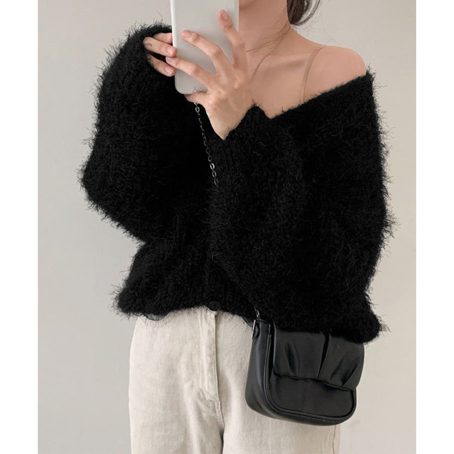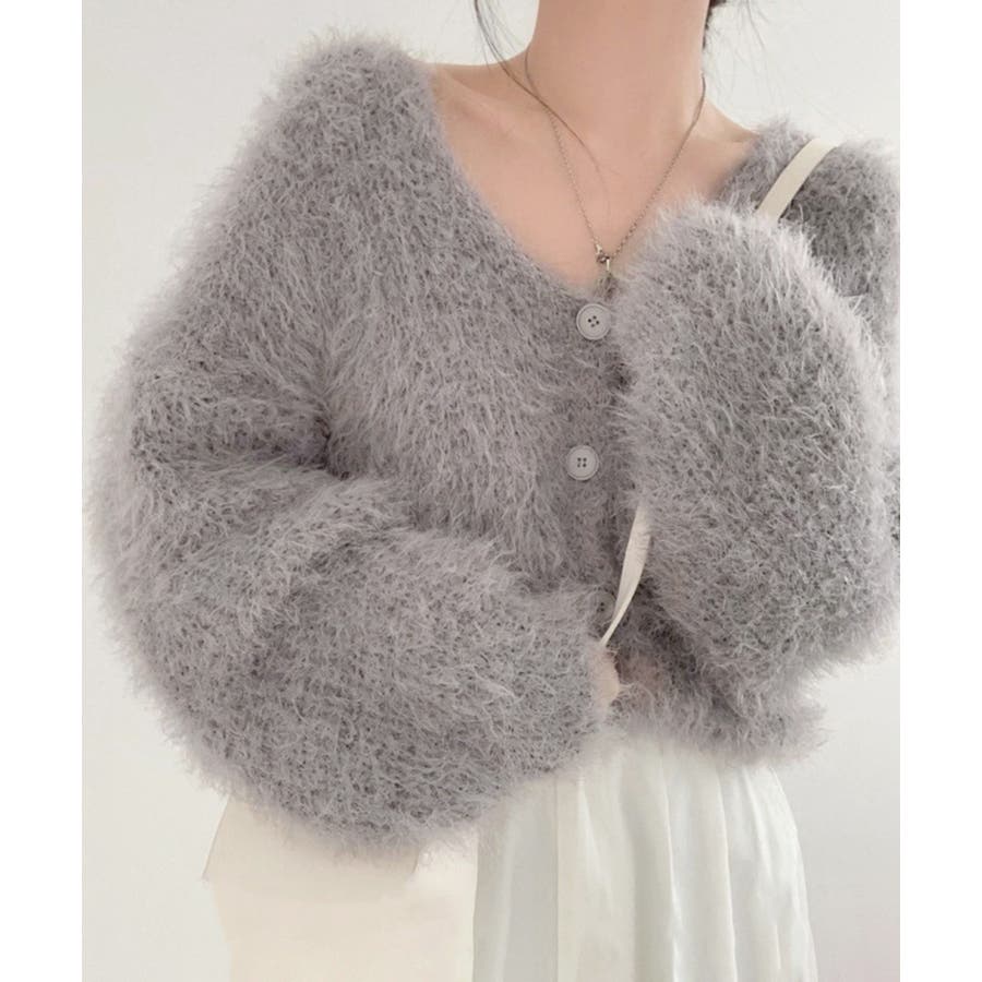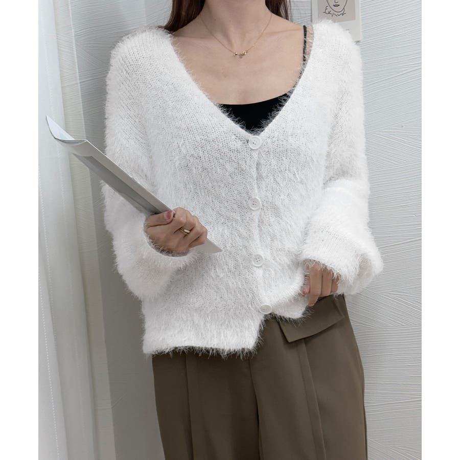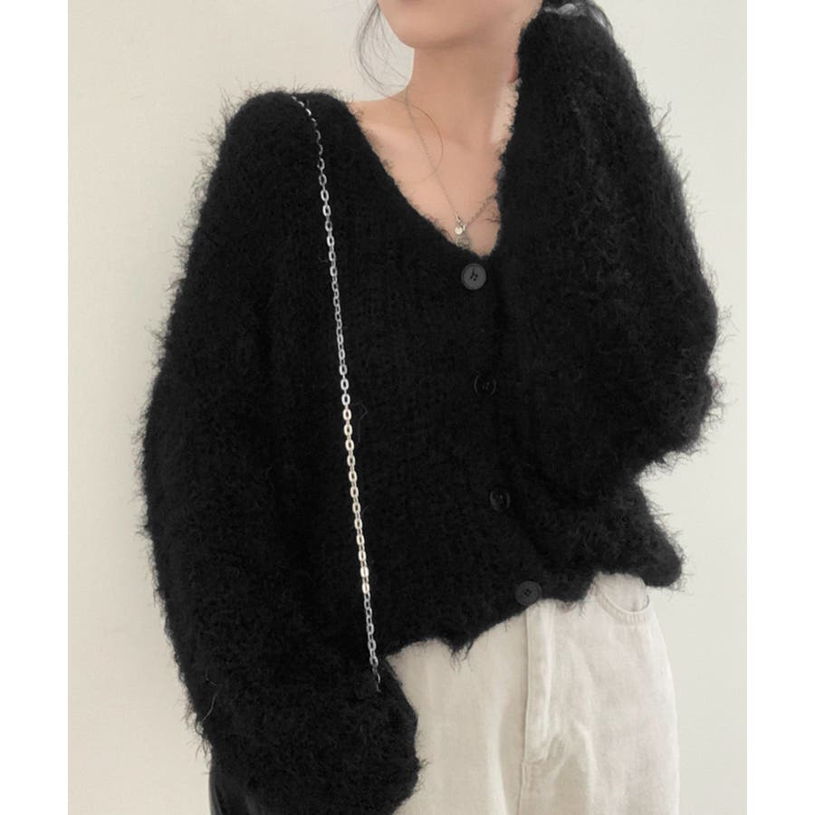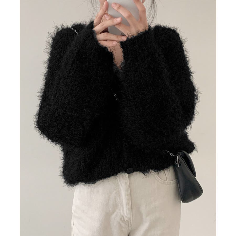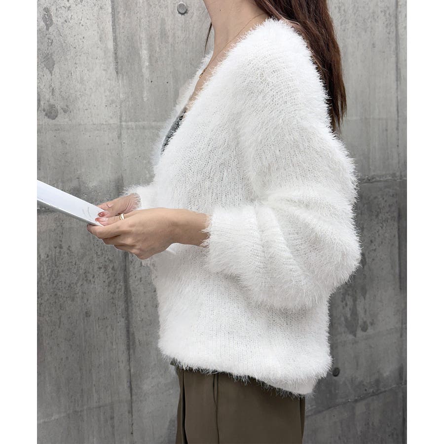 シャギーニットカーディガン モヘアタッチ