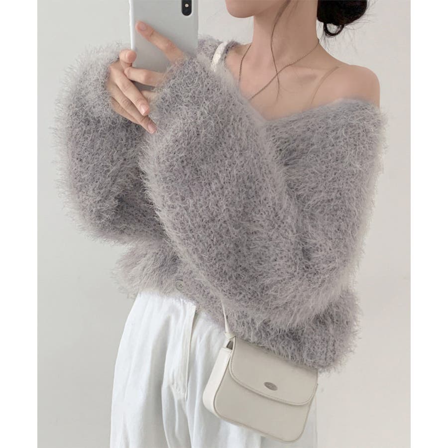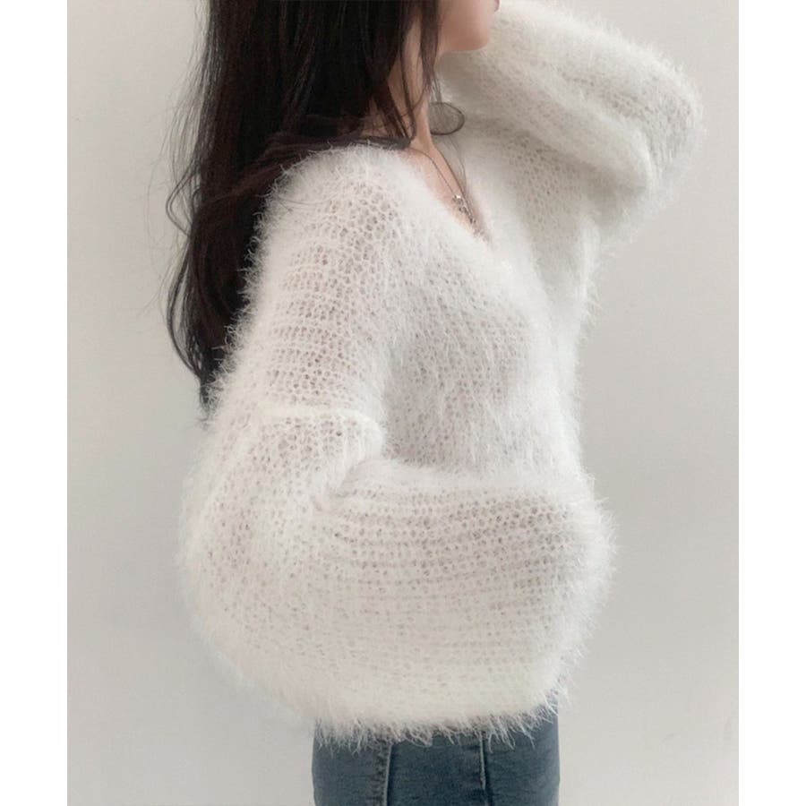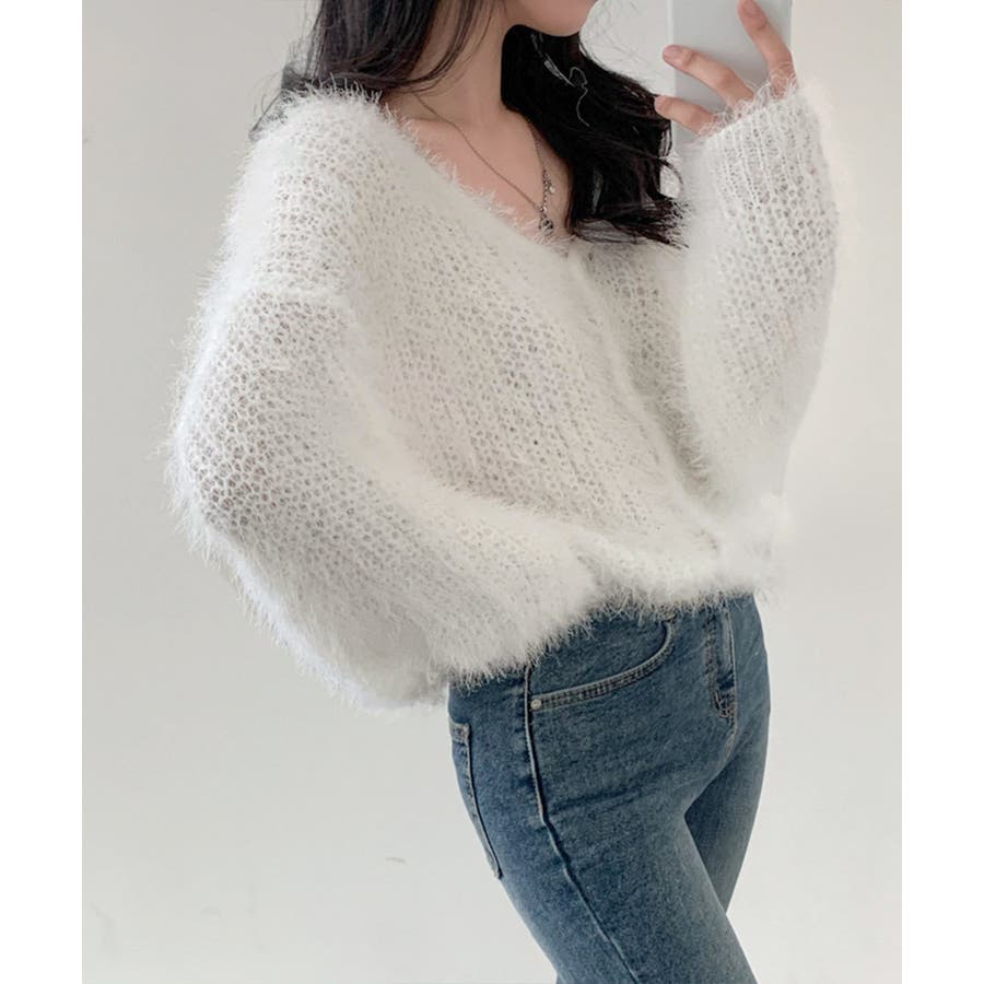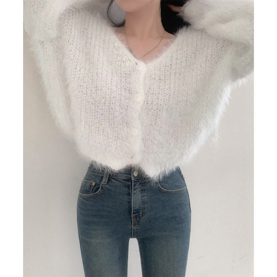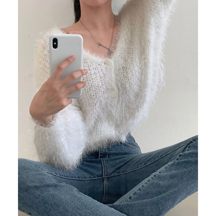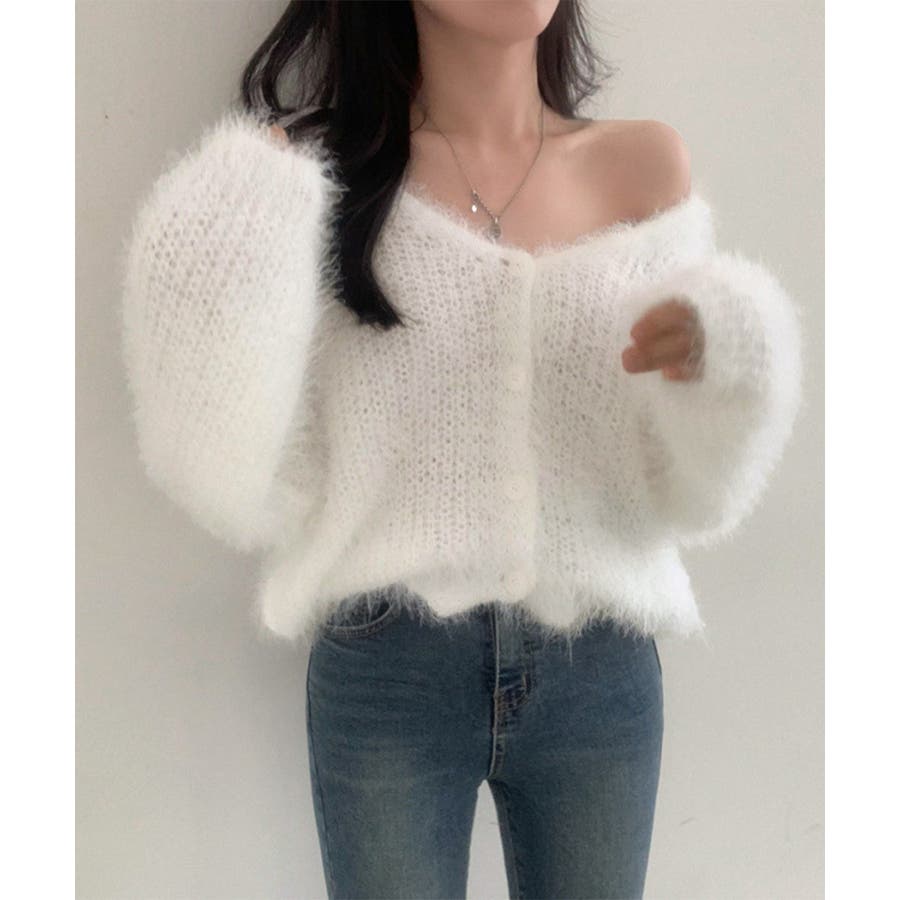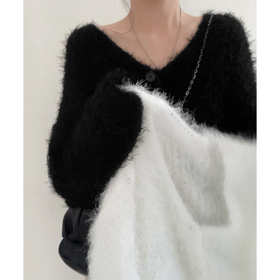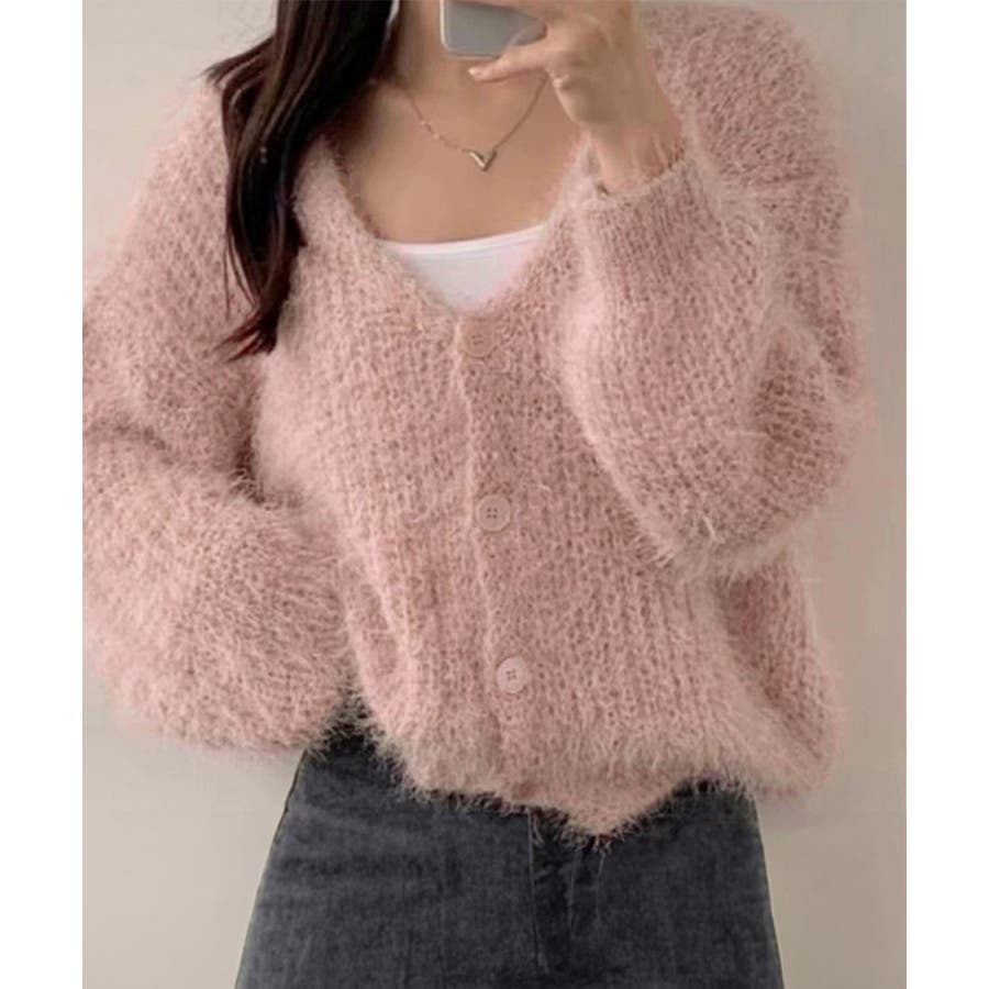 シャギーニットカーディガン モヘアタッチ