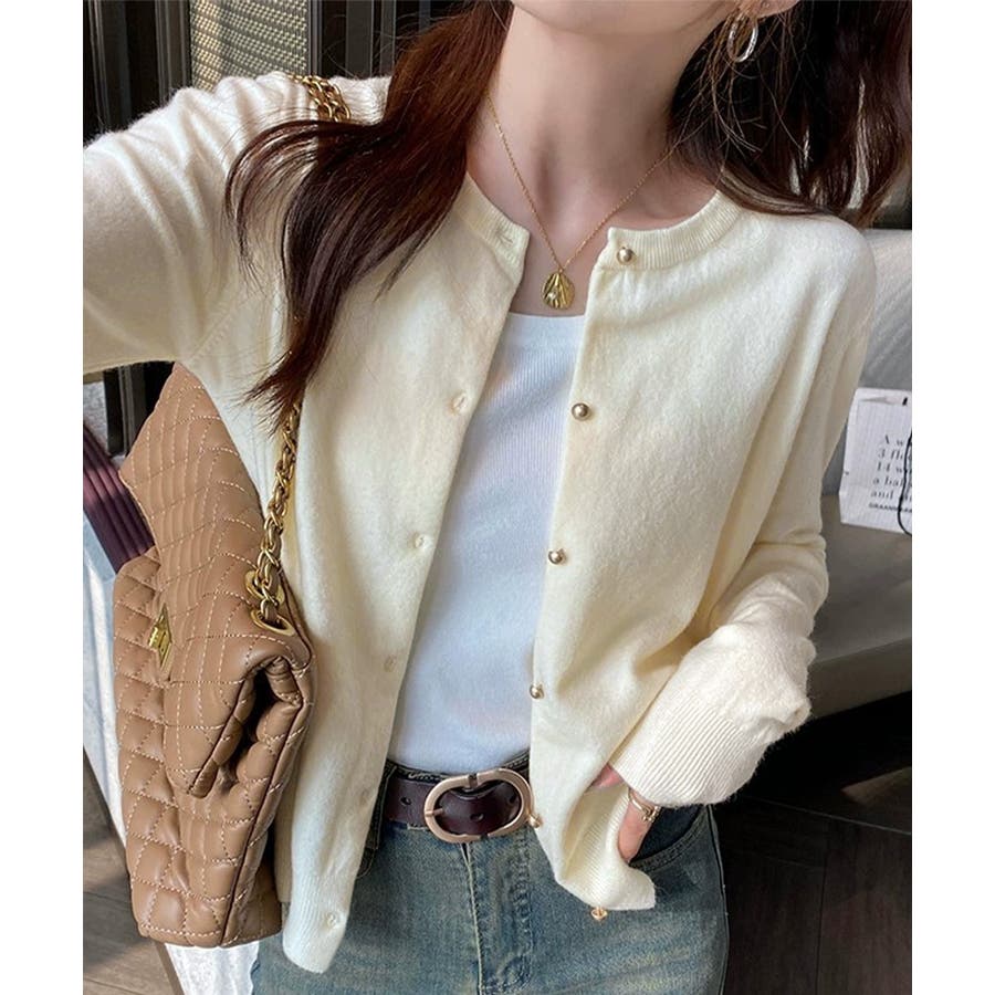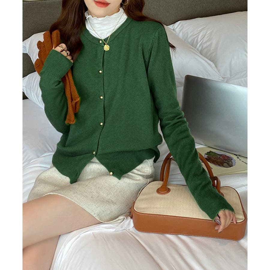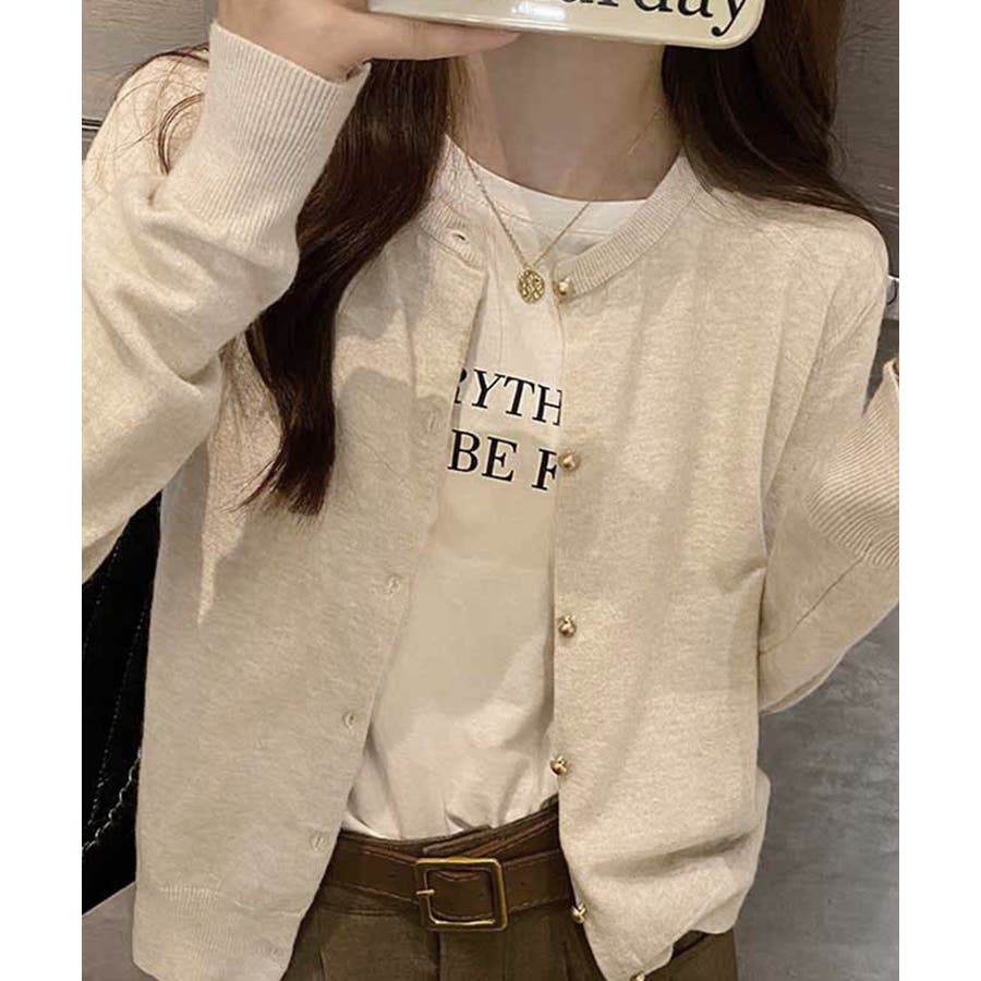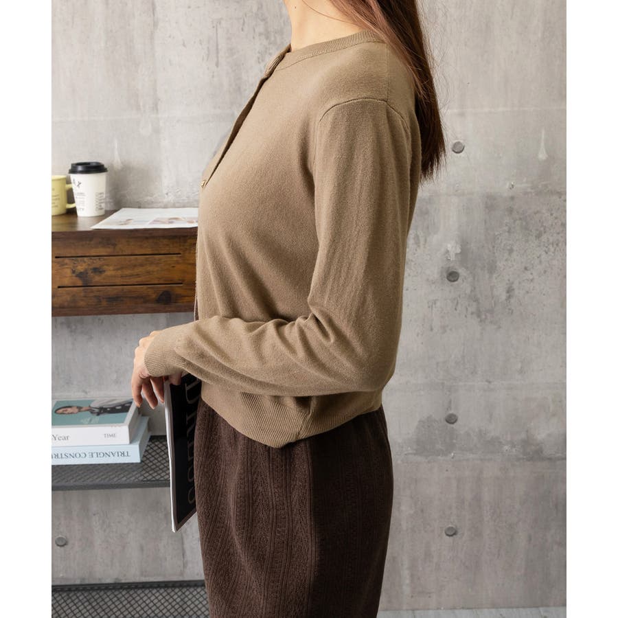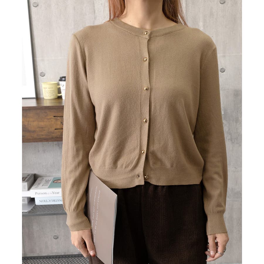 上品な印象のゴールドボタンがポイントのベーシックカーディガン。