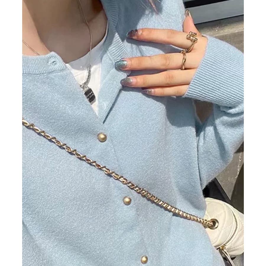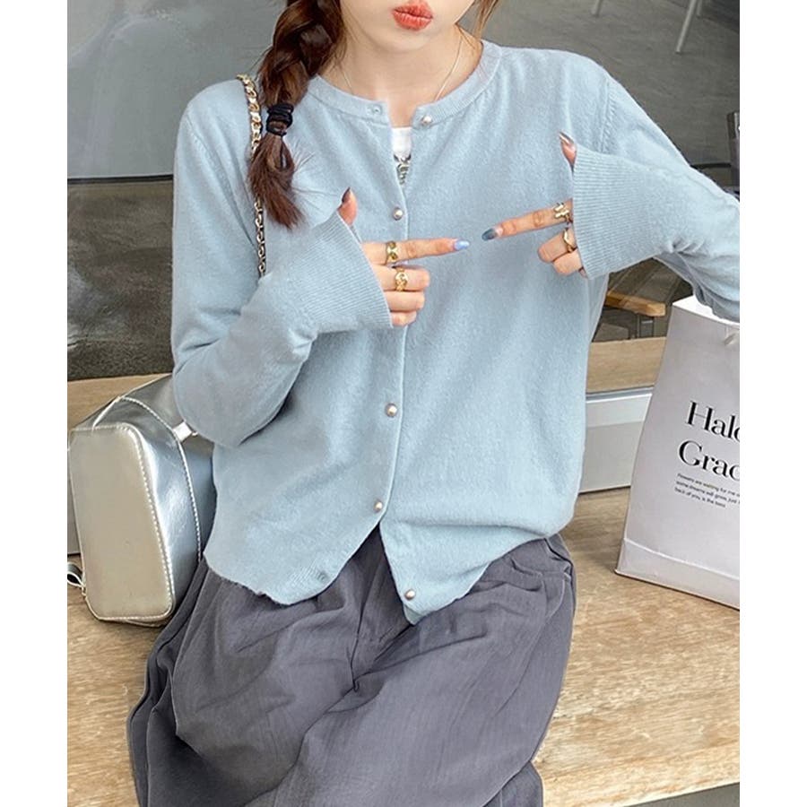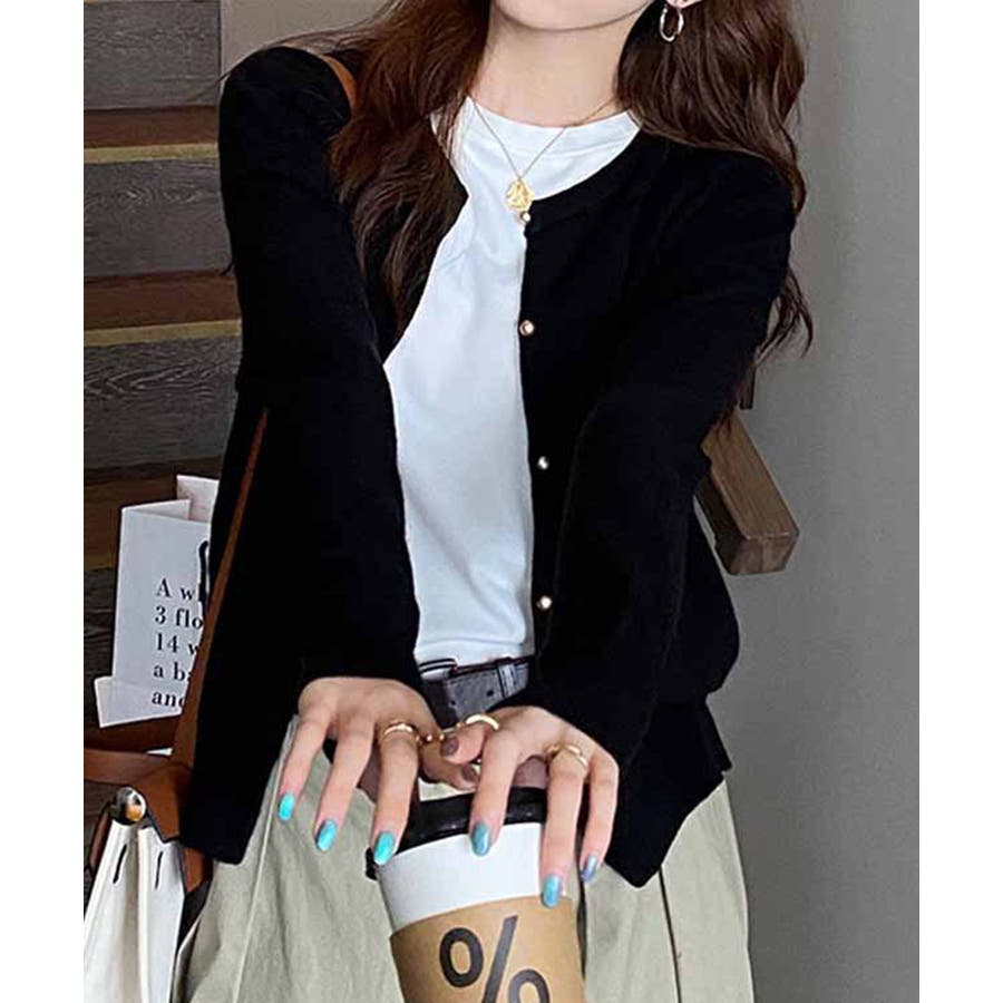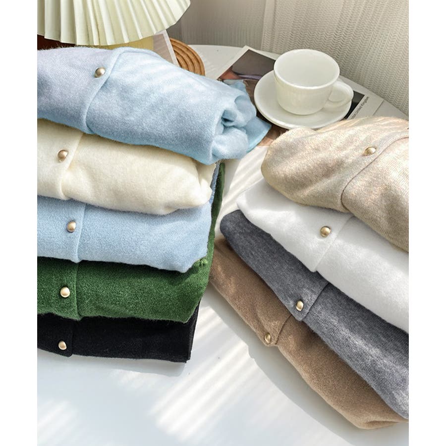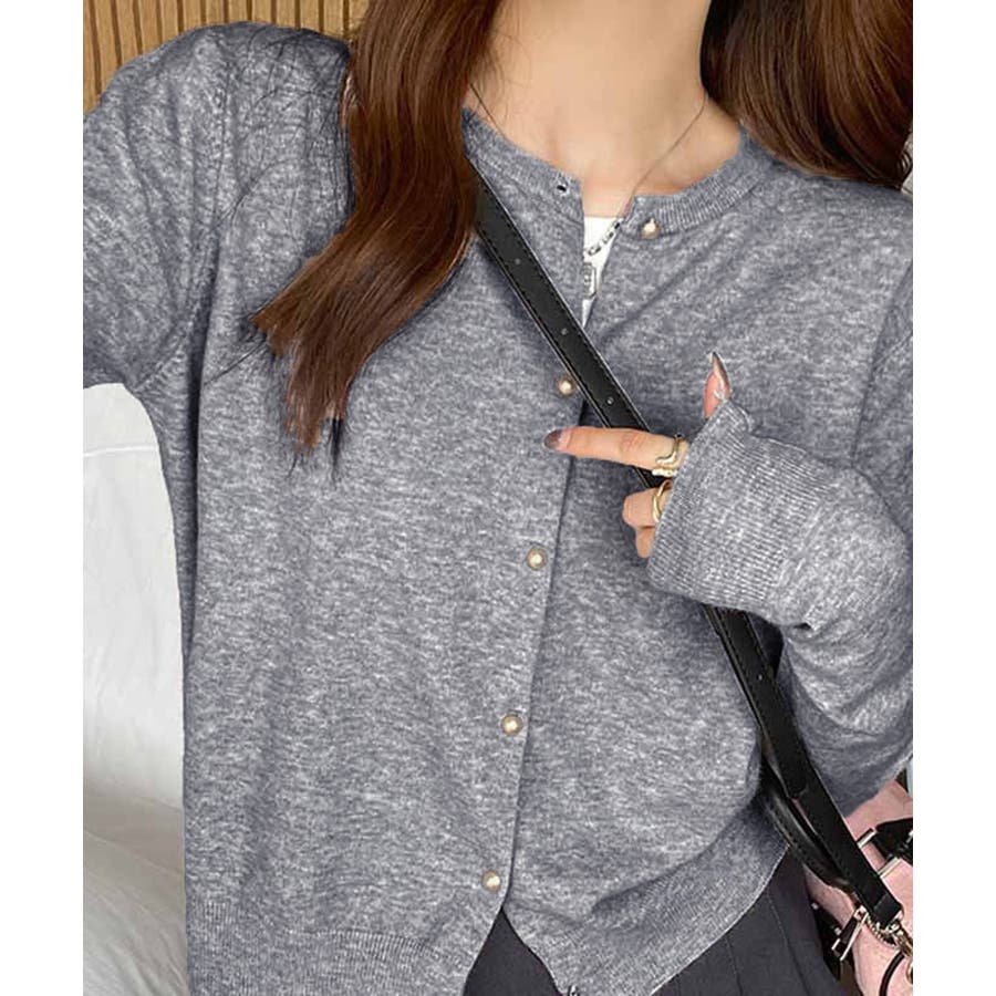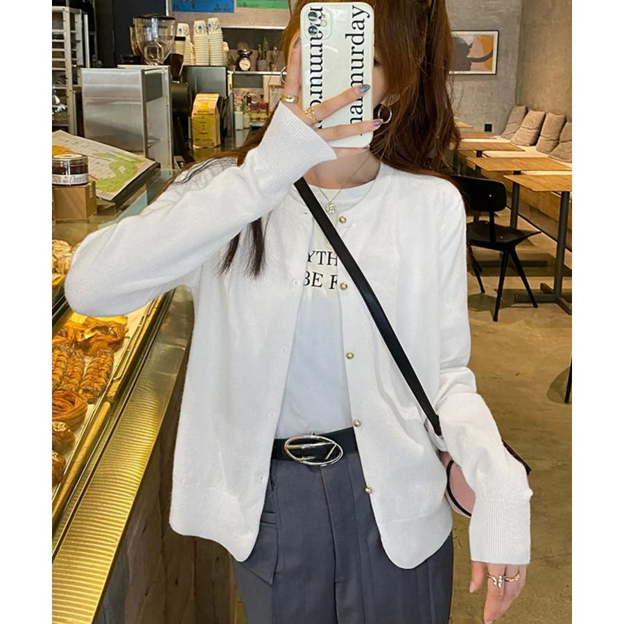 上品な印象のゴールドボタンがポイントのベーシックカーディガン。