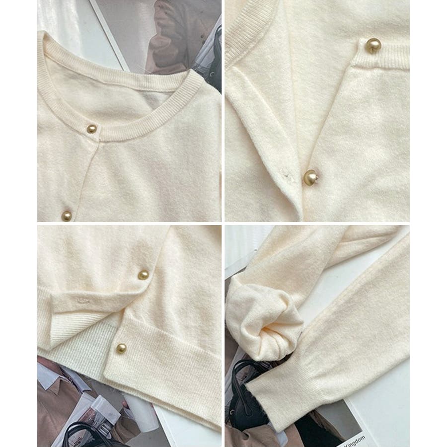 丸首ニット 前開き オフィスカジュアル 通勤コーデ春夏秋冬