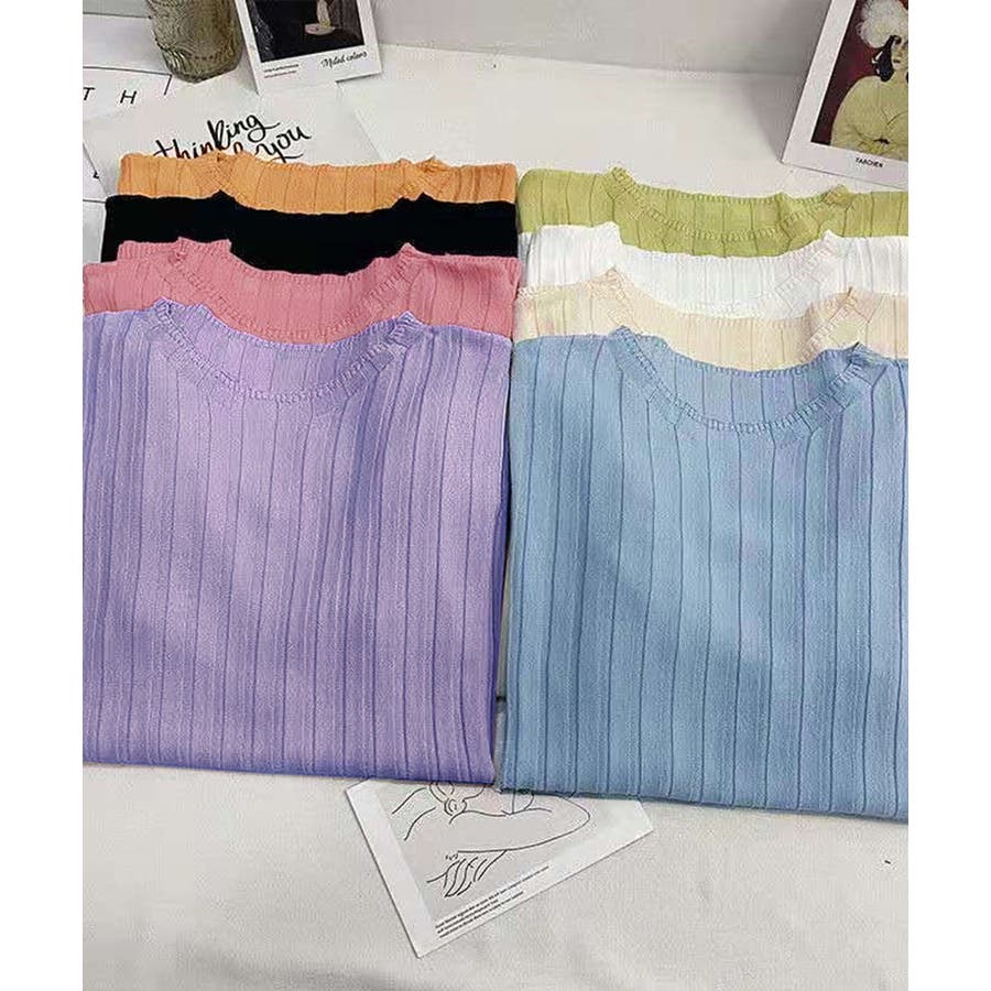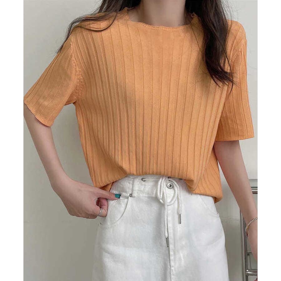 細見え大人ニット夏 無地 丸首 軽やか プルオーバー韓国風
