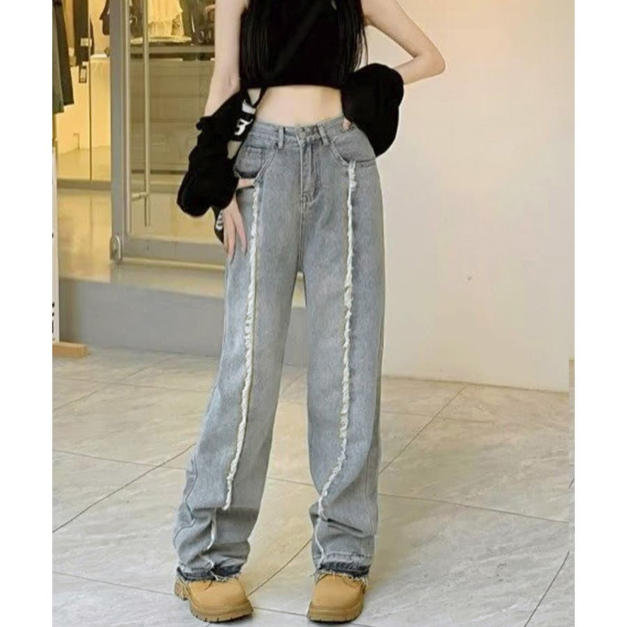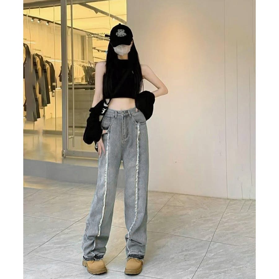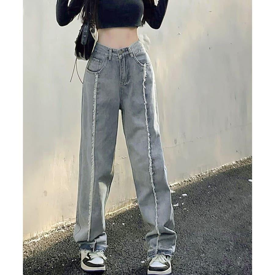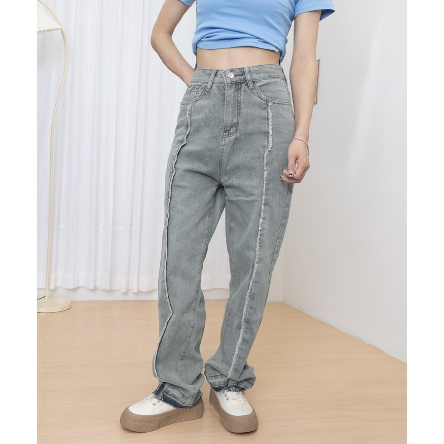 細見えデニムレトロ 切りっぱなしズボン カジュアルジーンズ