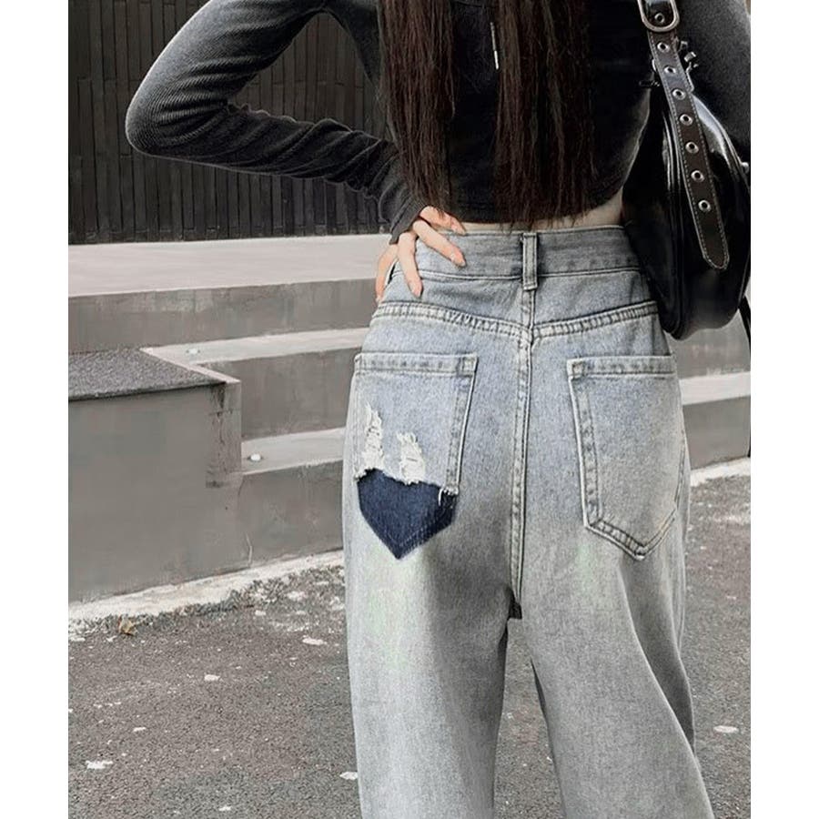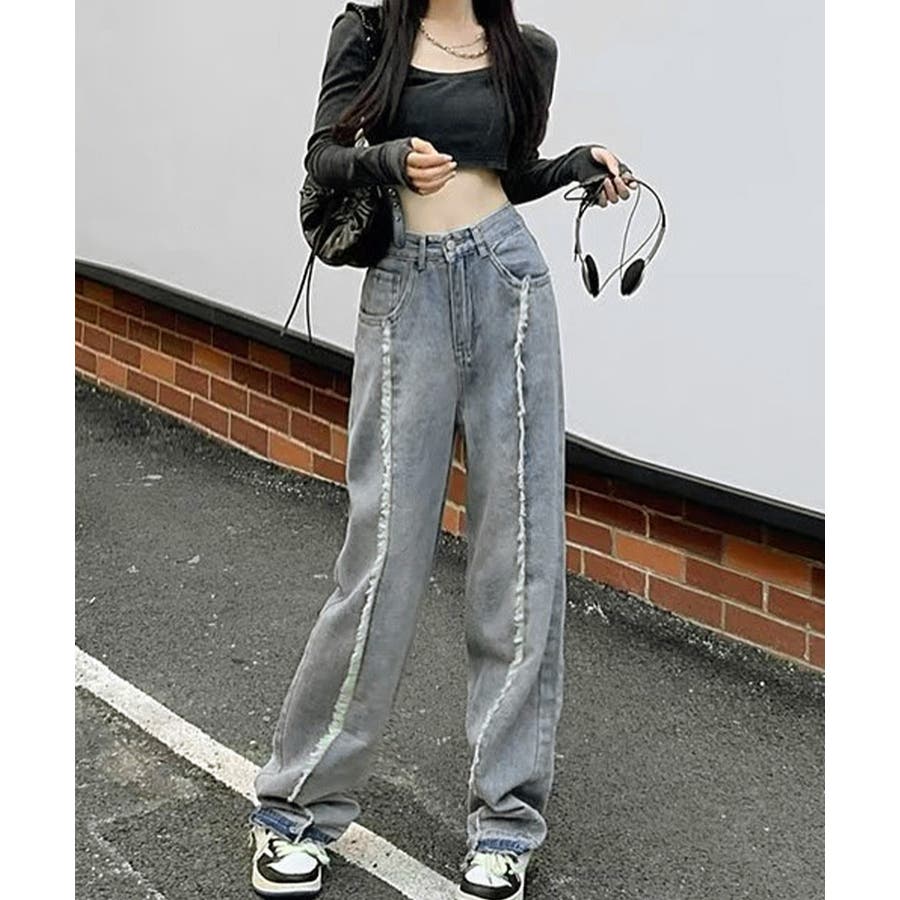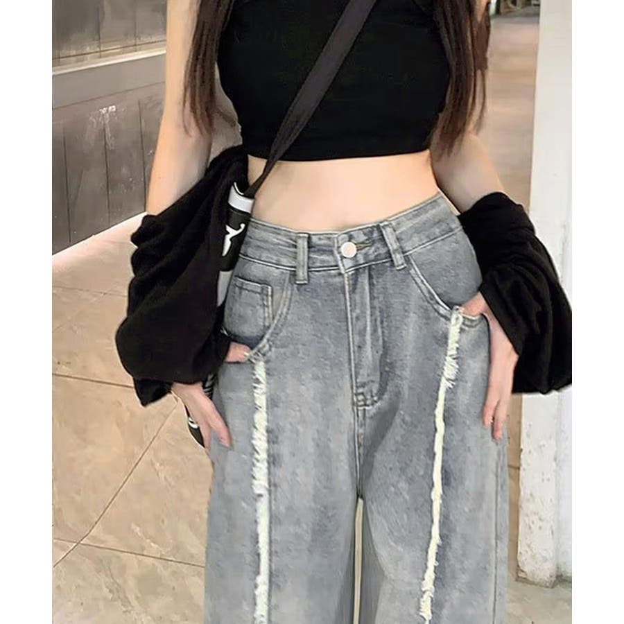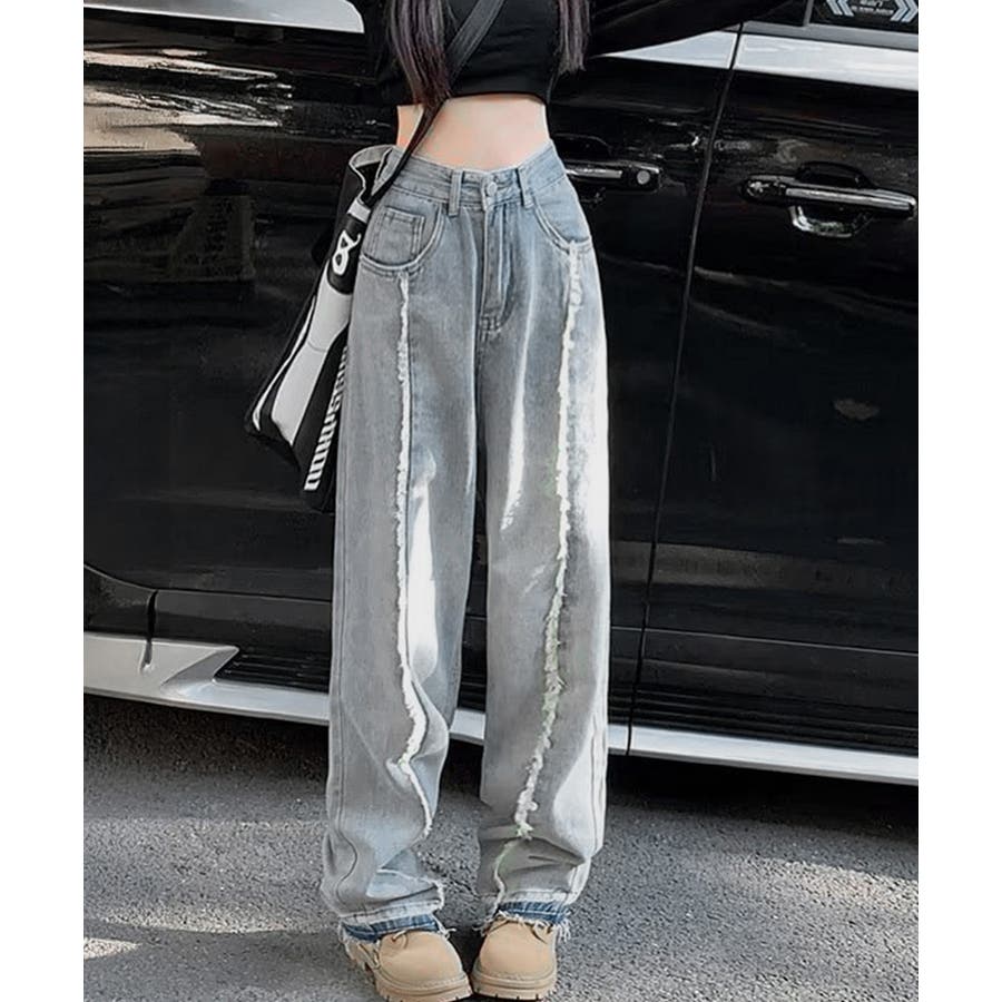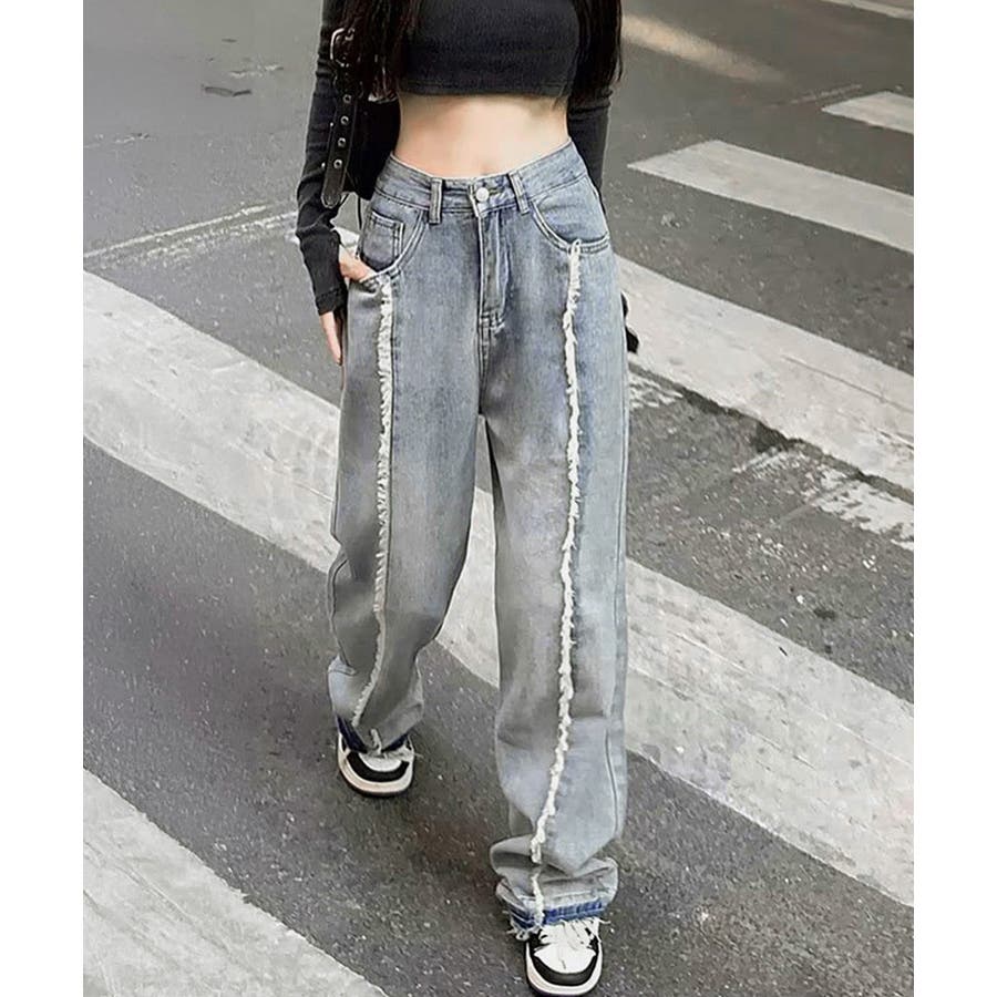 細見えデニムレトロ 切りっぱなしズボン カジュアルジーンズ