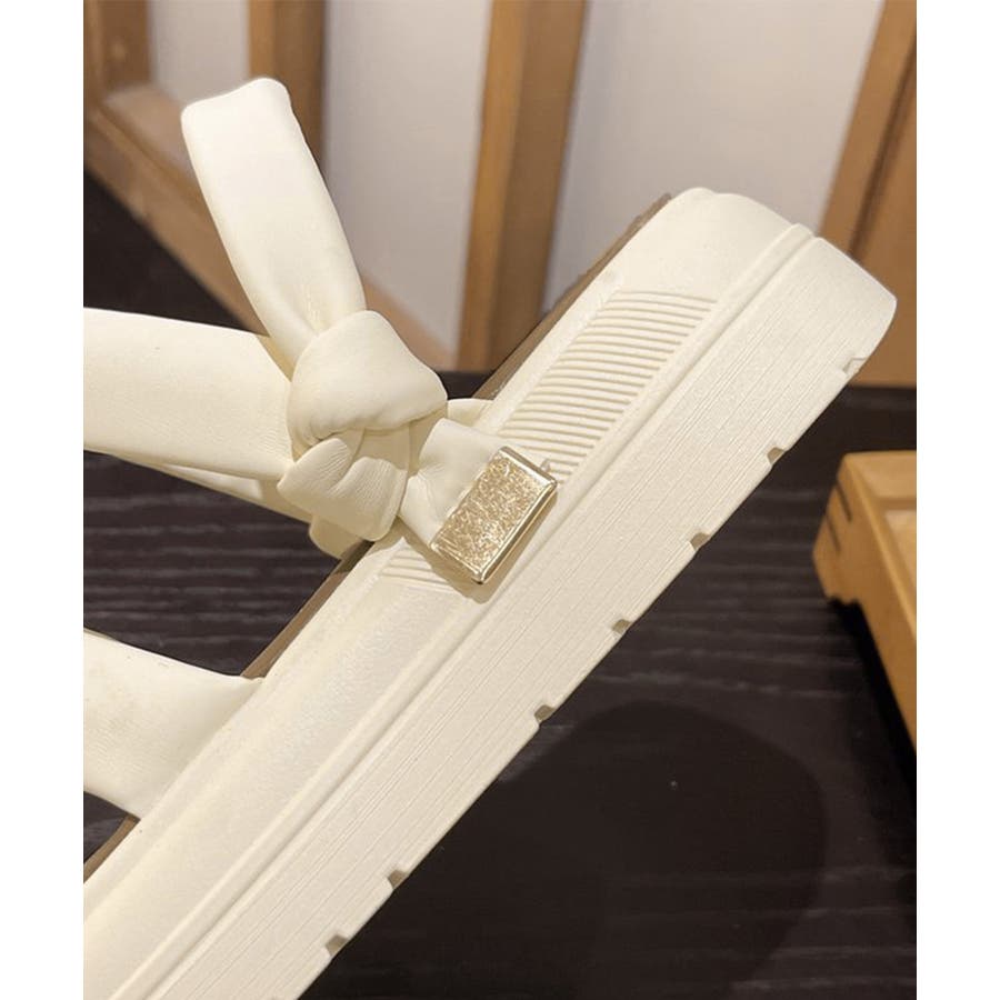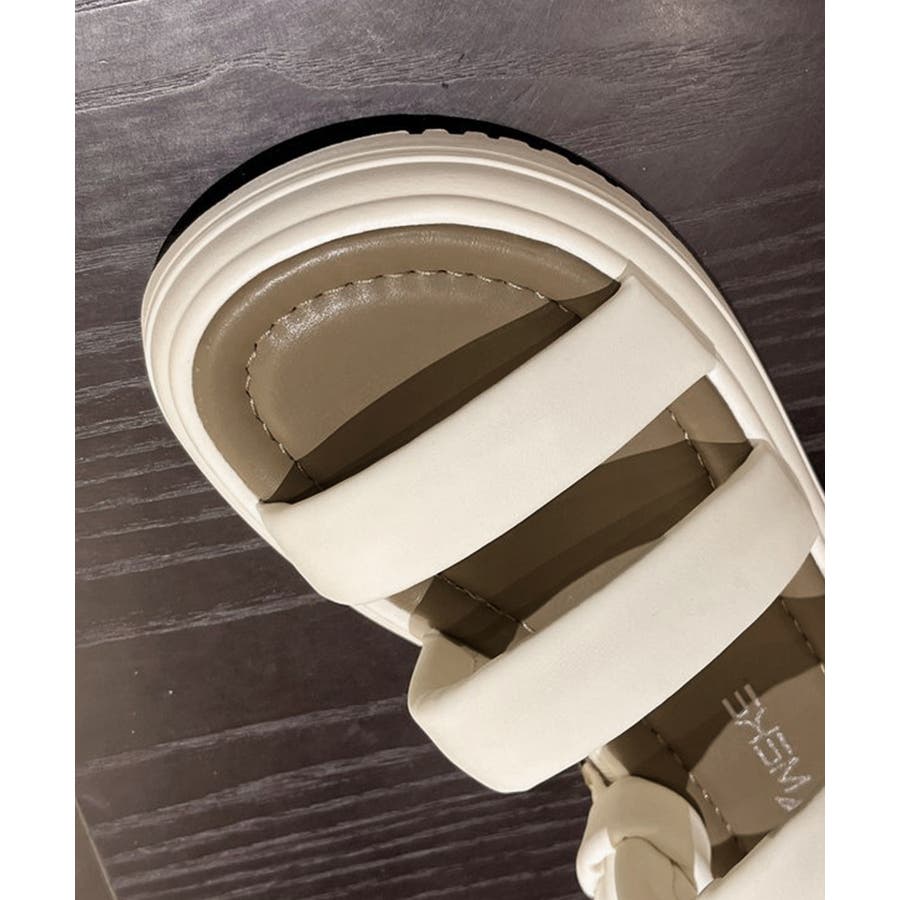 ユニークなベルトデザインでスッキリとした雰囲気、美脚効果も抜群の厚底サンダルです