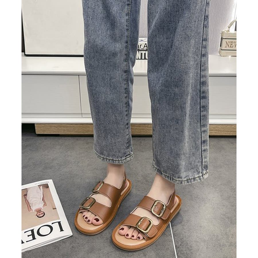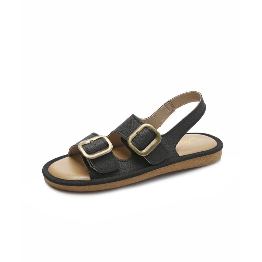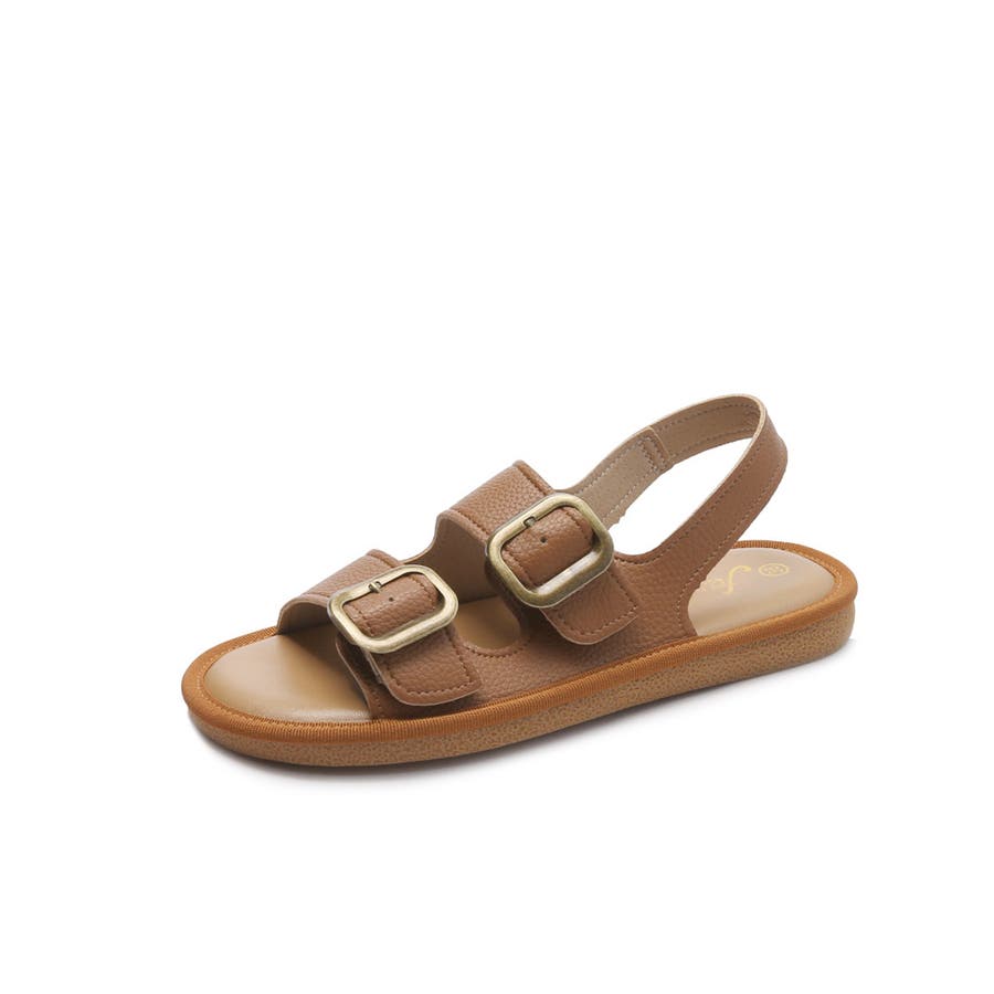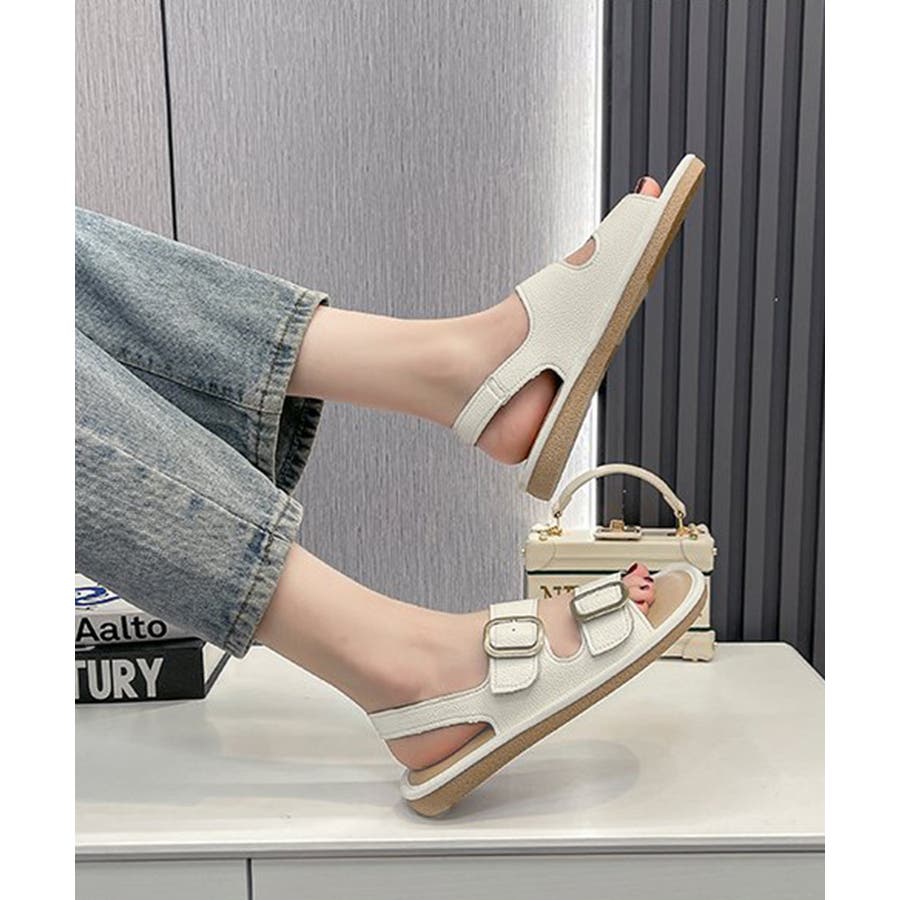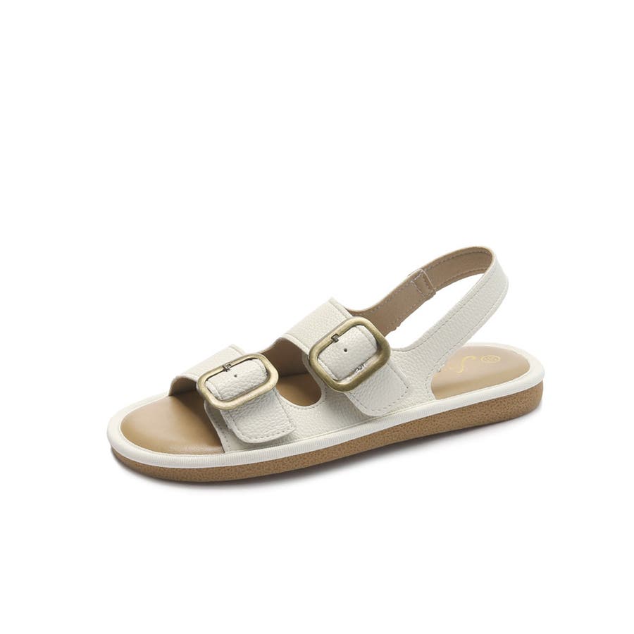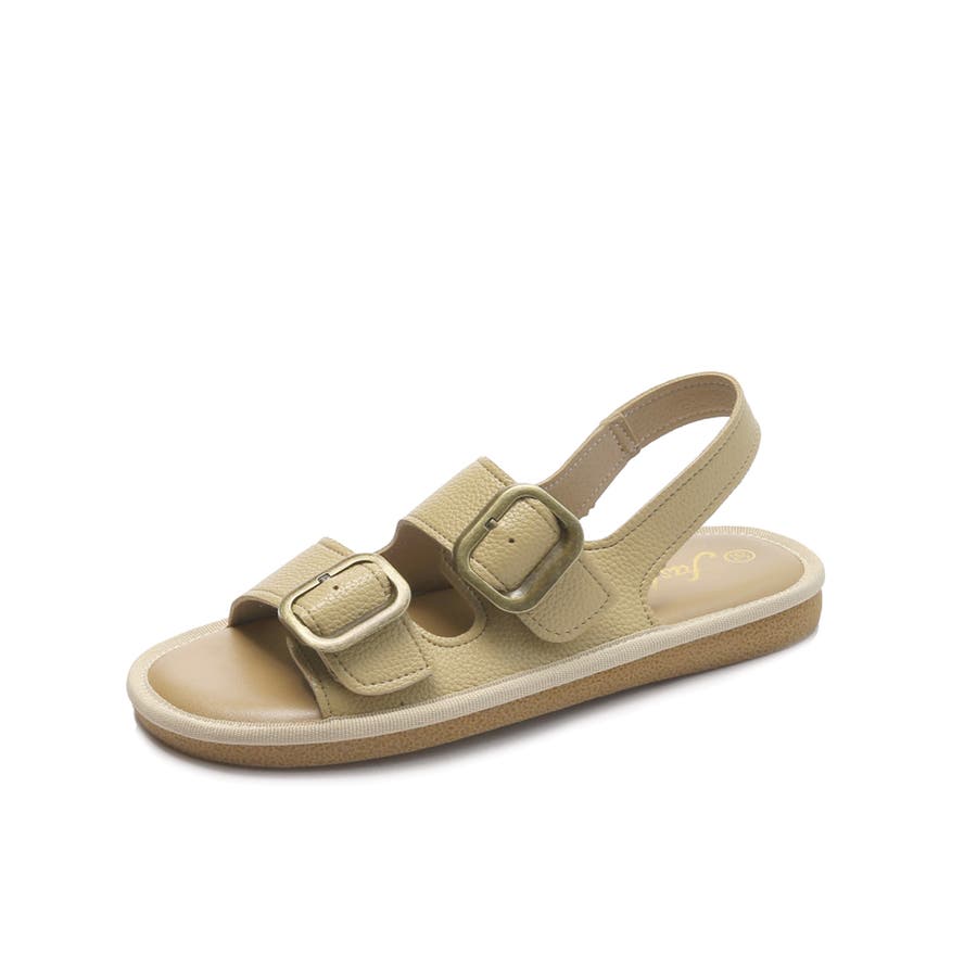大きめのバックルがアクセントになった、トレンド感溢れるダブルベルトサンダル