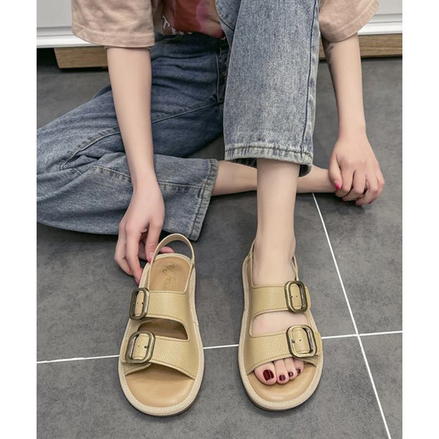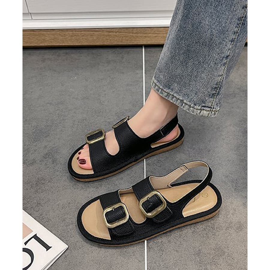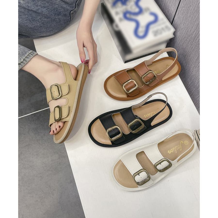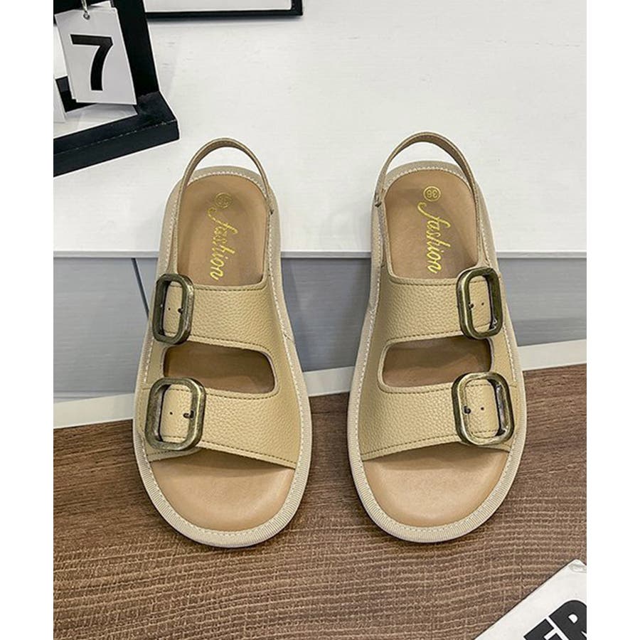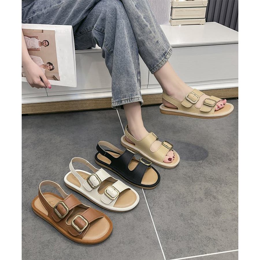 大きめのバックルがアクセントになった、トレンド感溢れるダブルベルトサンダル
