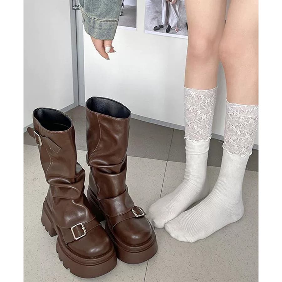 歩きやすい美脚脚長 カバーブーツ 人気 プラットフォーム靴