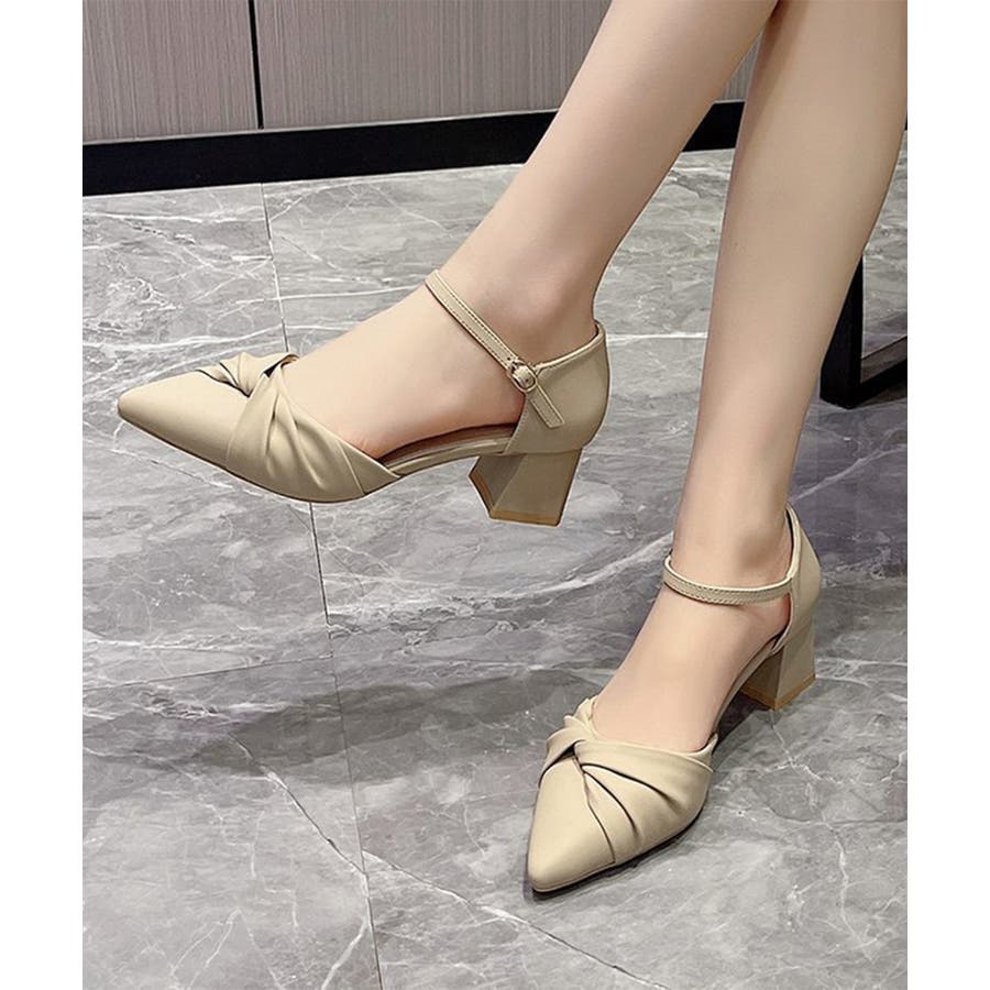 ツイストパンプス アンクルストラップ美脚