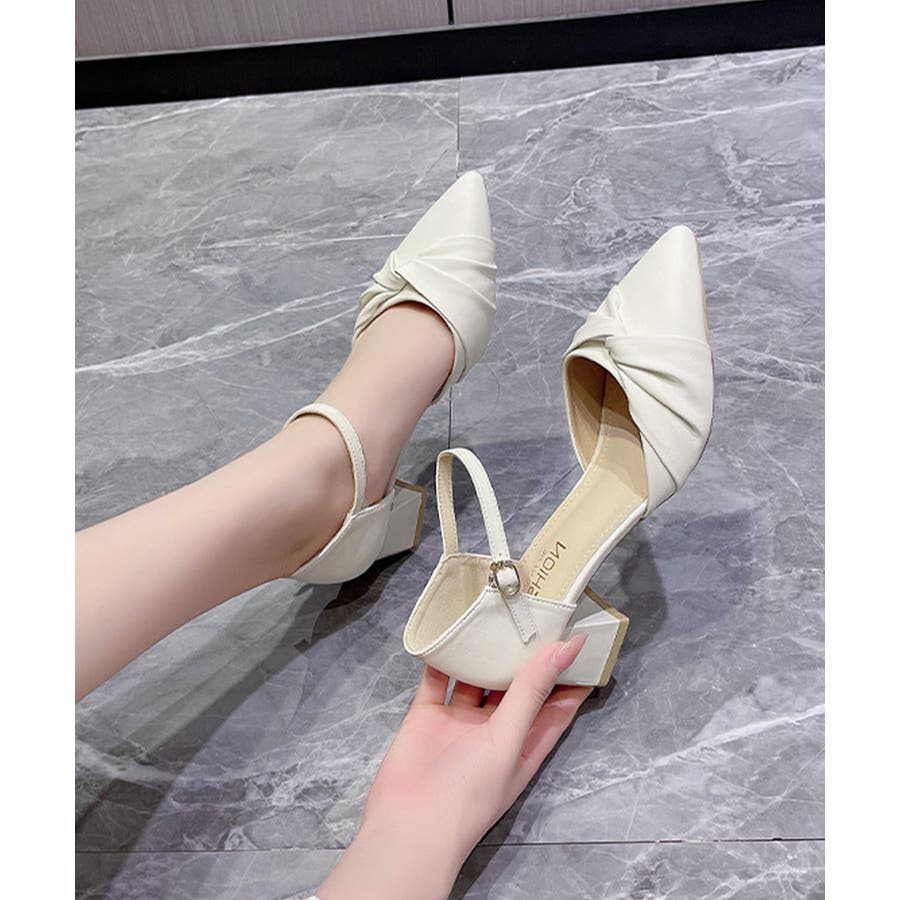 アッパーのねじれデザインが特徴的、シンプルながらもおしゃれなレディースセパレートパンプス