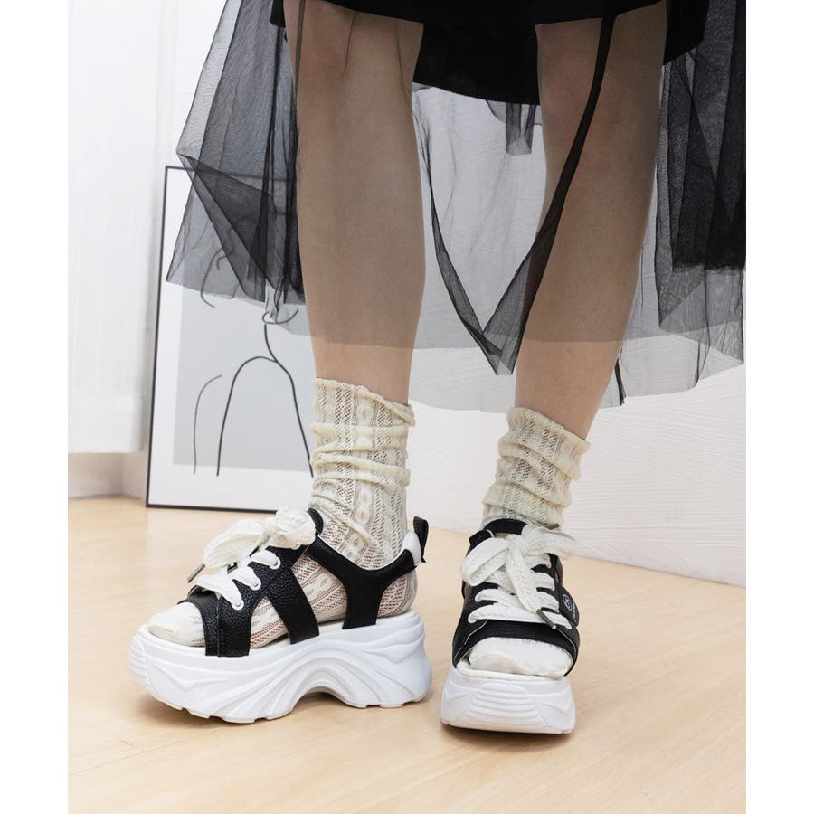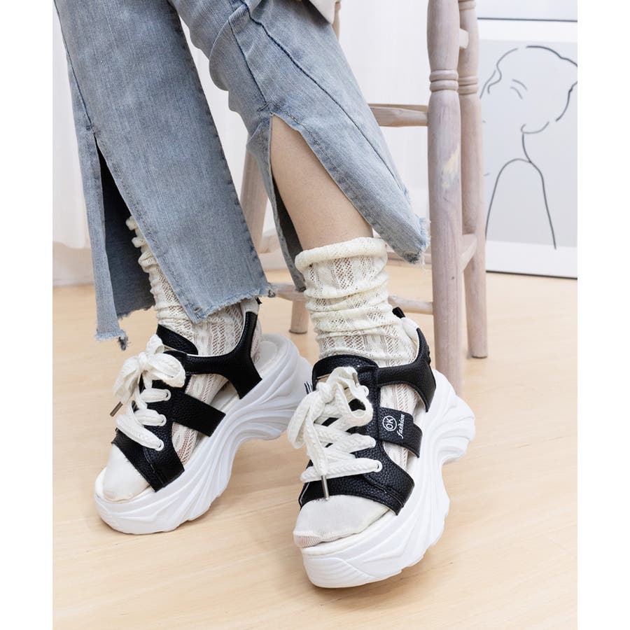 目を引くボリューミーなシルエットが特徴の、今年らしい厚底スニーカーサンダル。