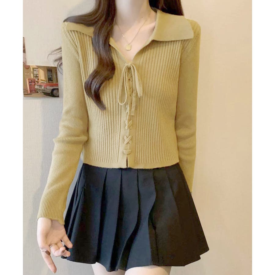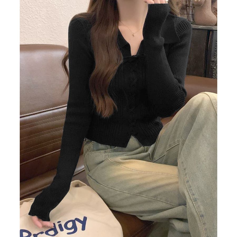 編み上げ長袖ニット ニットインナー大人 タイトニット柔らか