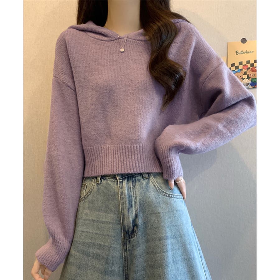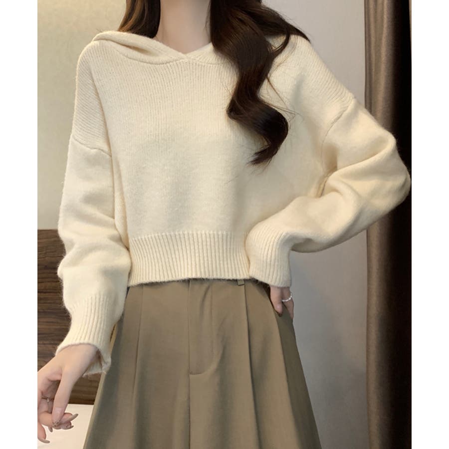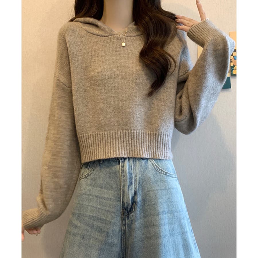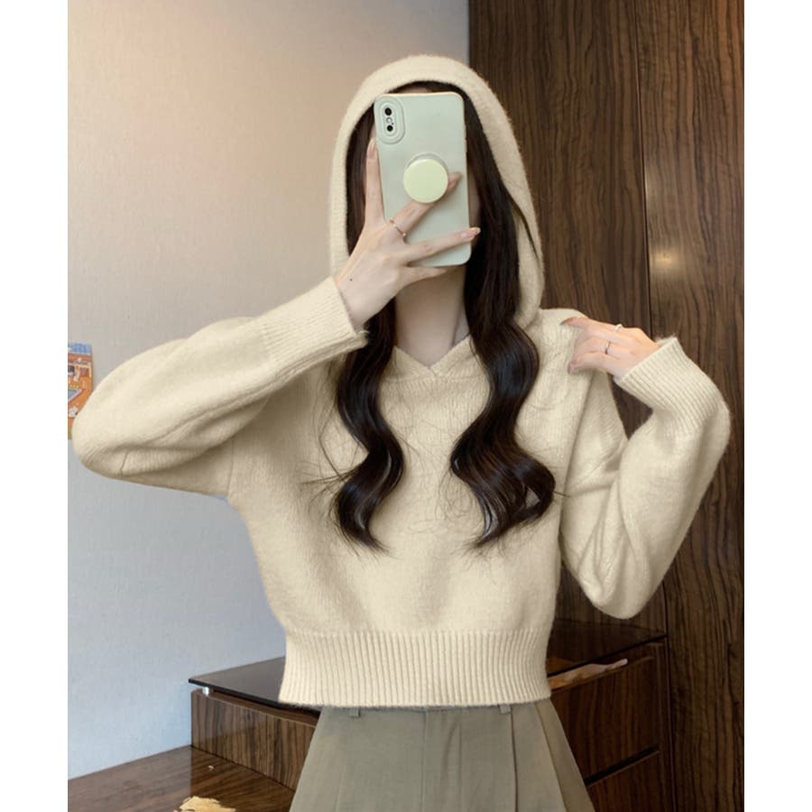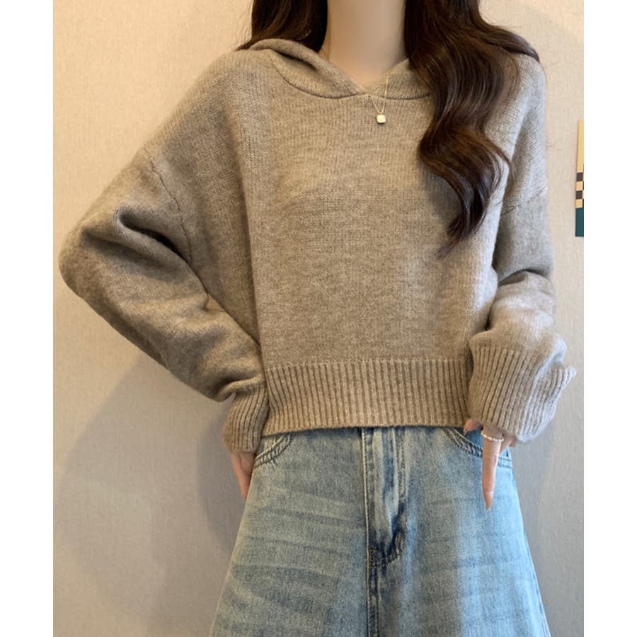 柔らかな肌触りが心地よい、シンプルで合わせやすいショート丈ニットパーカー。