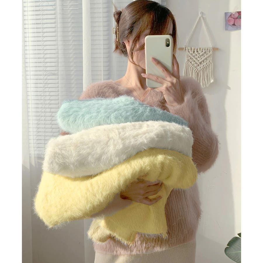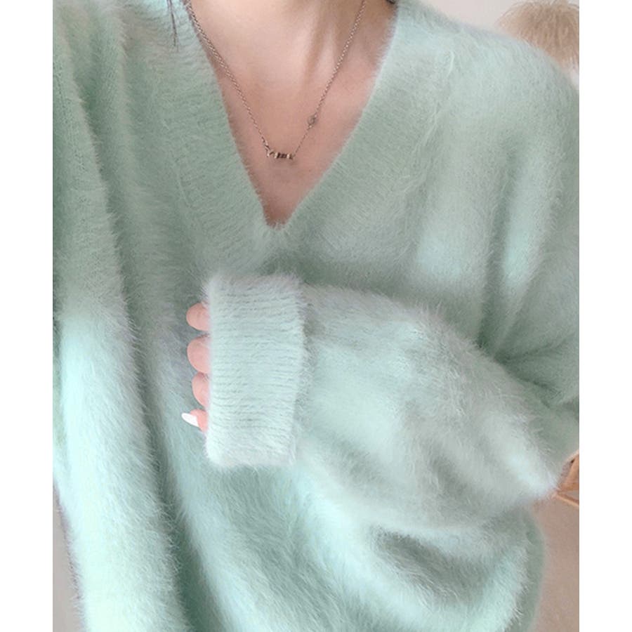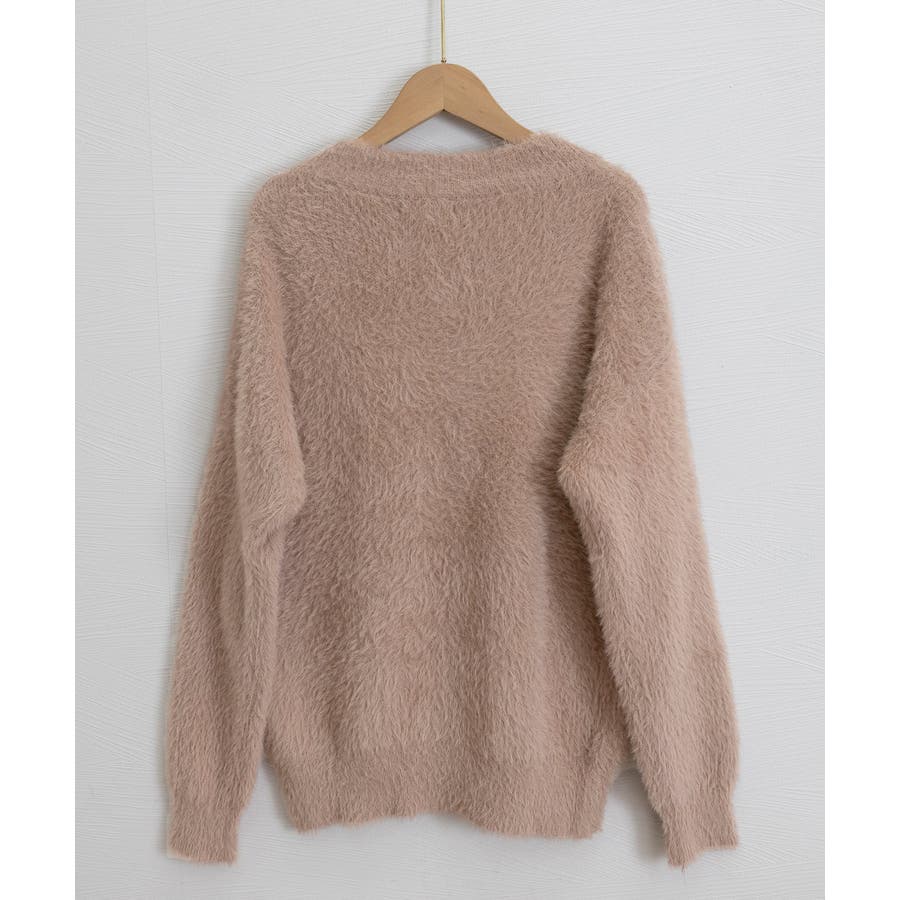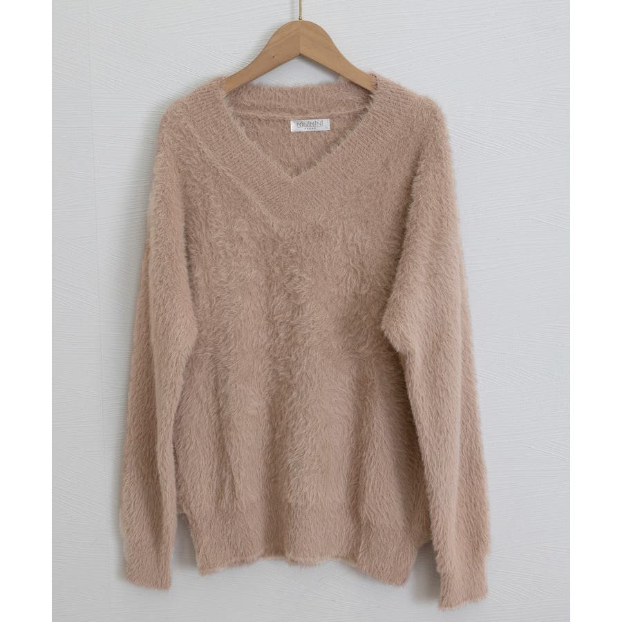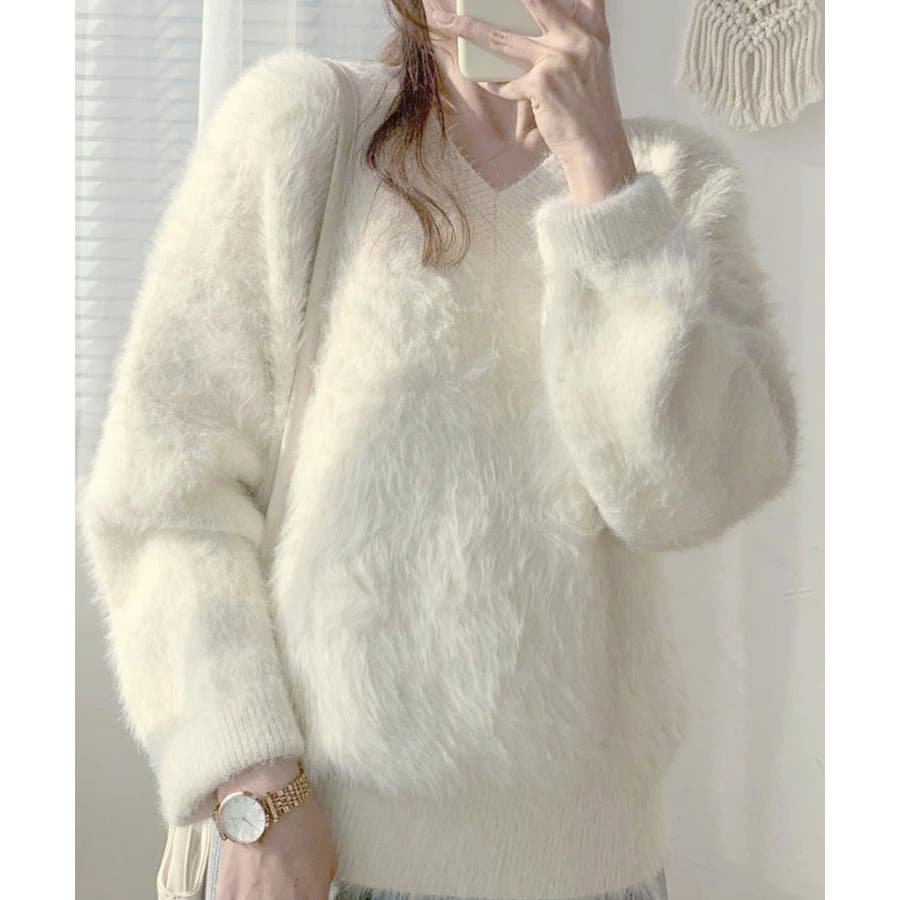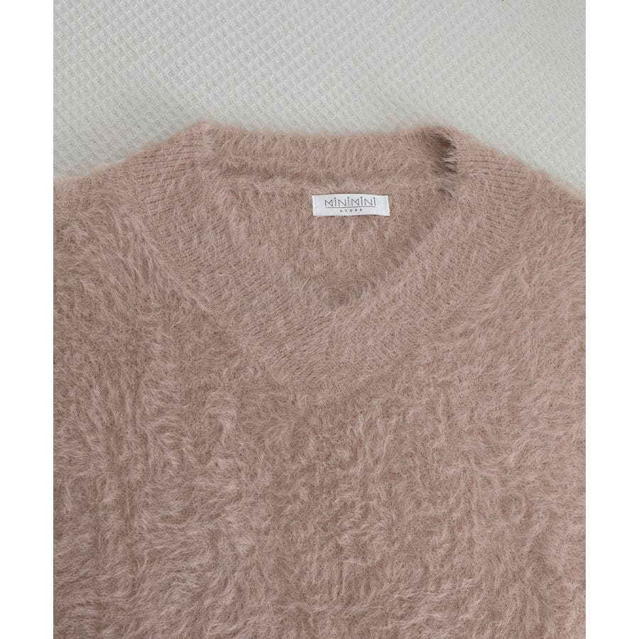 柔らかく毛足の長い上質な素材を使用したVネックニットトップス。