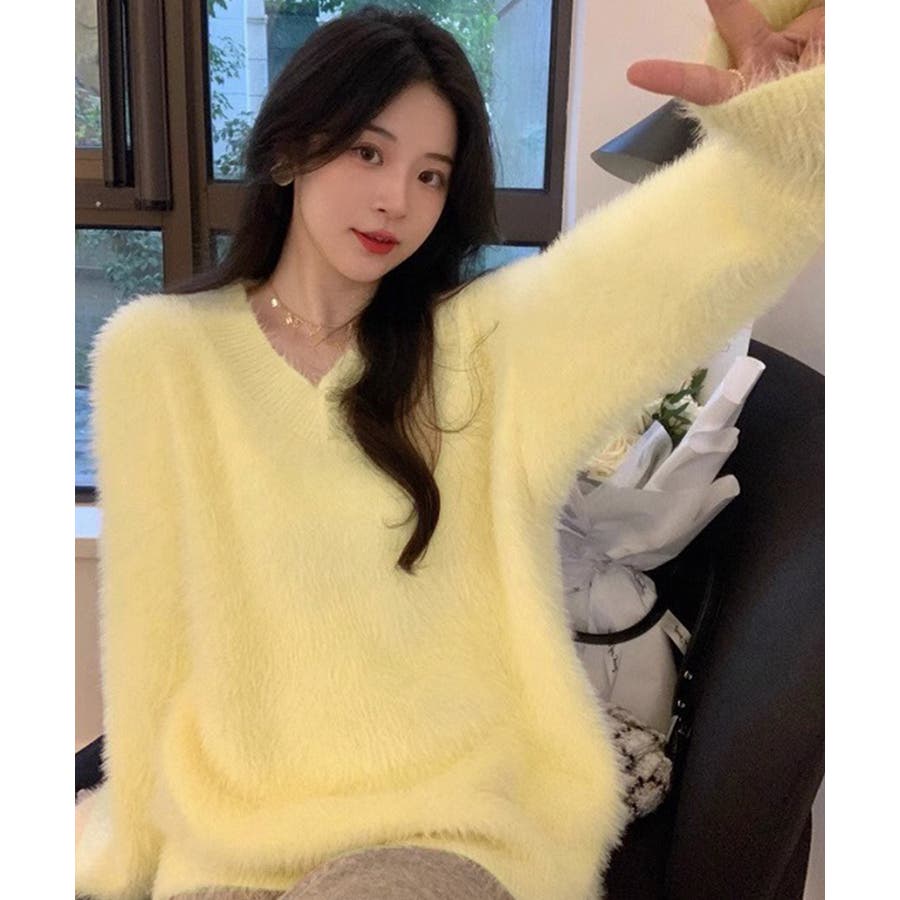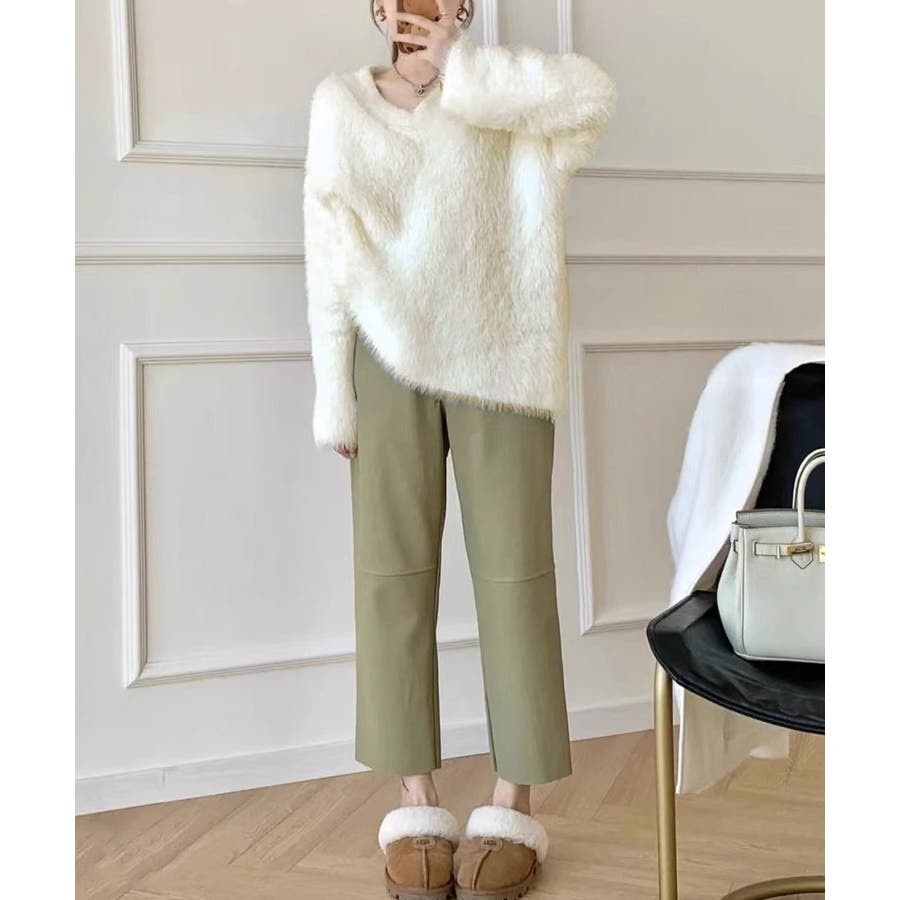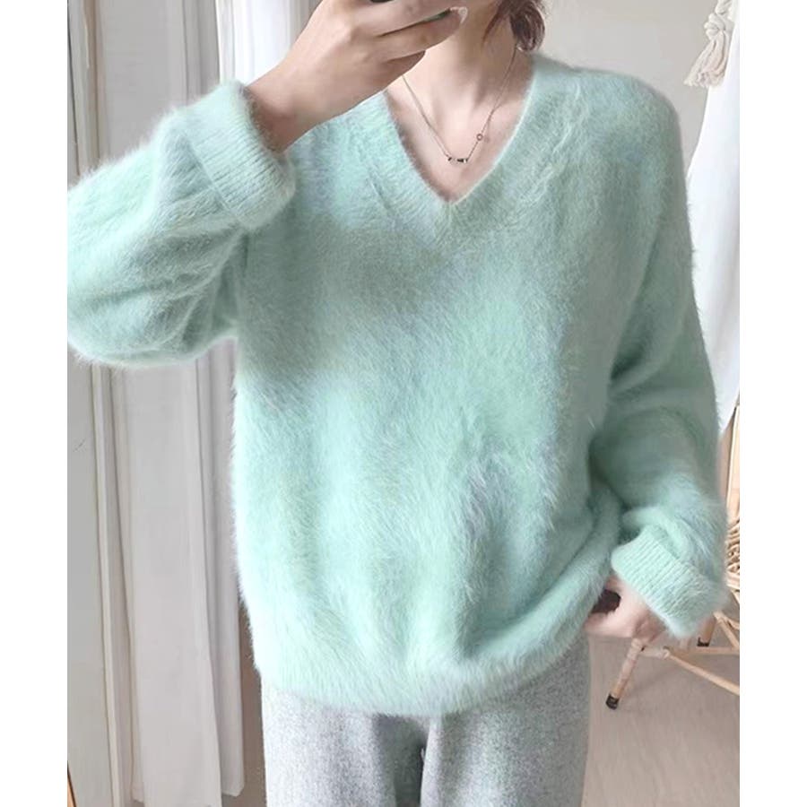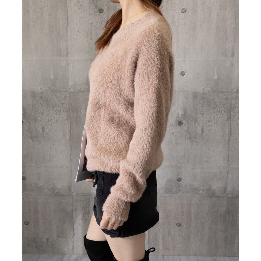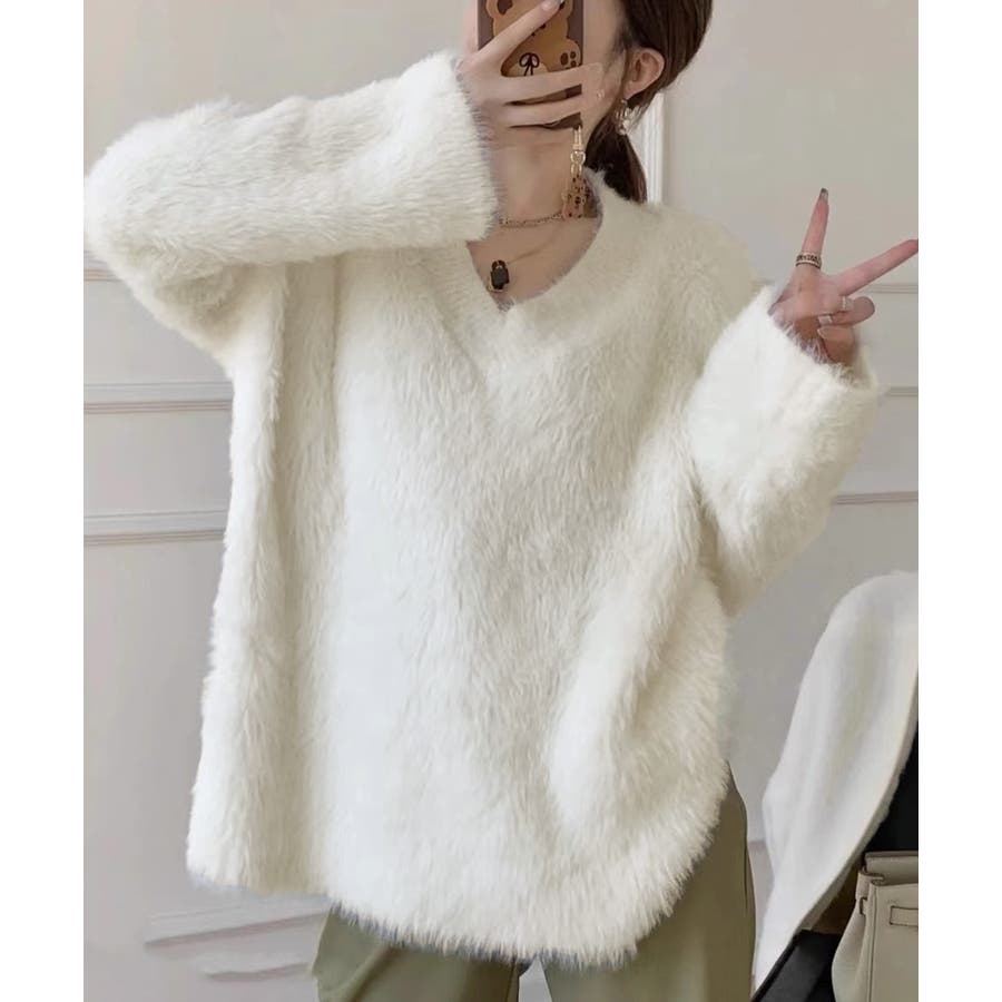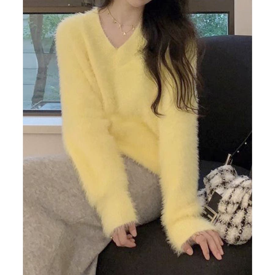 柔らかく毛足の長い上質な素材を使用したVネックニットトップス。