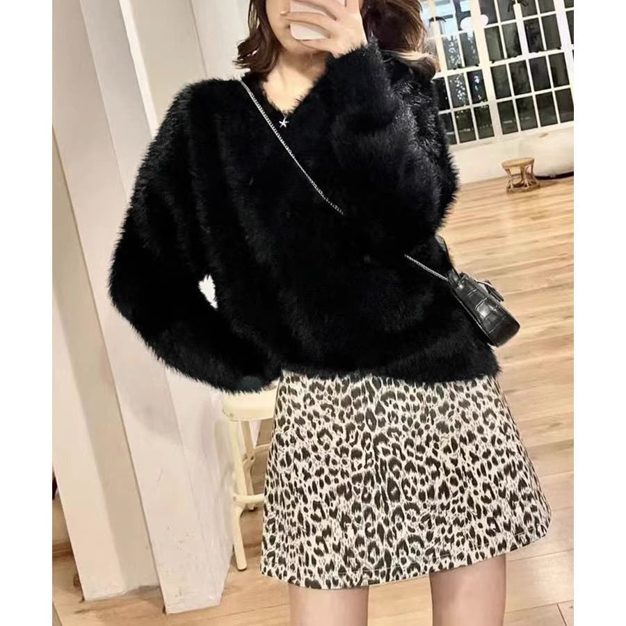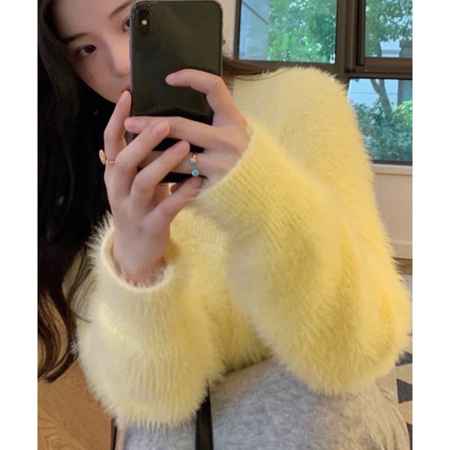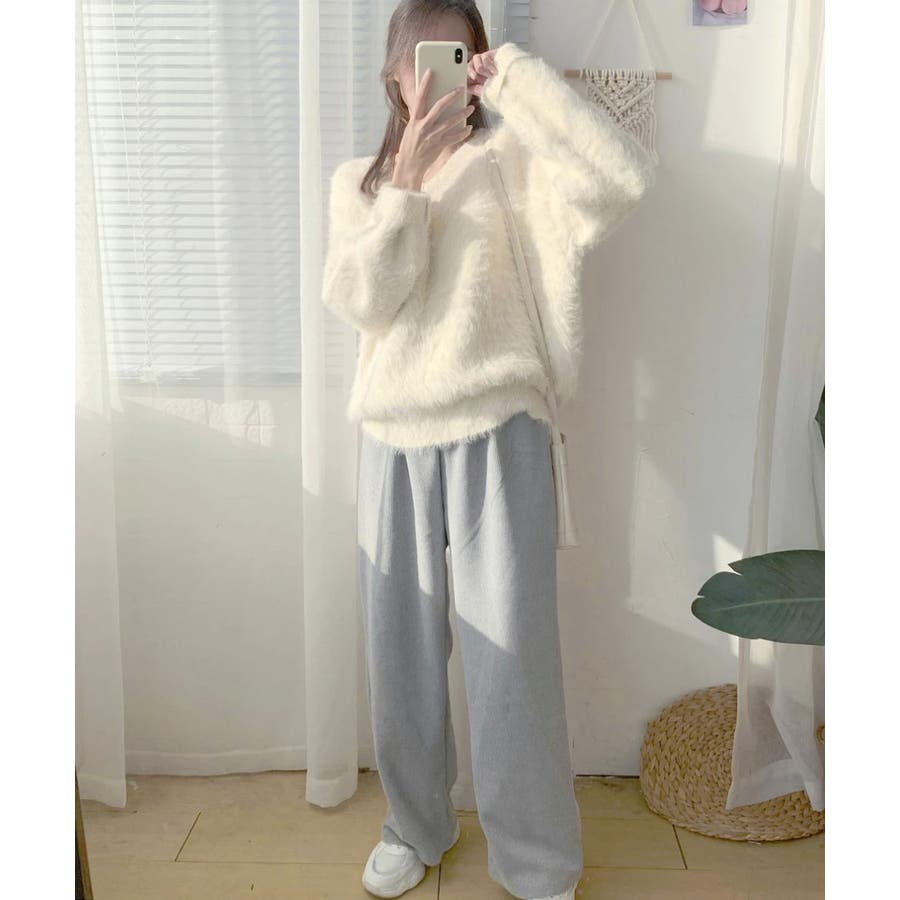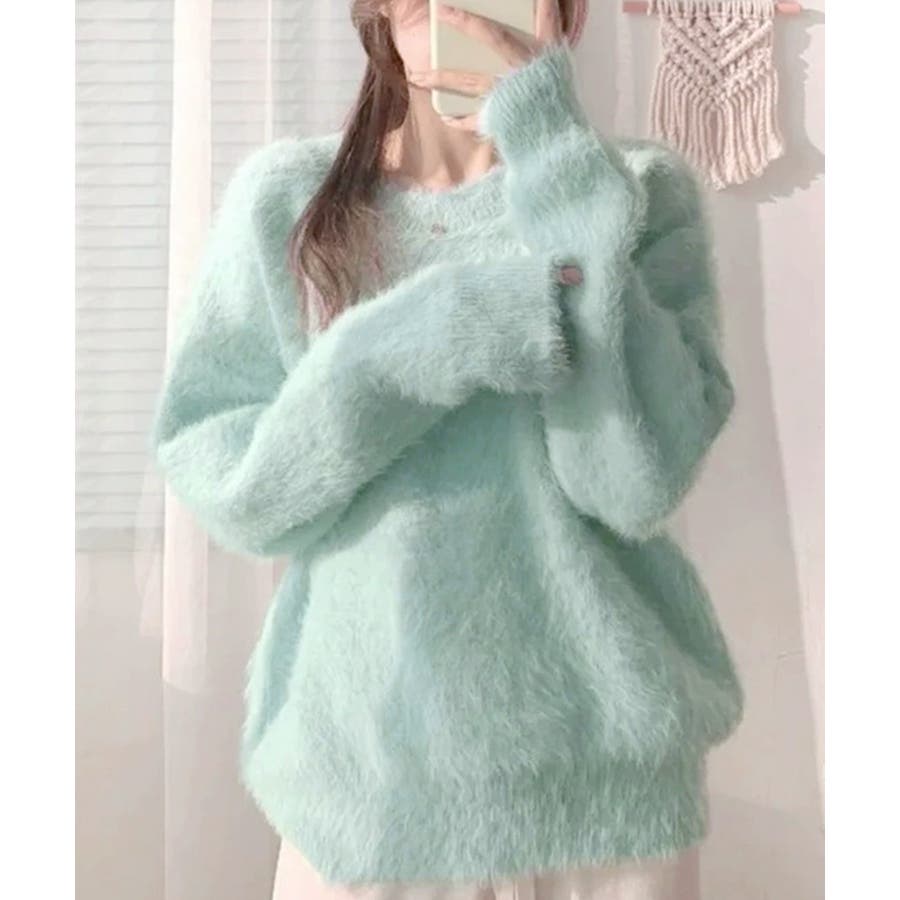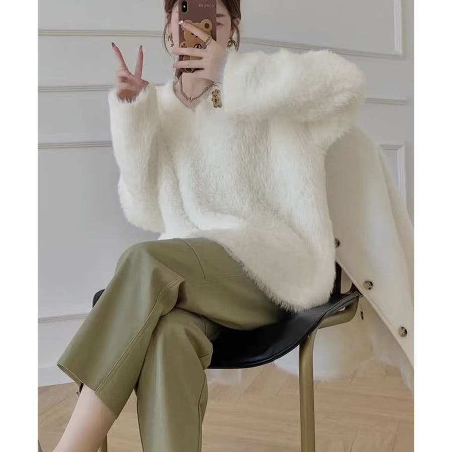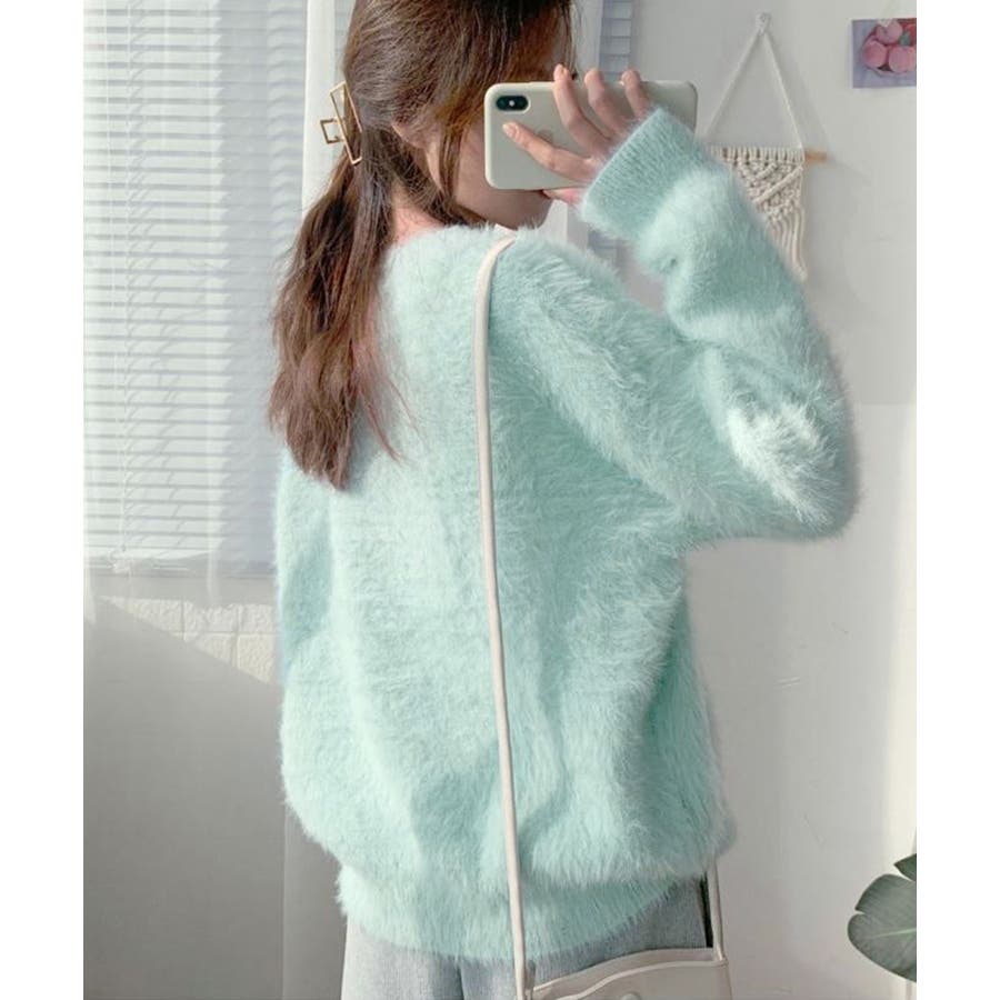 体型カバートップス 韓国風着やせニット モヘア調ニット起毛