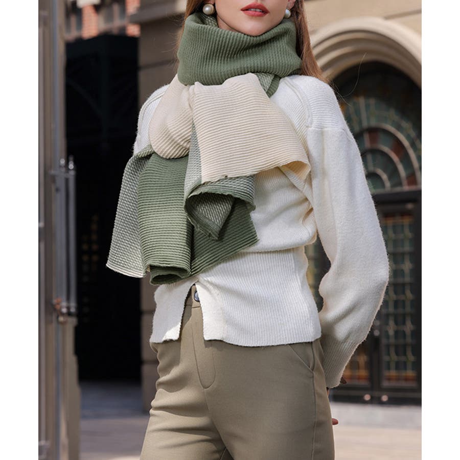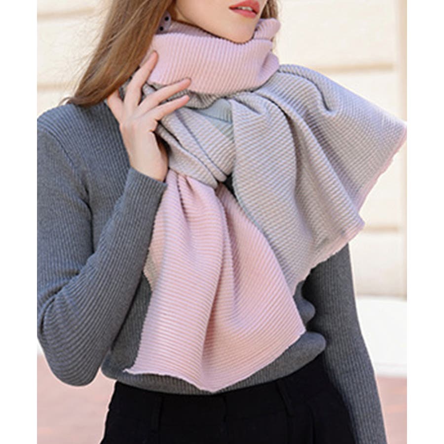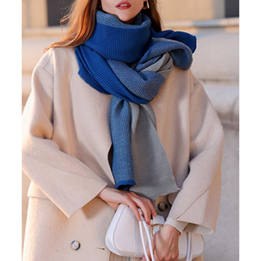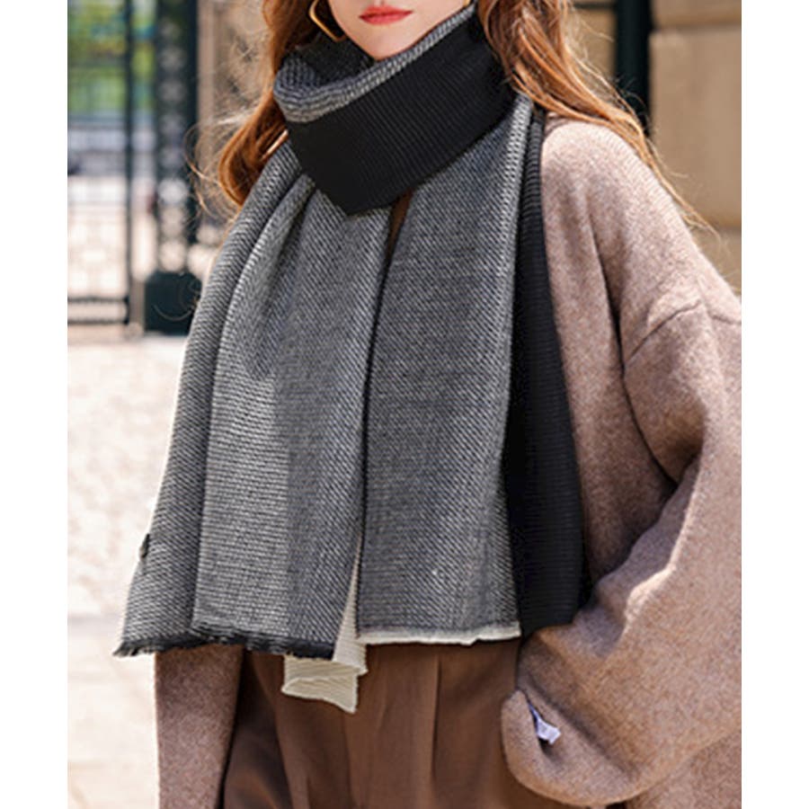 リバーシブルマフラー 配色 大判ストール