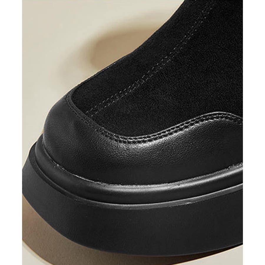 異素材をミックスした、個性あふれるデザインのスタイリッシュなニーハイブーツ。