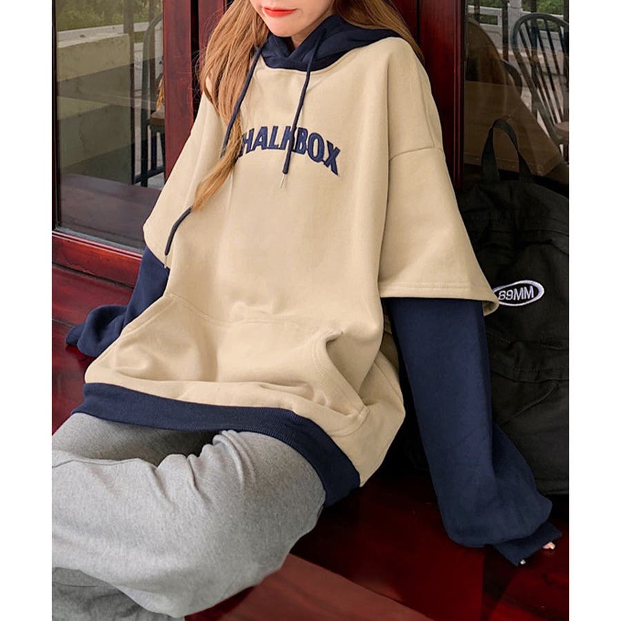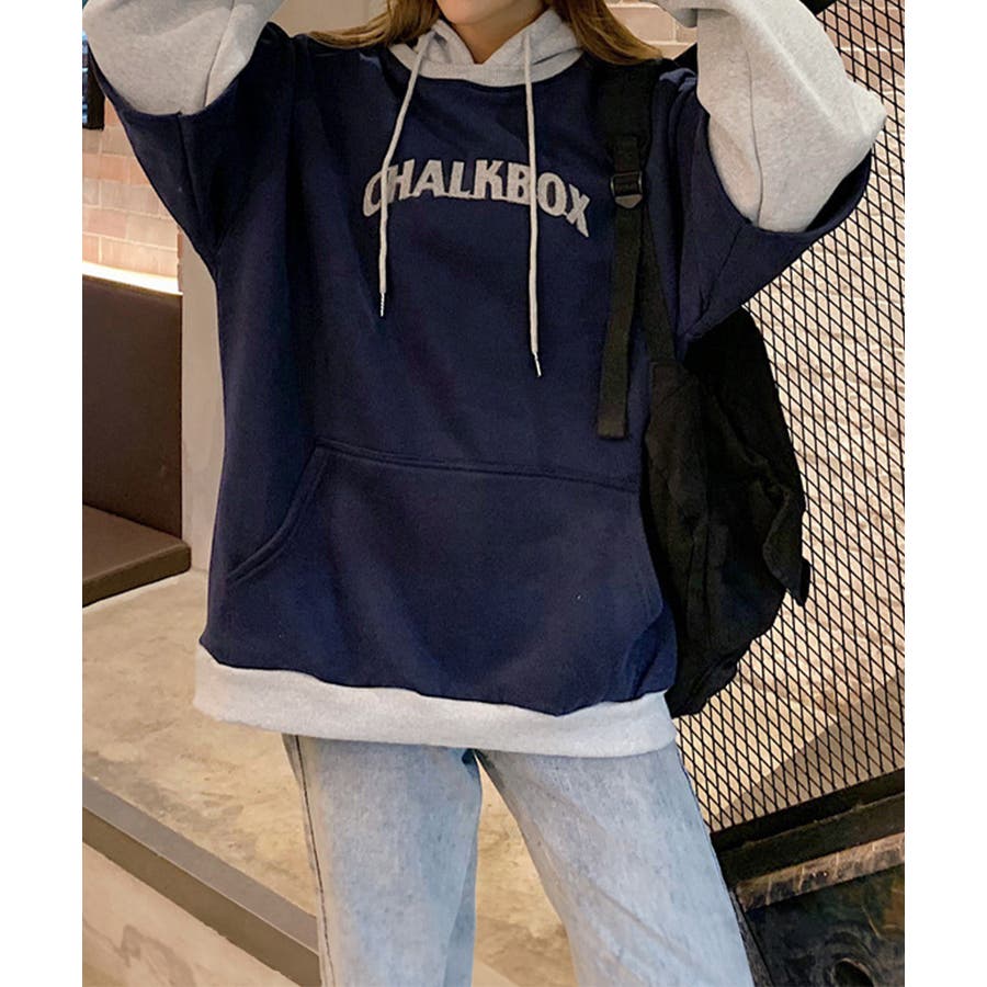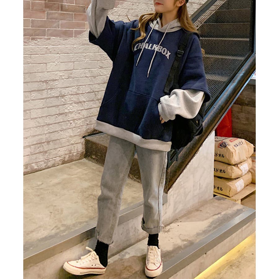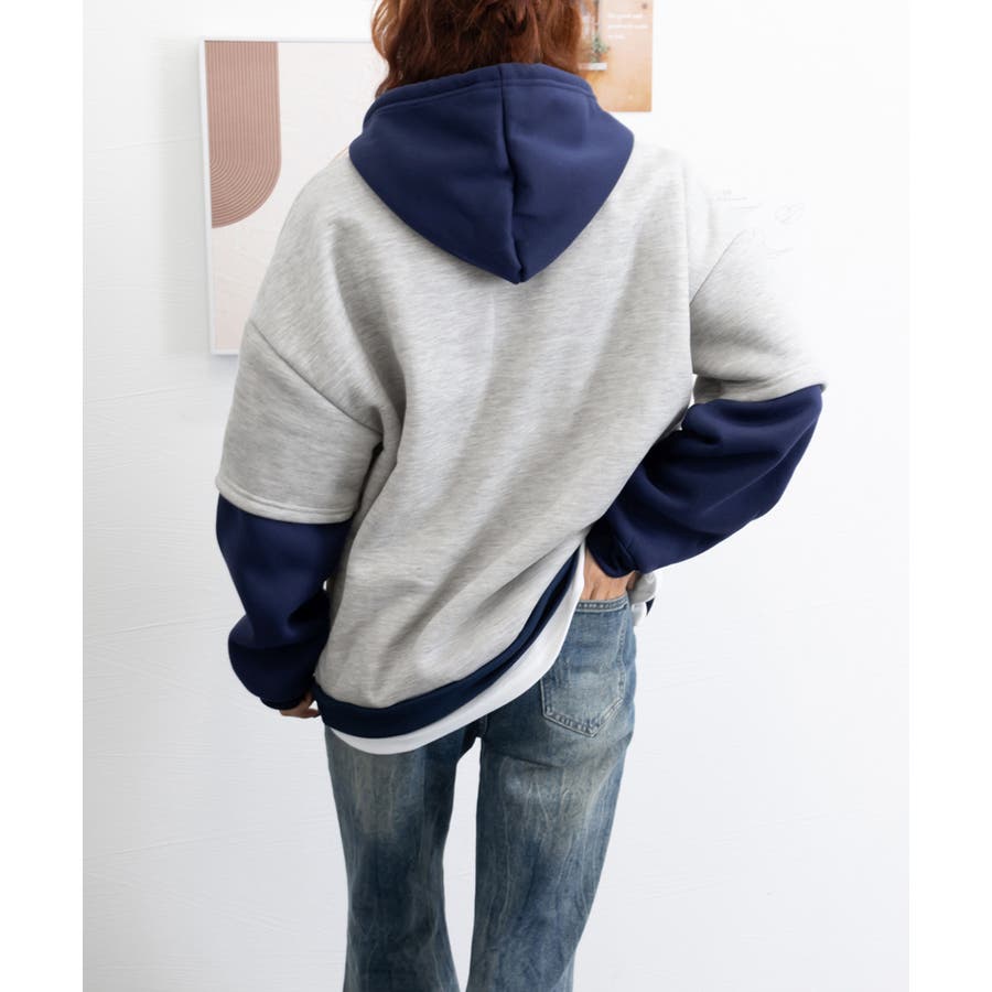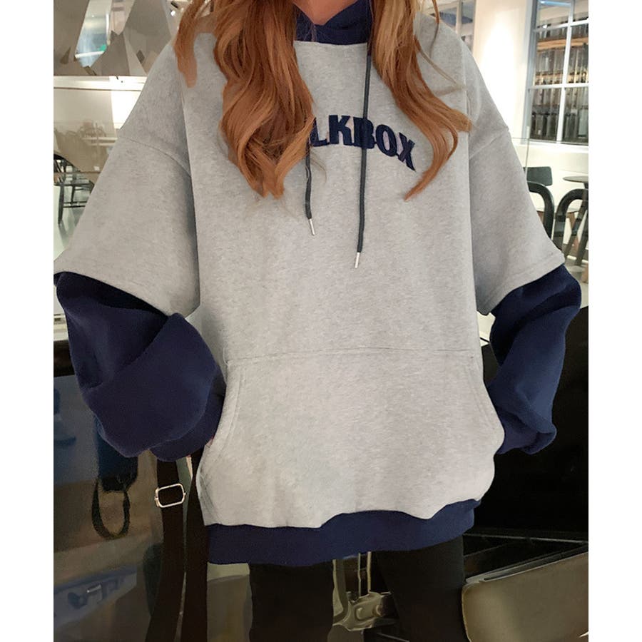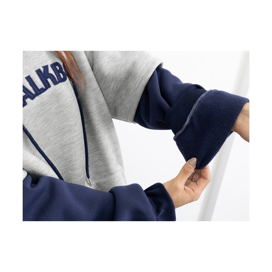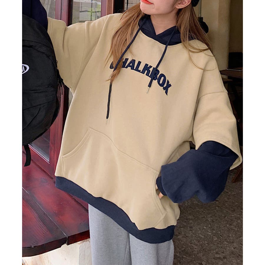 体型カバー 秋冬服 長袖ビッグパーカー 切り替え トップス