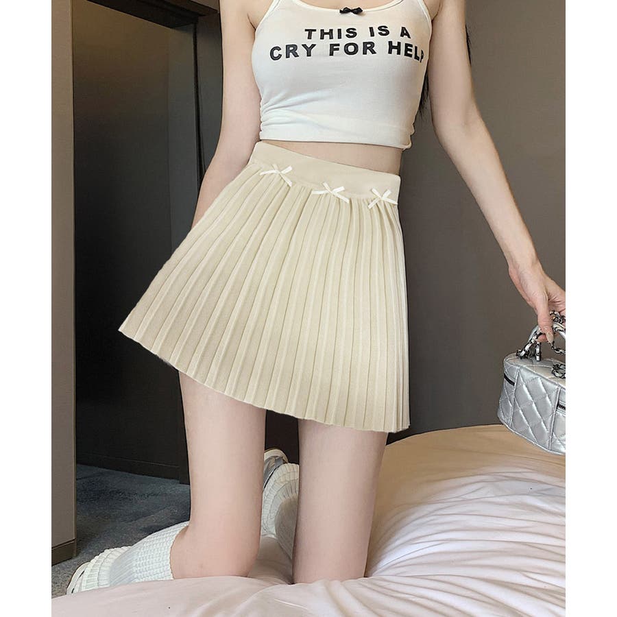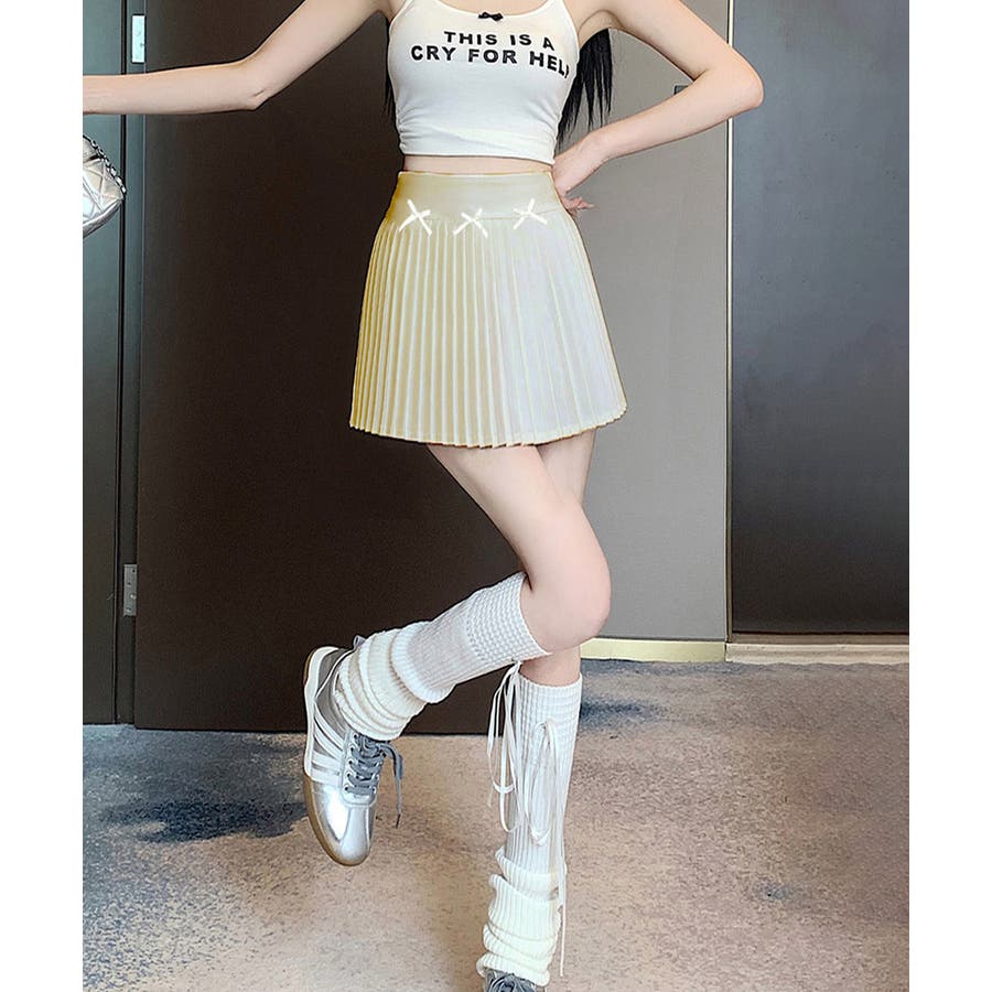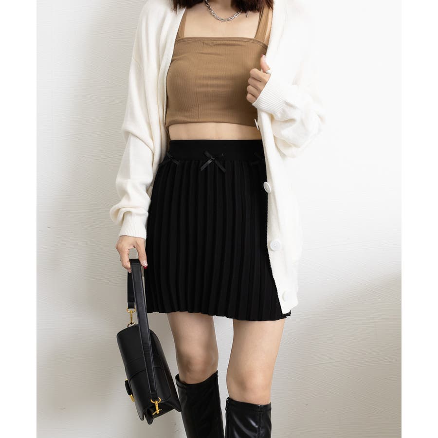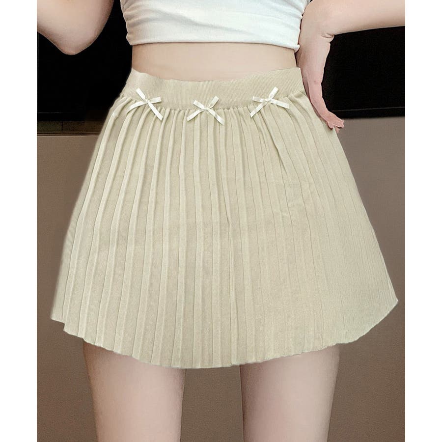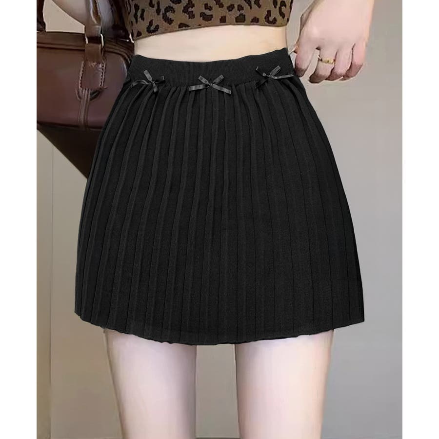 リボン付きプリーツミニスカートレディース