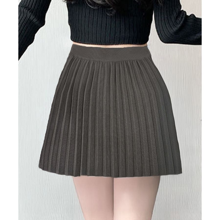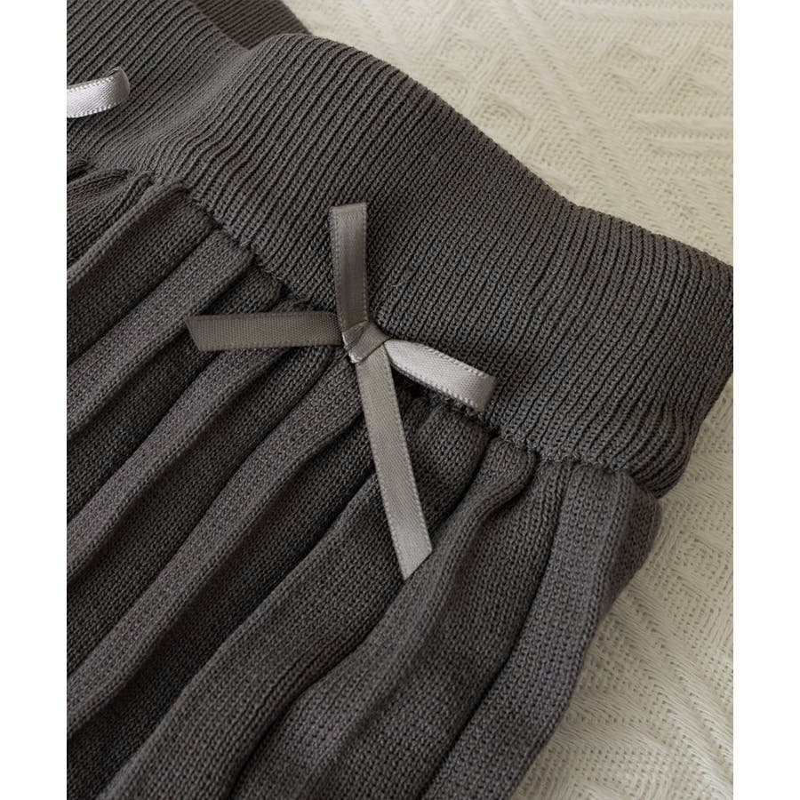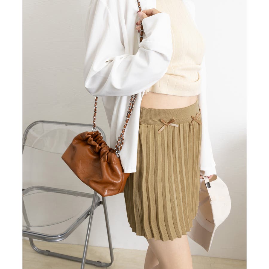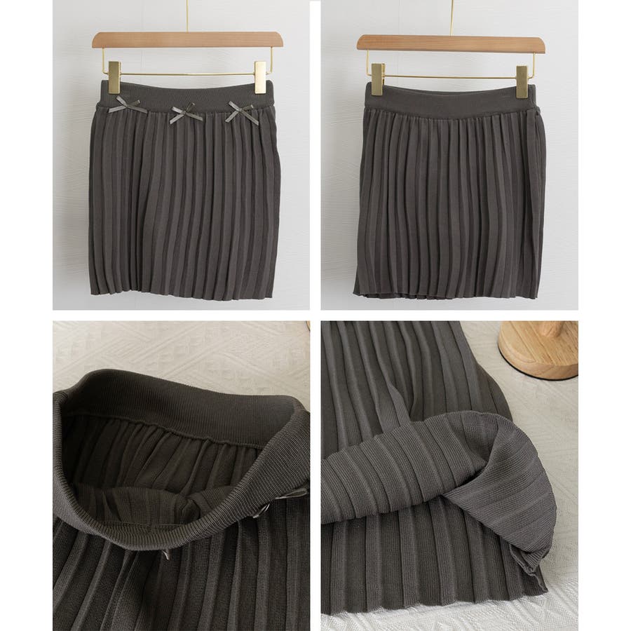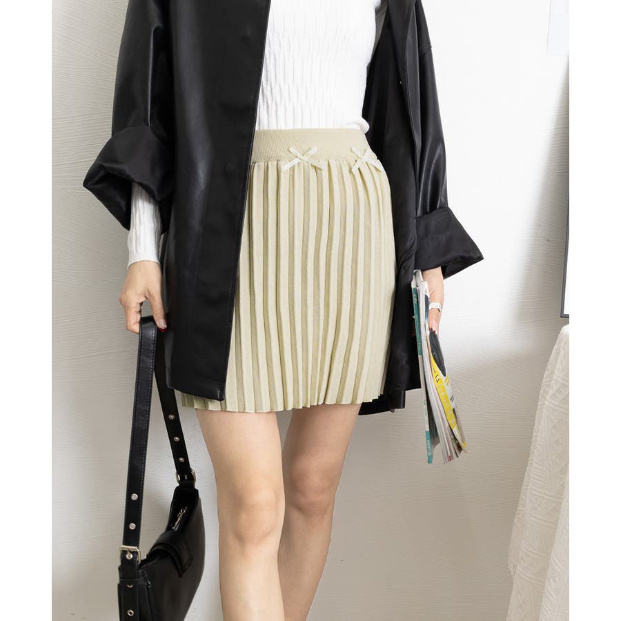 ウエスト部分に小さなリボンが付いたミニプリーツスカート