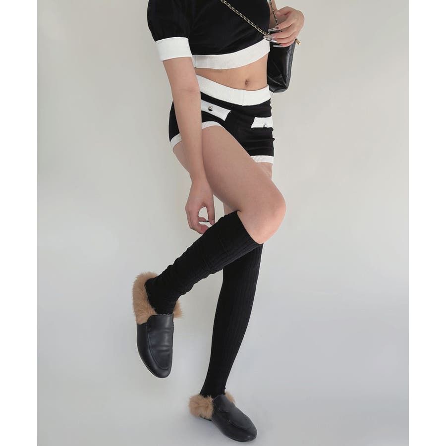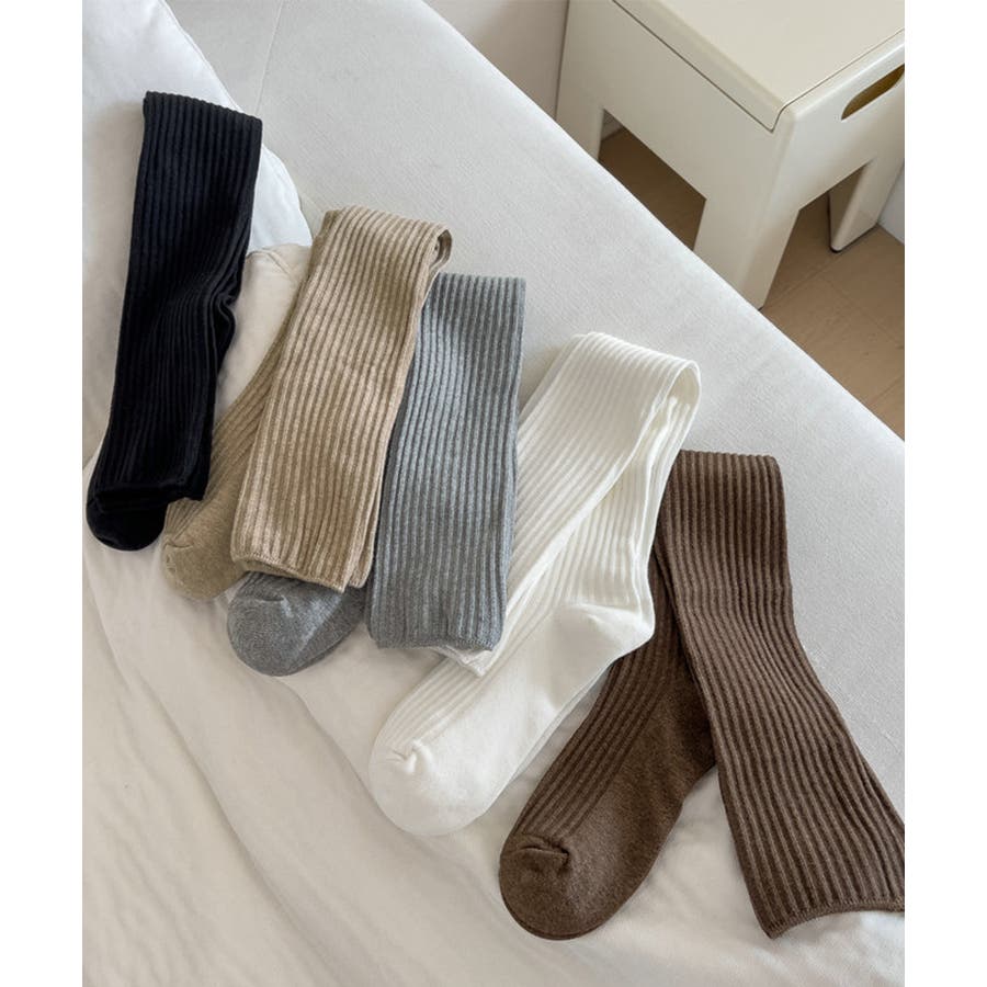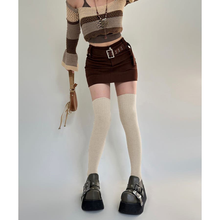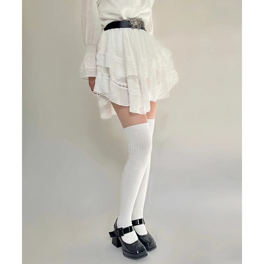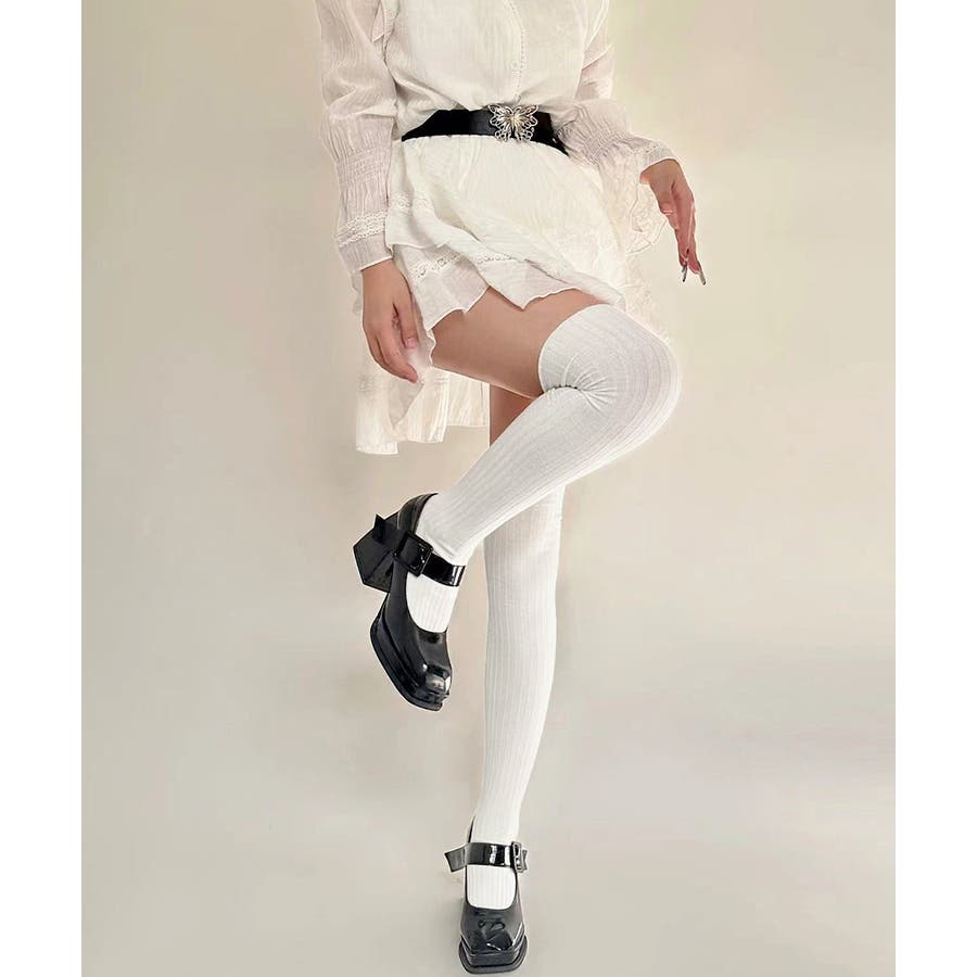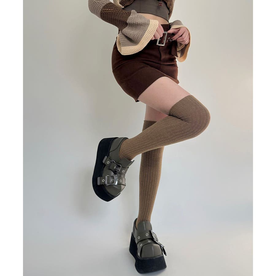 韓国風スタイルを取り入れた、たるませデザインが特徴のニーハイソックス。