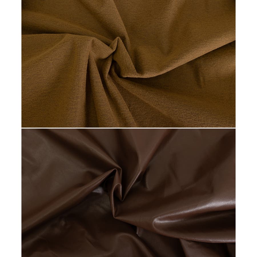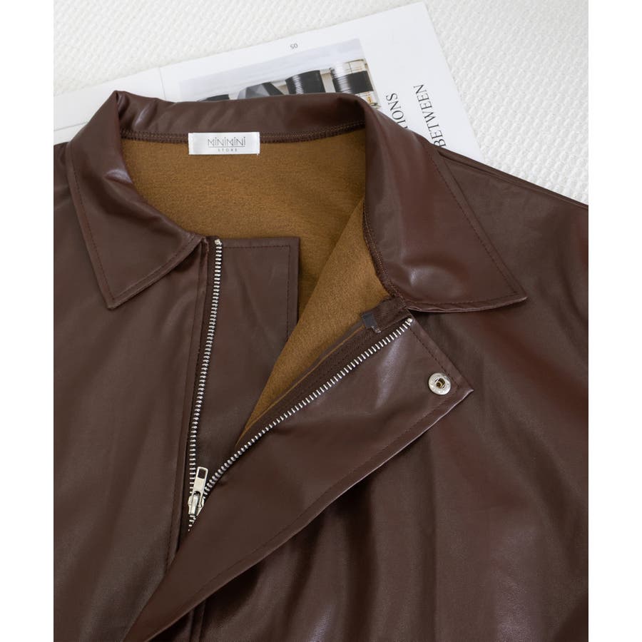 柔らかくしなやかなフェイクレザー素材で軽やかに羽織れる。