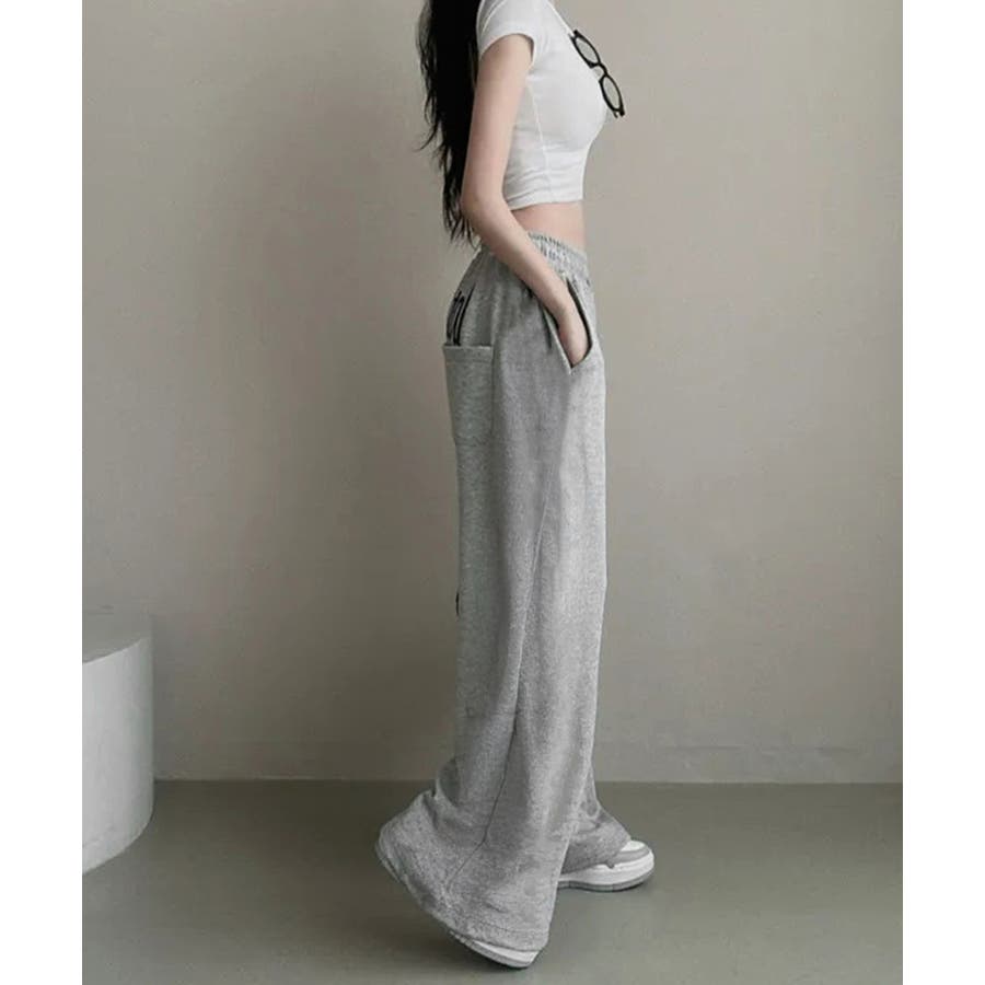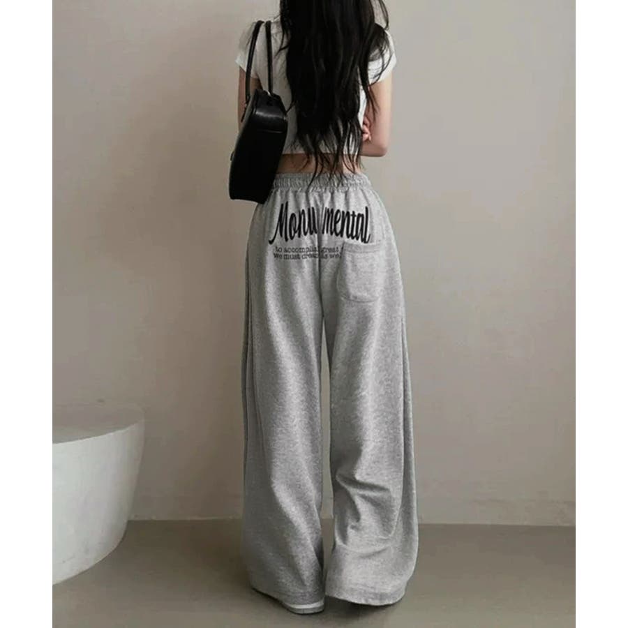 バッグプリントワイドスエットパンツ韓国風