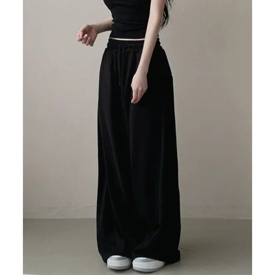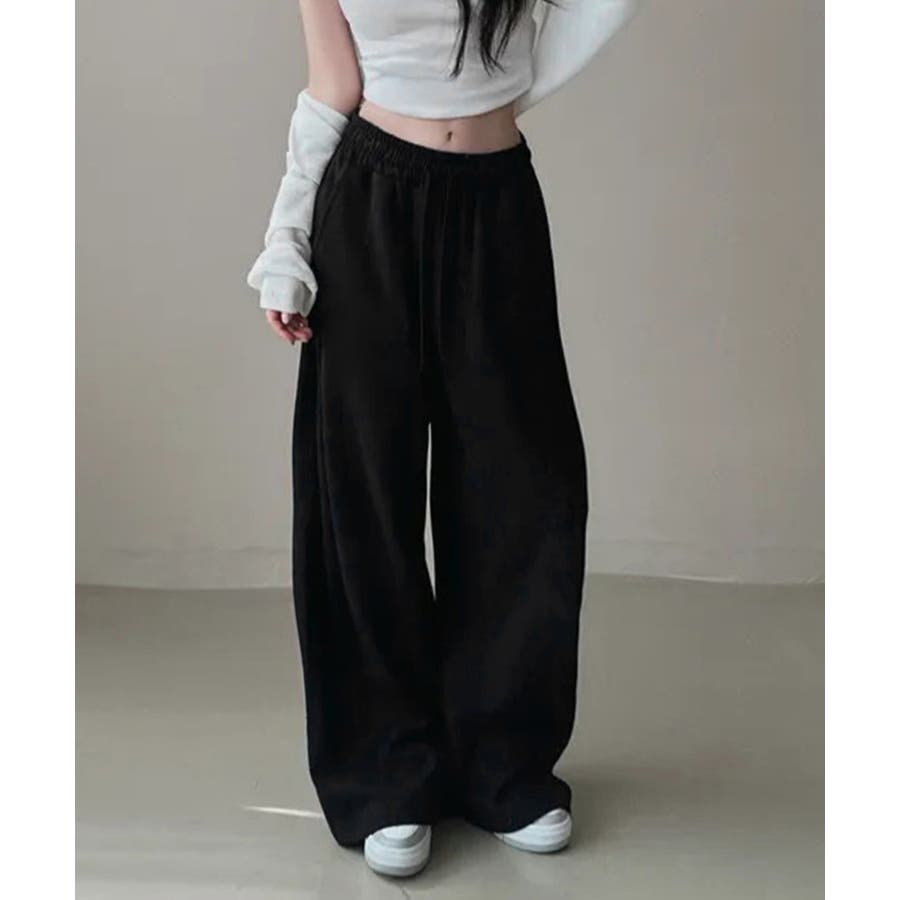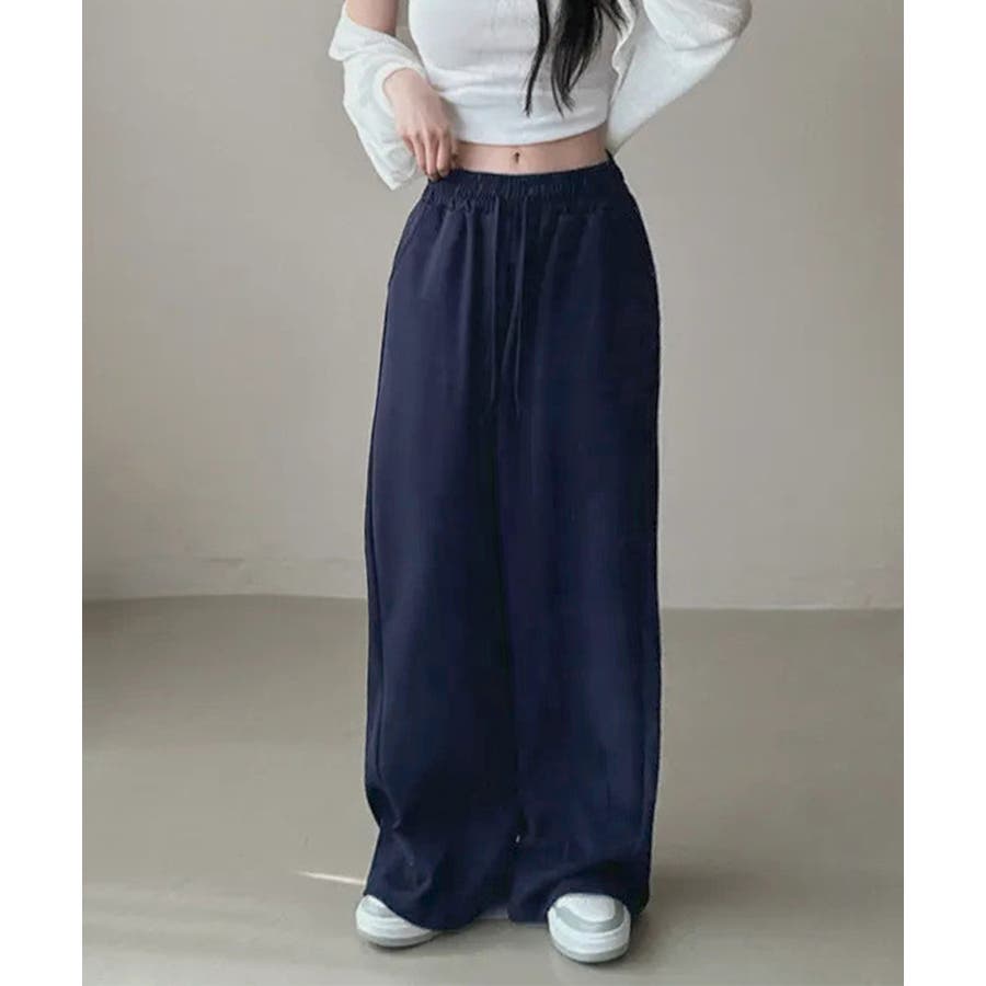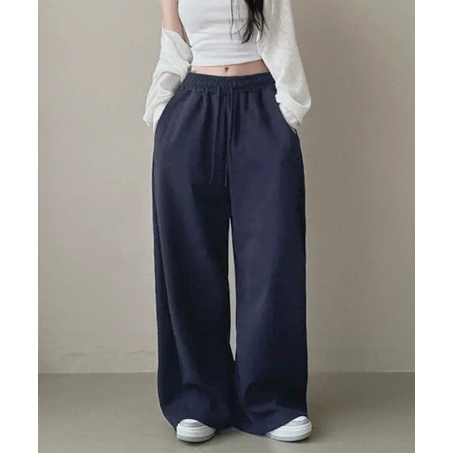 ボリューム感のあるワイドラインが脚をすっきり見せ、リラックス感とトレンド感を両立。